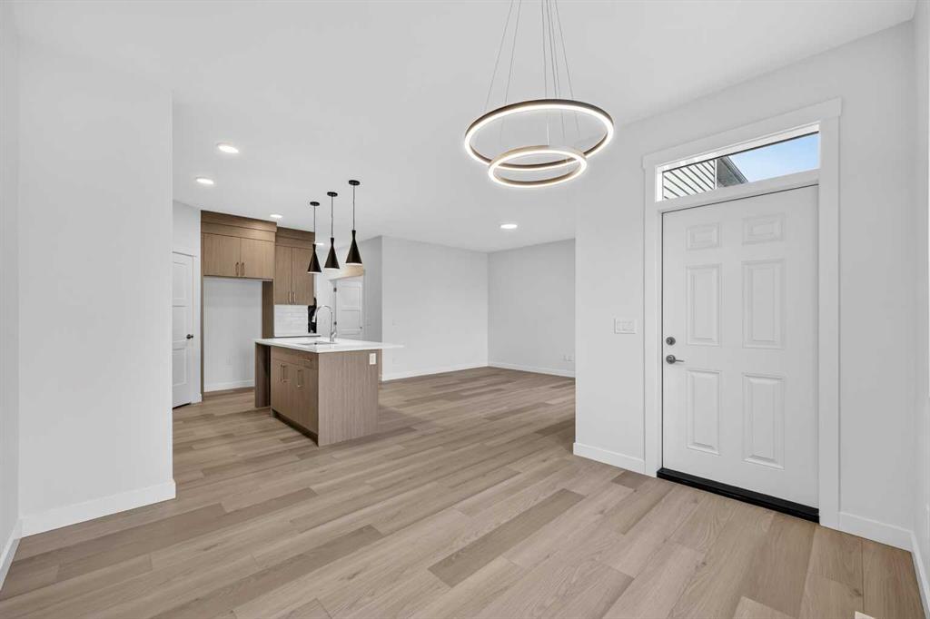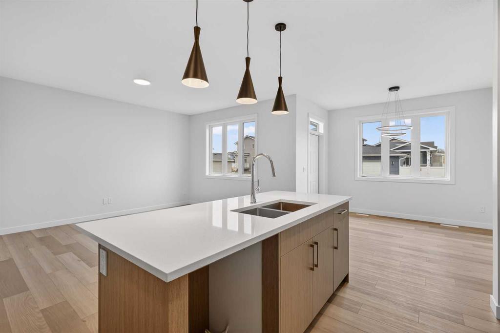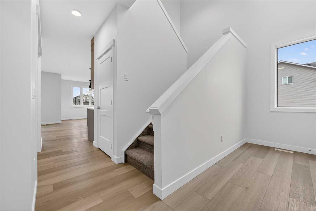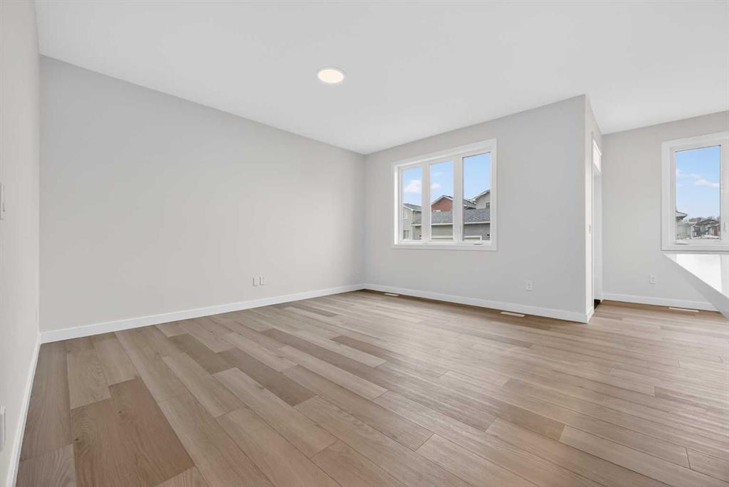 Start your next chapter in Iron Landing with a newly built home that seamlessly combines modern design and everyday functionality. An open-to-above front entry immediately creates a bright, airy first impression, setting a warm and welcoming tone from the moment you step inside. The main living area with 9ft ceilings unfolds with luxury vinyl plank flooring and a neutral colour palette, offering a clean, cohesive backdrop that complements a variety of design styles. South-facing windows fill the space with natural light, enhancing the inviting atmosphere—perfect for both relaxed evenings and lively gatherings. The kitchen is thoughtfully designed for both style and efficiency, featuring quartz countertops, full-height cabinetry, a pantry, and timeless subway tile. A central island with breakfast seating becomes a natural hub for connection and conversation. Buyers will also appreciate the $4,500 appliance allowance through Trail Appliances, providing the flexibility to select finishes that suit their personal taste. The dining area is ideally positioned with easy access to the south facing backyard, encouraging effortless indoor-outdoor living. A main floor den, enclosed with French doors, offers a private space for work, study, or quiet retreat. A conveniently located powder room adds to the home’s functional layout. Upstairs, consistent finishes continue the home’s polished and modern feel. The primary suite serves as a comfortable retreat, complete with a walk-in closet and a private 4-piece ensuite designed for both ease and practicality. Two additional bedrooms offer flexibility for family and guests, while a full bathroom and upper-level laundry provide added everyday convenience. The unfinished basement presents an opportunity to expand your living space to suit your lifestyle—whether for recreation, storage, or future development and you will appreciate the layout possibilities with three strategically placed egress windows. A double attached garage ensures easy parking, while the south-facing backyard offers all-day sunshine and alley access for potential RV/toy parking and added privacy.