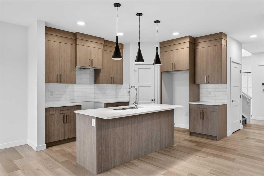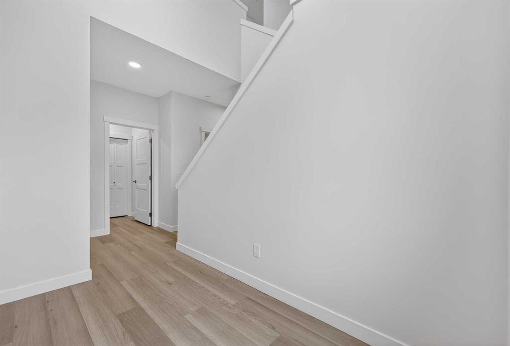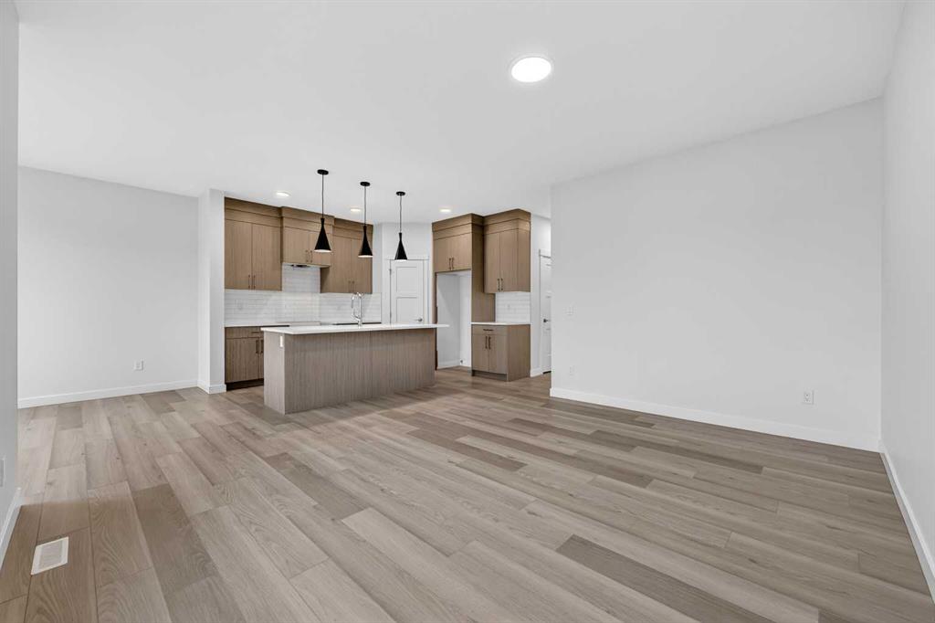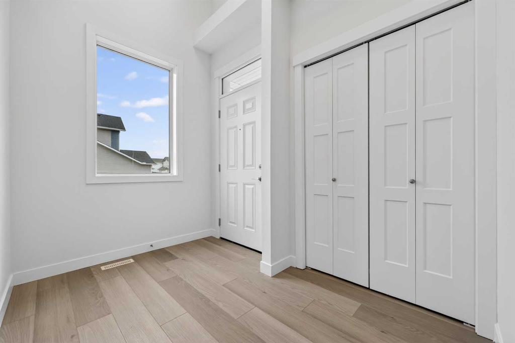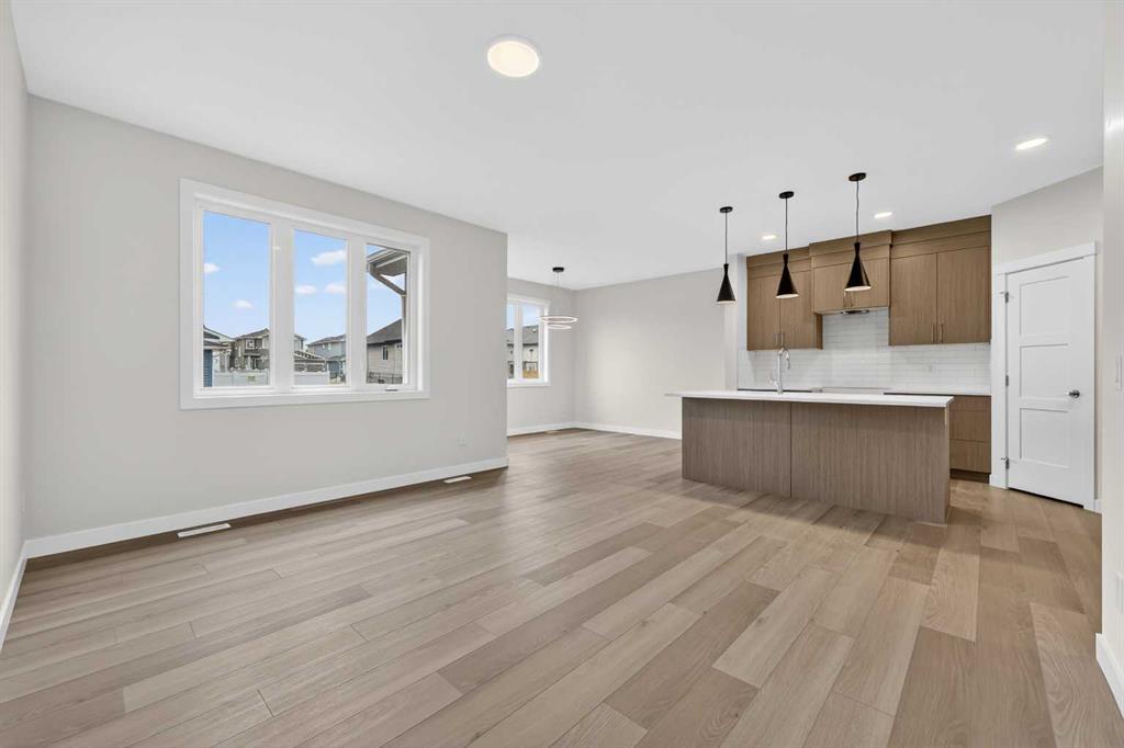 Start your next chapter in Iron Landing with a newly built home that seamlessly combines modern design and everyday functionality. An open-to-above front entry immediately creates a bright, airy first impression, setting a warm and welcoming tone from the moment you step inside. The main living area with 9ft ceilings unfolds with luxury vinyl plank flooring and a neutral colour palette, offering a clean, cohesive backdrop that complements a variety of design styles. South-facing windows fill the space with natural light, enhancing the inviting atmosphere—perfect for both relaxed evenings and lively gatherings. The kitchen is thoughtfully designed for both style and efficiency, featuring quartz countertops, full-height cabinetry, a pantry, and timeless subway tile. A central island with breakfast seating becomes a natural hub for connection and conversation. Buyers will also appreciate the $4,500 appliance allowance through Trail Appliances, providing the flexibility to select finishes that suit their personal taste. The dining area is ideally positioned with easy access to the south facing backyard, encouraging effortless indoor-outdoor living. A main floor den, enclosed with French doors, offers a private space for work, study, or quiet retreat. A conveniently located powder room adds to the home’s functional layout. Upstairs, consistent finishes continue the home’s polished and modern feel. The primary suite serves as a comfortable retreat, complete with a walk-in closet and a private 4-piece ensuite designed for both ease and practicality. Two additional bedrooms offer flexibility for family and guests, while a full bathroom and upper-level laundry provide added everyday convenience. The unfinished basement presents an opportunity to expand your living space to suit your lifestyle—whether for recreation, storage, or future development and you will appreciate the layout possibilities with three strategically placed egress windows. A double attached garage ensures easy parking, while the south-facing backyard offers all-day sunshine and alley access for potential RV/toy parking and added privacy.