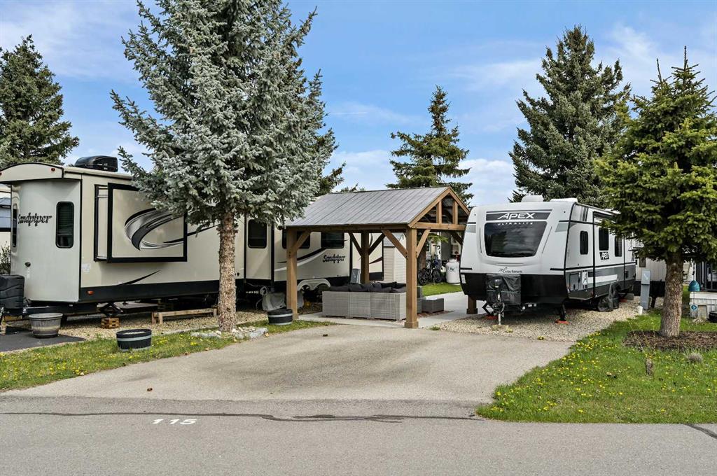 Welcome to Country Lane Estates, a gated and secure seasonal RV community just 15 minutes south of Calgary. Whether you’re a snowbird, weekender, or a family seeking a peaceful spring and summer retreat, this highly sought-after community offers the perfect blend of relaxation, recreation, and convenience. This prime lot is ideally situated near the clubhouse, pool, playground, and park—placing you right at the center of all the amenities while still offering a private and serene space to unwind. The property comes fully move-in ready with a 2021 Coachmen Apex 28-foot trailer in pristine condition, providing modern comfort and functionality. The concrete pad ensures clean, low-maintenance outdoor living, while a gazebo offers the perfect shaded space for relaxing or entertaining. A storage shed on the lot adds both convenience and versatility—ideal for storing tools, bikes, or hobby gear. The landscaping has been thoughtfully designed for minimal upkeep, giving you more time to enjoy the season without the stress of maintenance. Full RV hookups are in place. This is a dog-friendly community with riverside walking paths and an off-leash dog park, making it an ideal spot for pet owners. The welcoming atmosphere is further enhanced by a vibrant social calendar, including weekly events and activities that bring residents together. Located just minutes from Okotoks and High River, and with easy highway access to Calgary, this property offers the best of both worlds—peaceful country living with the convenience of nearby city amenities. Whether you’re seeking a weekend escape or a full-season getaway, this upgraded lot with trailer and thoughtful outdoor features is ready for you to enjoy from the moment you arrive. Don’t miss this rare opportunity to own a turn-key retreat in one of southern Alberta’s most desirable seasonal RV communities.