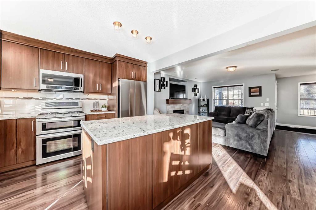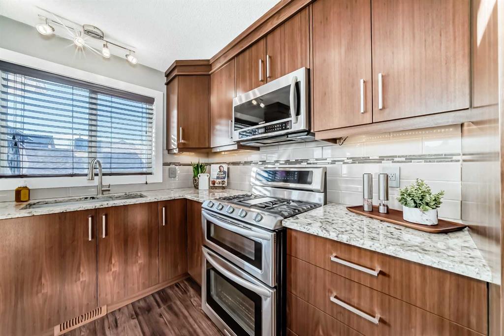 Hello Gorgeous, Welcome to a rare treasure in Coventry Hills! Tucked away on a quiet street, this fully renovated home is an absolute must-see. Step in from the large covered front porch to a spacious entry and an open-concept main floor featuring a stunning custom walnut kitchen—complete with granite countertops, upgraded appliances, pantry pullouts, and island garbage pullouts—not the calibre of kitchen typically found at this price point. The bright dining area is filled with natural light from oversized windows.Upstairs offers a spacious primary retreat with built-in closet, a beautifully remodeled main bath, convenient upper laundry with storage, and two additional bedrooms. The renovated main-floor half bath leads to a fully developed basement with plush carpet, a large media room with in-ceiling surround sound, built-in desk, and ample storage. Enjoy the cedar deck with gas BBQ hookup, ambient lighting, and downtown views. The insulated garage boasts 10’ ceilings, custom cabinetry, 60A 220V service, and a Reznor heater. With A/C, RV parking, central vac, under-deck storage, and unbeatable proximity to schools, parks, and shopping—this home truly has it all.