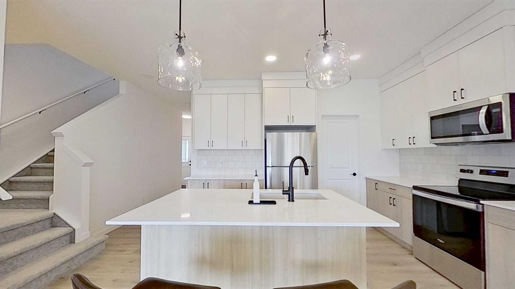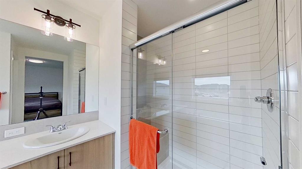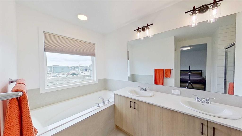 Welcome to 115 Fireside Street, built in 2025 and in brand new condition. This single-family home with attached garage has a well-designed layout, including a spacious kitchen, two-tone cabinets to the ceiling, quartz countertops, upgraded kitchen sink and black faucet on the island, plus a corner pantry. Black accents on door handles and lighting are throughout the home. The living room contains a gas fireplace with neutral tile surround and adjoins a dining room with a sliding patio door. A 12 x 14 feet custom deck with privacy screen will be built, to enjoy the large backyard, ready for your landscape design. The main floor contains a mudroom off the garage entrance, a powder room, large entrance closet and side entrance which leads to the basement. Upstairs there are three good-sized bedrooms. Two bedrooms share a Jack and Jill bathroom with a sink and a separate area with the tub/shower combo and toilet. The primary bedroom is adjoined by a luxurious ensuite with a) two sinks and quartz countertops, b) deep soaker tub with a large window above for natural light, c) walk in-shower with a bench, and d) enclosed water closet. There is a spacious bonus room upstairs. To complement the interior design, there are custom blinds on all windows on the main and second floors with bedroom windows containing room-darkening blinds. Enjoy mountain views to the west, a short walk to parks, two schools, an off-leash park which is scheduled for construction, plus an outdoor rink. The Fireside community has many amenities, community landscaping and is only a short 20-minute drive to Bragg Creek and 45 minutes to Canmore.