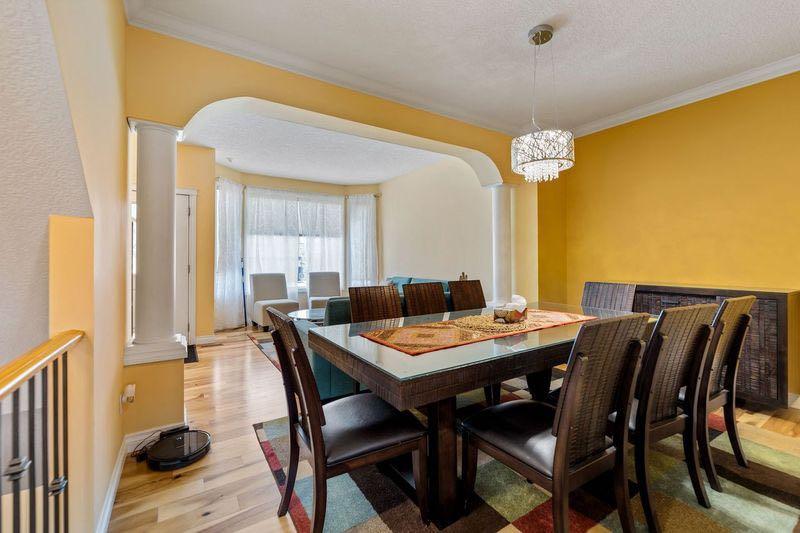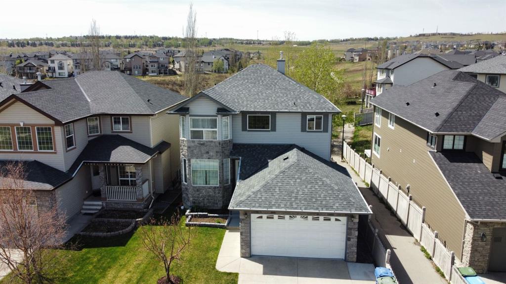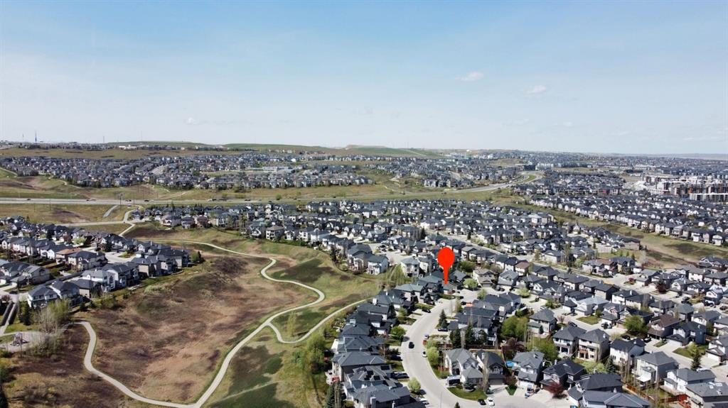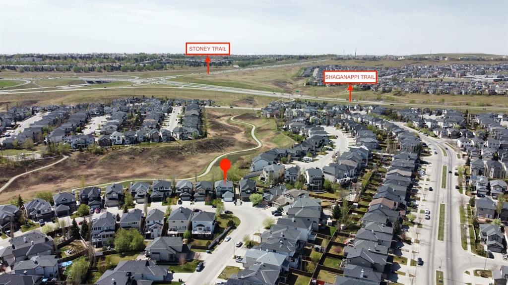 Welcome to this spacious and beautifully upgraded 6-bedroom, 3.5-bathroom walkout home backing onto a serene ravine, offering the perfect blend of privacy, comfort, and functionality. The main floor boasts an open and inviting layout, featuring a bright living room, a cozy family room, a formal dining area, and a sunny breakfast nook that overlooks the ravine. The kitchen is a chef’s dream, complete with solid wood cabinetry, granite countertops, stainless steel appliances, and a stylish insert hood fan. A deck overlooking the ravine is ideal for enjoying your morning coffee. A private office offers a quiet space for work, and the convenient half bath rounds out this well-appointed floor. Upstairs, the large master bedroom with a walk-in closet is a true retreat, featuring a luxurious 5-piece ensuite. The upper level offers 3 additional good-sized bedrooms and another full bathroom, making this home ideal for growing families. The fully finished walkout basement includes two more bedrooms, a full bath, kitchen, a large living area with projector electrical fittings and a covered porch – an illegal suite with a private entrance and excellent potential for legal conversion. The backyard is a great space to enjoy the summers and winters alike. Additional upgrades include a new roof (2025), upgraded hardwood flooring, central A/C, and an insulated, drywalled double garage. Ideally located in a family-friendly neighborhood, this home is just a short walk to Creekside Shopping Centre, SageHill Shopping Centre, Public transit, parks, and offers easy access to Stoney Trail—making daily commutes and errands a breeze. The house is located a short walk from a soccer and a baseball field that gets converted to an ice rink in the winters. This property boasts a bike, transit and amenity score of a 100. This is an excellent opportunity to own a move-in-ready home in a highly desirable and amenity-rich community.
