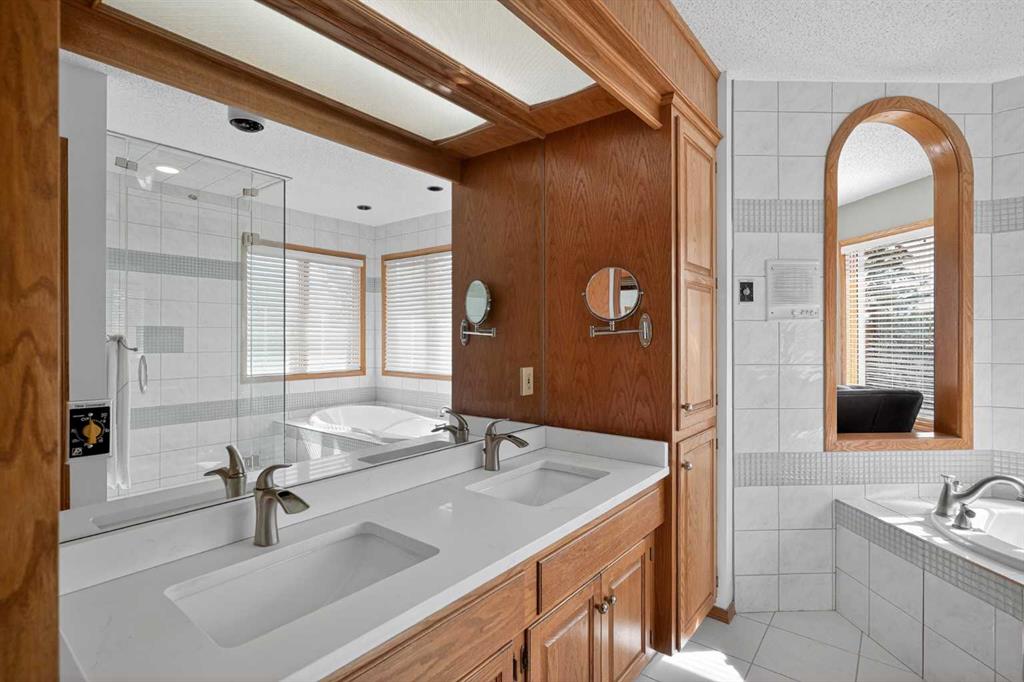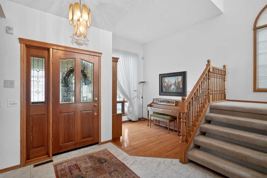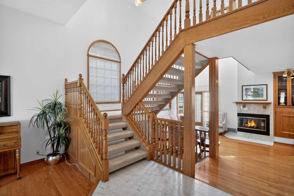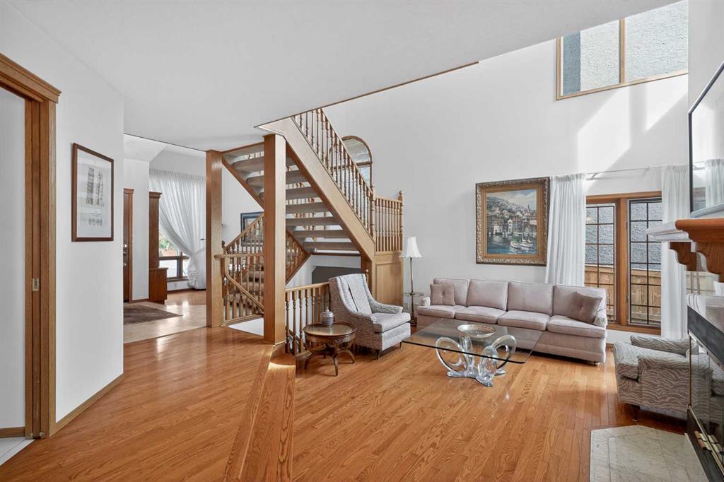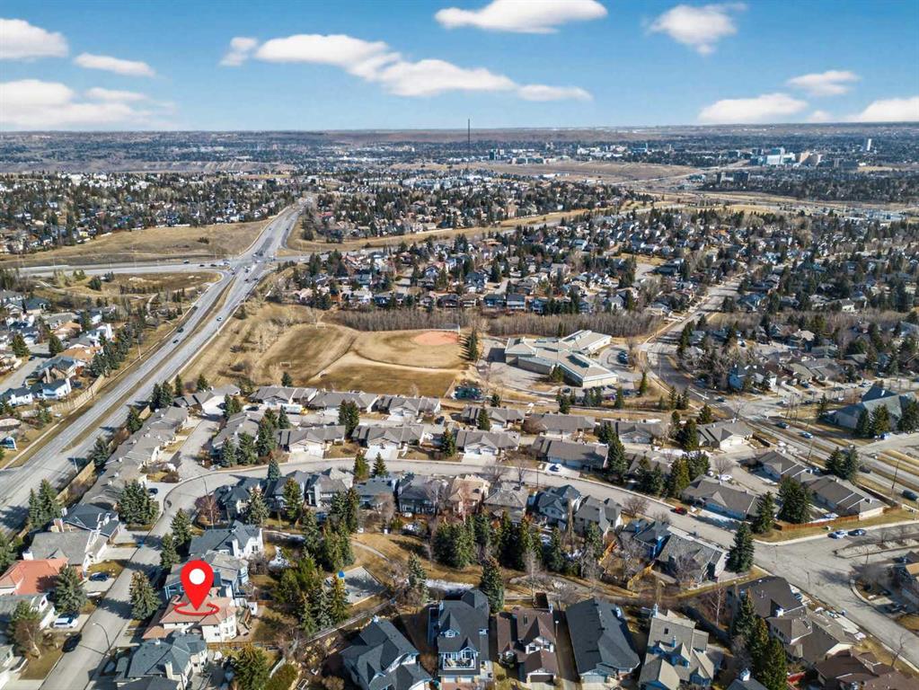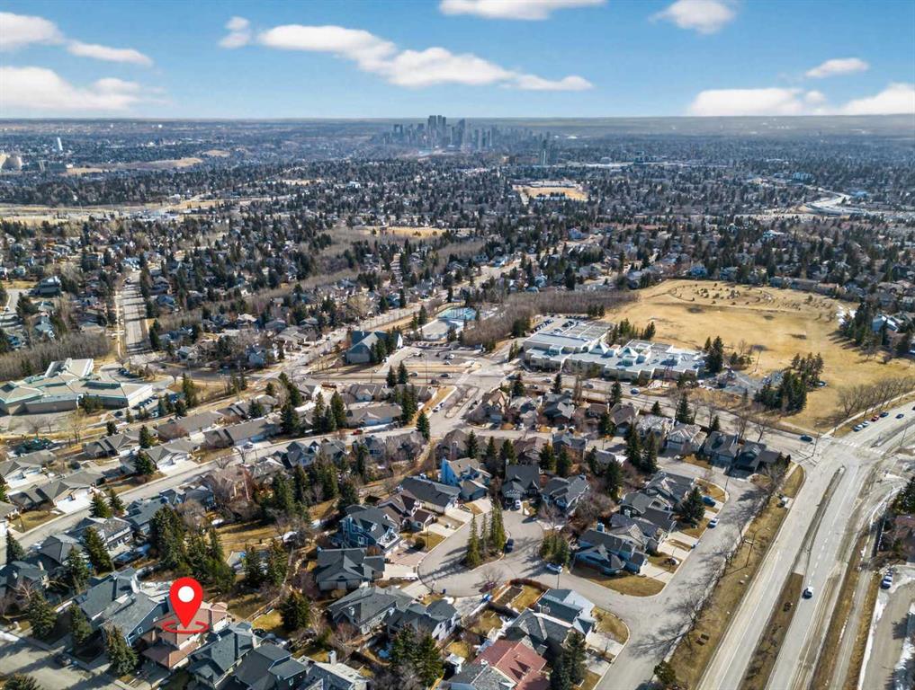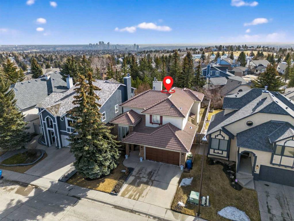 Welcome to Stathcona Park, truly one of Calgary’s most family oriented and sought after communities. This home is a fantastic, custom built gem that brings a very unique and desirable layout to your families next home. As you take in the gorgeous curb appeal you’ll notice the tiled roof , brick and stucco exterior lending to a durable and reliable home that will last through the ages along with quaint gardens and mature trees. As you enter your new home you are greeted with a blend of tile and gleaming hardwood floors that will invite you in to high ceilings, see through stair cases, windows everywhere and a fantastic open floor plan. A formal sitting room overlooks your front yard and is the perfect place for reading or conversation with guests. Your sunken living room with soaring ceilings is a focal point of the home and a show stopper to say the least accompanied by your gas fire place and door leading to the wrap around deck. Your dining room is the perfect size for entertaining or for quite nights home with the family. Your well equipped kitchen features thick granite counter tops, stainless steel appliances, a gorgeous breakfast nook surrounded by windows overlooking the back yard and access to the rear deck, perfect for indoor/outdoor dining and entertaining. Another sitting room with gas fireplace is attached to the kitchen and is perfect for a home office, library or TV room. Your half bathroom/laundry room finishes off the main floor before heading upstairs. On the upper level you have a perfect layout starting with a small seating area leading through french doors to your primary suite. Opulence is the word to describe your primary retreat. Large enough for an oversized king bed, all of your additional bedroom furniture and a seating nook bathed in light, overlooking your back yard. The spa style ensuite gives luxury hotel vibes with a large soaker tub, walk-in shower, beautiful tile work and dual sinks. The second and third bedrooms are a great size and each have a door to the full bathroom directly from the bedrooms. The basement is fully finished as an entertainment space and includes the pool table making it the perfect area for family game night or to host your friends for the big sporting event on that weekend. The outdoor space is really what makes this home special with a large deck, expansive yard with mature trees and backs directly on to a playground that you can access from a gate in your back fence. Truly one of the most special features of this home. Your new home is right in the middle of 3 amazing schools within minutes from your front door, Strathcona Park Board Walk down by the river, soccer fields, parks, pathways and playground’s making this a unique opportunity to own this stunning home in one of Calgary’s most desired communities. Welcome Home