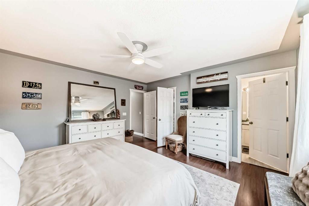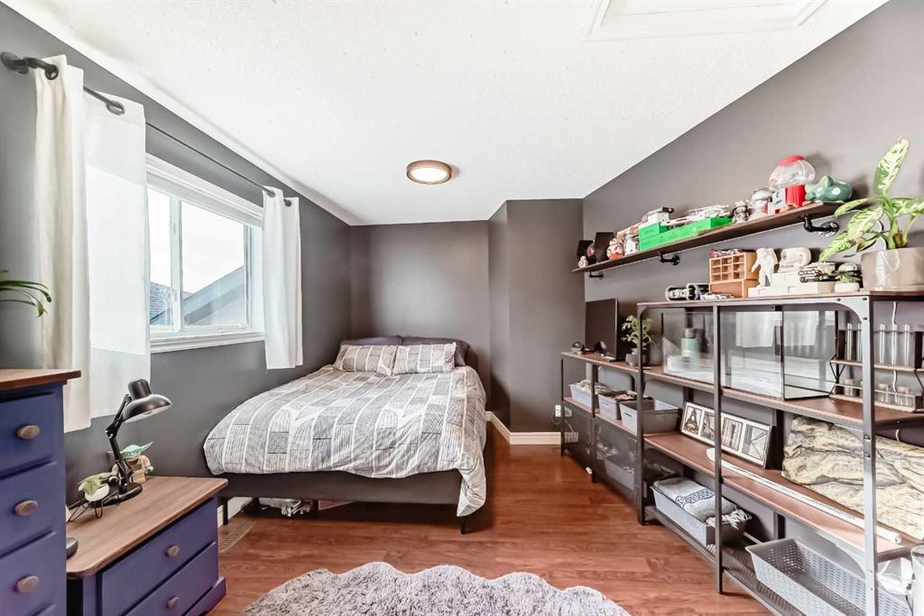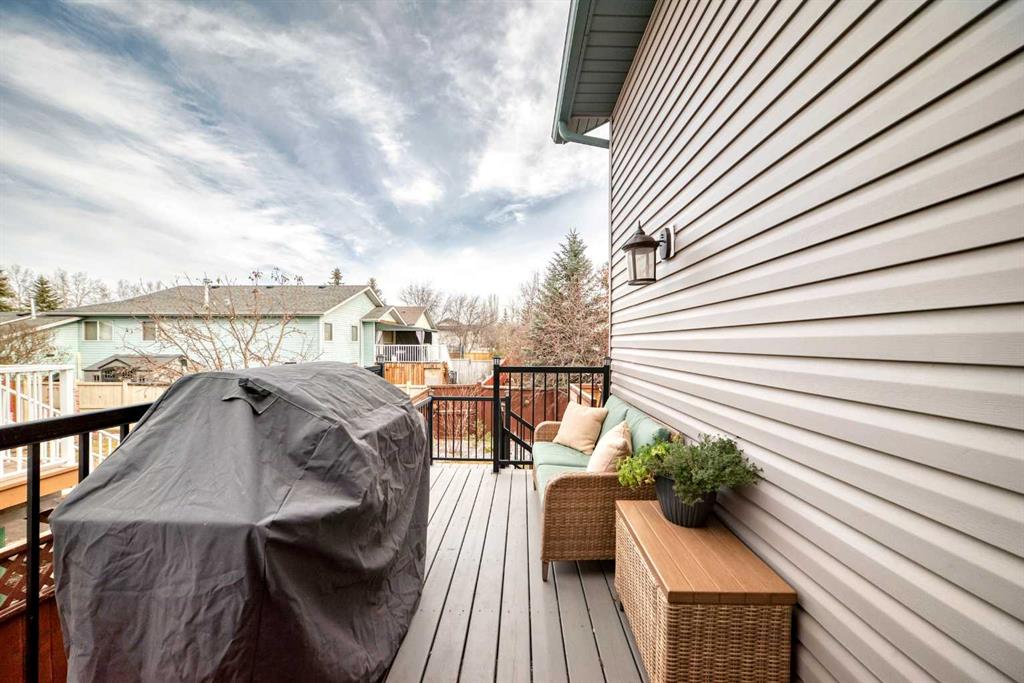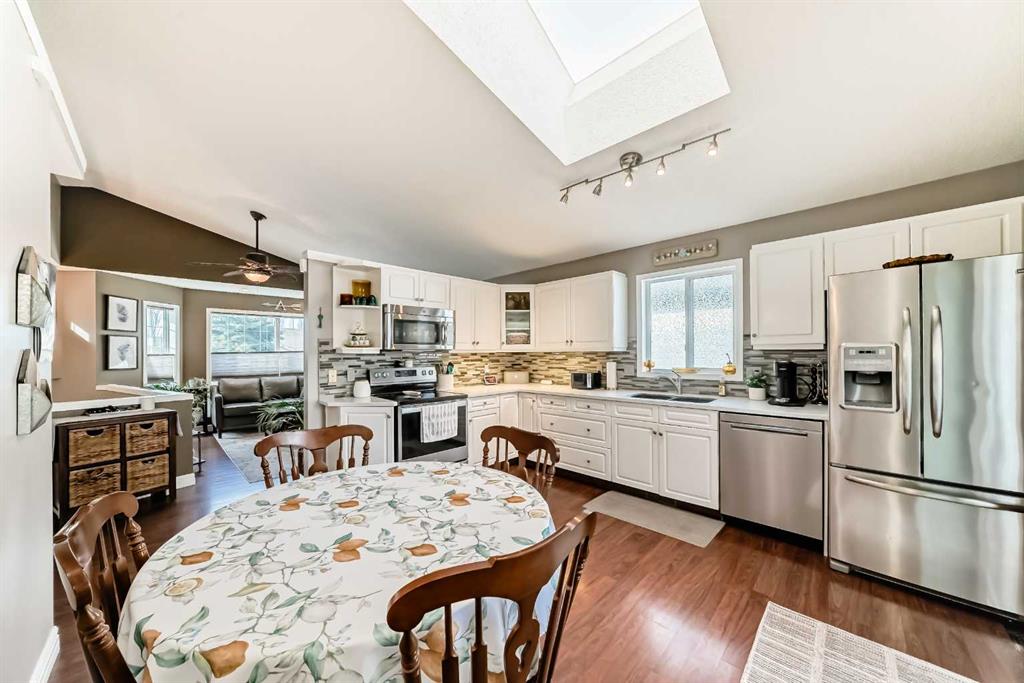 Welcome to this spacious and stylish fully developed bilevel home offering nearly 2,000 sq. ft. of comfortable living space in the highly desirable Sunridge community that is within walking distance to the tri-schools and where homes rarely come to market. Step inside to an inviting open-concept main floor featuring vaulted ceilings, high-grade laminate flooring, and a bright kitchen with skylight and generous eating area. The primary bedroom includes a walk-in closet and a convenient 2-piece ensuite, with an additional generous-sized bedroom completing the main level. The bright, open basement is perfect for relaxing or entertaining, offering a cozy family room and flex space with a gas fireplace, plus a large additional bedroom, full bathroom, and plenty of storage. Enjoy the beautifully landscaped yard, designed for privacy with mature trees and shrubs, along with upper and a lower private deck — ideal for outdoor gatherings. Additional highlights include a double attached garage (insulated and roughed-in for heat), solar panels for lower utility costs, and air conditioning to keep you cool in summer. With a newer furnace and hot water tank, this home has been updated top to bottom, inside and out — ready for you to move in and enjoy.