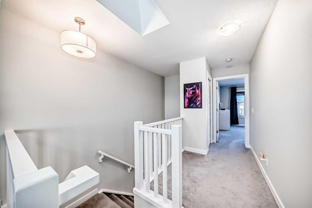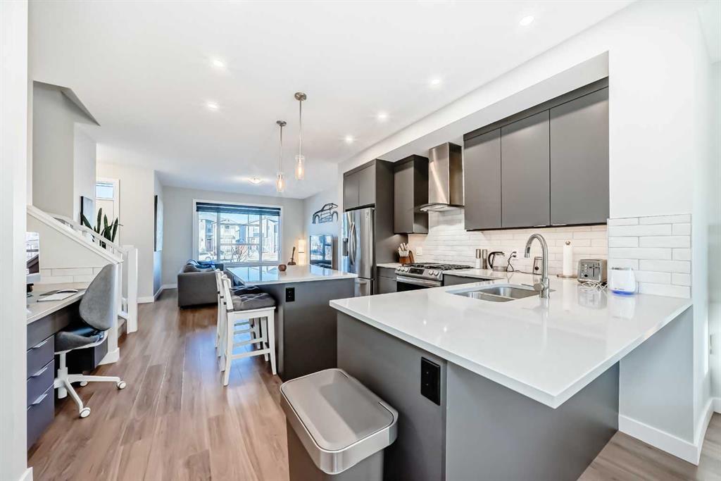 Click brochure link for more details. Welcome to Wolf Willow! This stunning townhouse sits on one of the most desirable streets in the community, with a pathway promenade that will connect with the river pathways leading into fish creek. This no condo fee townhouse features many builder upgrades, including upgraded railings and skylight. This home also features a soft water system. The main floor has plenty of space for family or entertaining. The Kitchen has an upgraded modern cabinetry with backsplash and beautiful quartz countertops with plenty of seating all around. You will love the upgraded appliances, including gas stove! The main floor has massive windows allowing for tons of sunlight , with high quality window coverings. There is also a nook set up as flex space for computer or coffee/wine bar. A two piece powder room also on the main floor. Upstairs you will find a large master bedroom with walk in closet and ensuite with shower and plenty of cabinet space. there is a second bedroom as well as a loft/flex space. There is another full bathroom with tub on the second floor. The basement is unfinished and ready for your input. Out back you will find a nice deck with bbq gas line and fully fenced yard space to enjoy your summer months. Also a detached insulated and heated garage to keep your car cozy in the winter months. You will be close to many amenities and shopping close by as well as dog parks.
