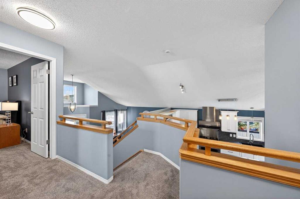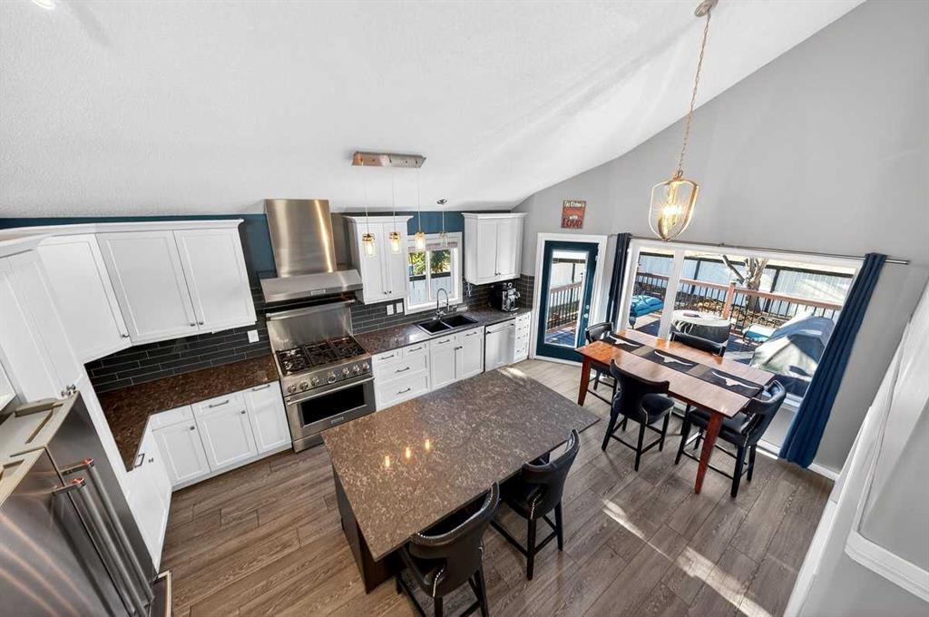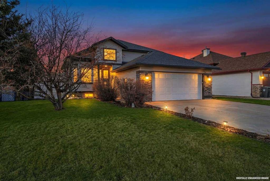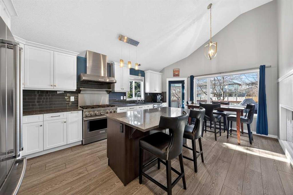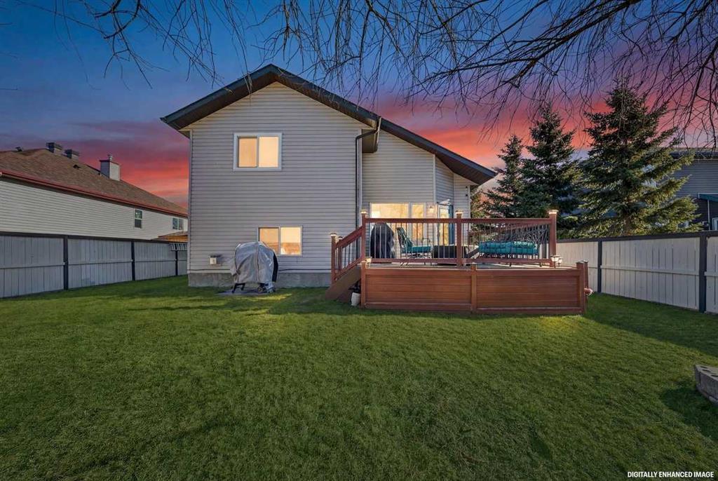 Welcome to this beautifully upgraded 5 bedroom, 2.5 bathroom split-level in the charming community of Crossfield, backing directly onto green space for added privacy and views. This home offers incredible value with $30,000 in fully paid solar panels, central air conditioning, and numerous major updates already completed. Inside, you’ll find unique porcelain flooring and new carpet throughout. The renovated kitchen (2020) features new cabinetry, quartz countertops, a large island with under-cabinet lighting, stainless steel backsplash, glass subway tile, and an impressive 36″ dual fuel stove with hood fan and heat lamps. The fridge and dishwasher were replaced in 2020, and quartz counters continue into the bathrooms for a cohesive, modern finish. Additional updates include a new roof (2022), 50-gallon hot water tank (2021), garage door and opener (2021), water softener, and garburator. The heated garage also offers hot and cold water taps. Enjoy the maintenance-free deck with natural gas hookup (fire table can be included), a fully fenced yard, and a resin shed for extra storage. A move-in ready home with space for the whole family, premium upgrades, and energy efficiency already in place—this one truly checks all the boxes.