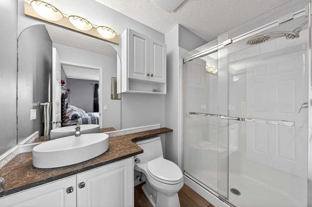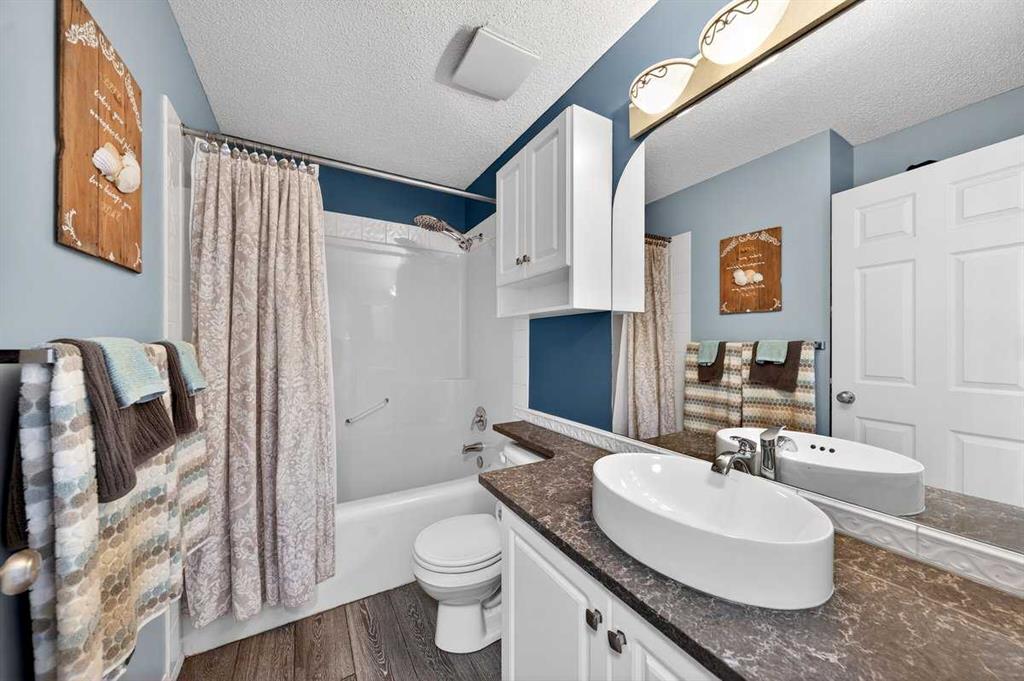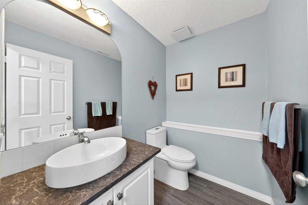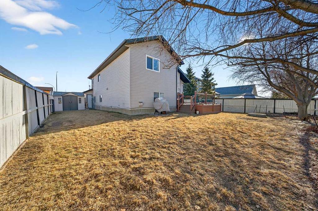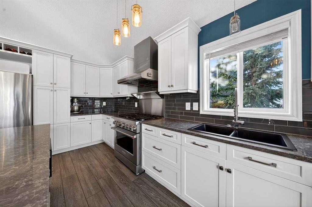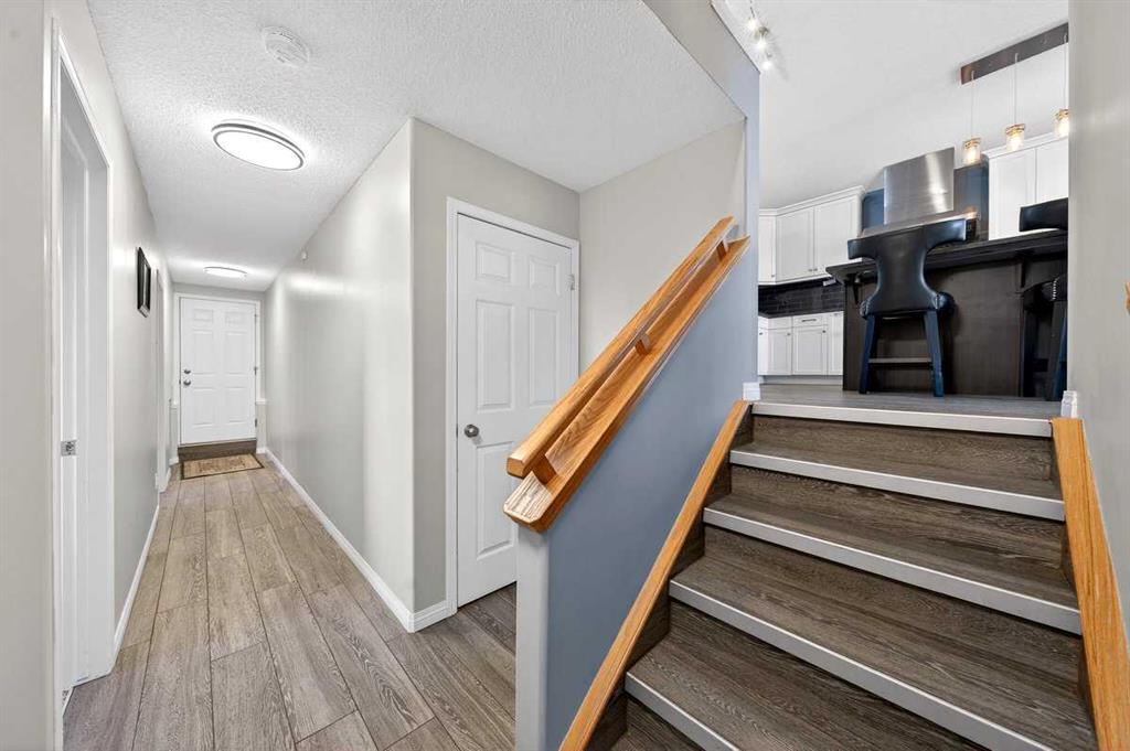 Welcome to this beautifully upgraded 5 bedroom, 2.5 bathroom split-level in the charming community of Crossfield, backing directly onto green space for added privacy and views. This home offers incredible value with $30,000 in fully paid solar panels, central air conditioning, and numerous major updates already completed. Inside, you’ll find unique porcelain flooring and new carpet throughout. The renovated kitchen (2020) features new cabinetry, quartz countertops, a large island with under-cabinet lighting, stainless steel backsplash, glass subway tile, and an impressive 36″ dual fuel stove with hood fan and heat lamps. The fridge and dishwasher were replaced in 2020, and quartz counters continue into the bathrooms for a cohesive, modern finish. Additional updates include a new roof (2022), 50-gallon hot water tank (2021), garage door and opener (2021), water softener, and garburator. The heated garage also offers hot and cold water taps. Enjoy the maintenance-free deck with natural gas hookup (fire table can be included), a fully fenced yard, and a resin shed for extra storage. A move-in ready home with space for the whole family, premium upgrades, and energy efficiency already in place—this one truly checks all the boxes.