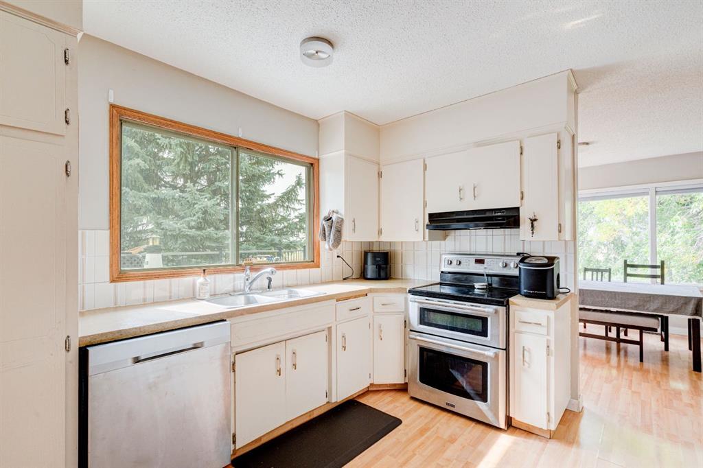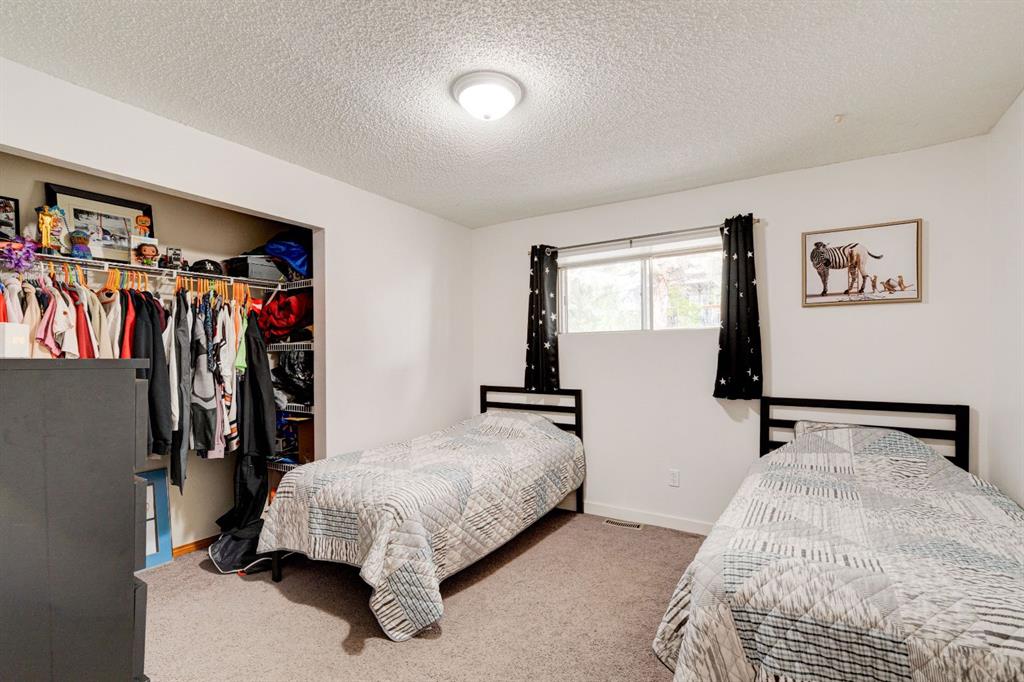 The fully developed basement offers even more space and versatility, with two additional bedrooms, a large family room featuring a cozy stone wood-burning fireplace, a second dining/rec area, and a full 4-piece bathroom. This level previously housed a full kitchen, which can easily be reinstalled to create a secondary suite (subject to City’s approval) or wet bar. The basement also includes a laundry area, extra storage, and direct access to the oversized heated double garage with a separate panel.