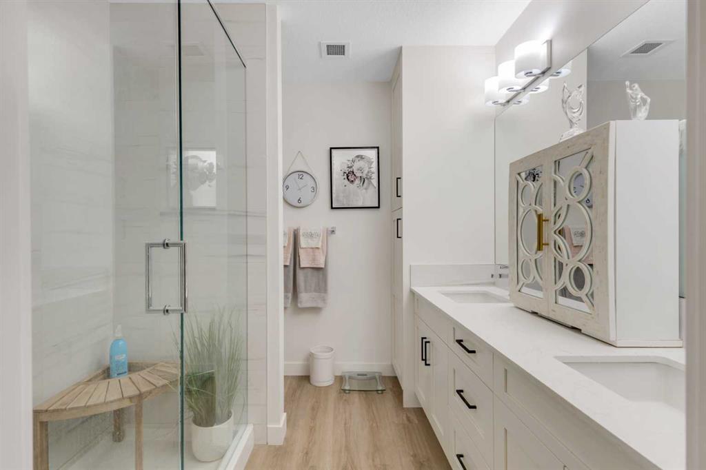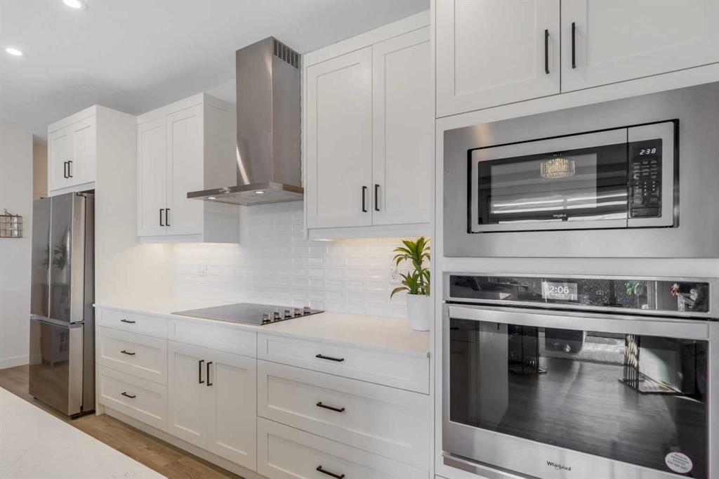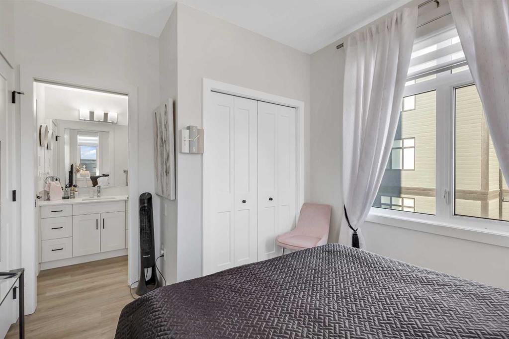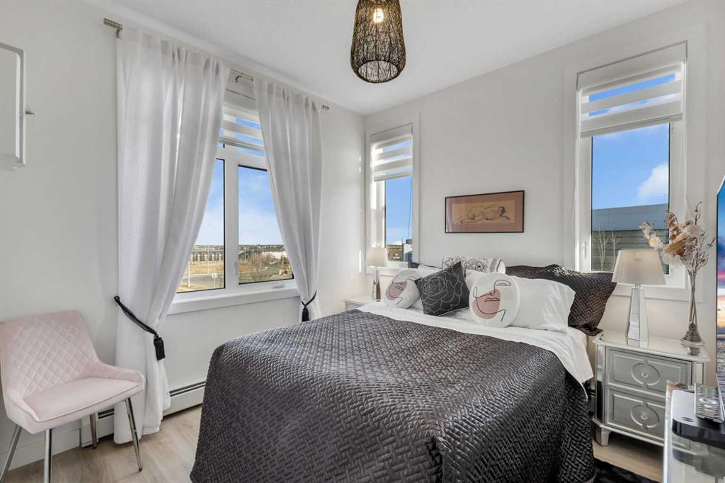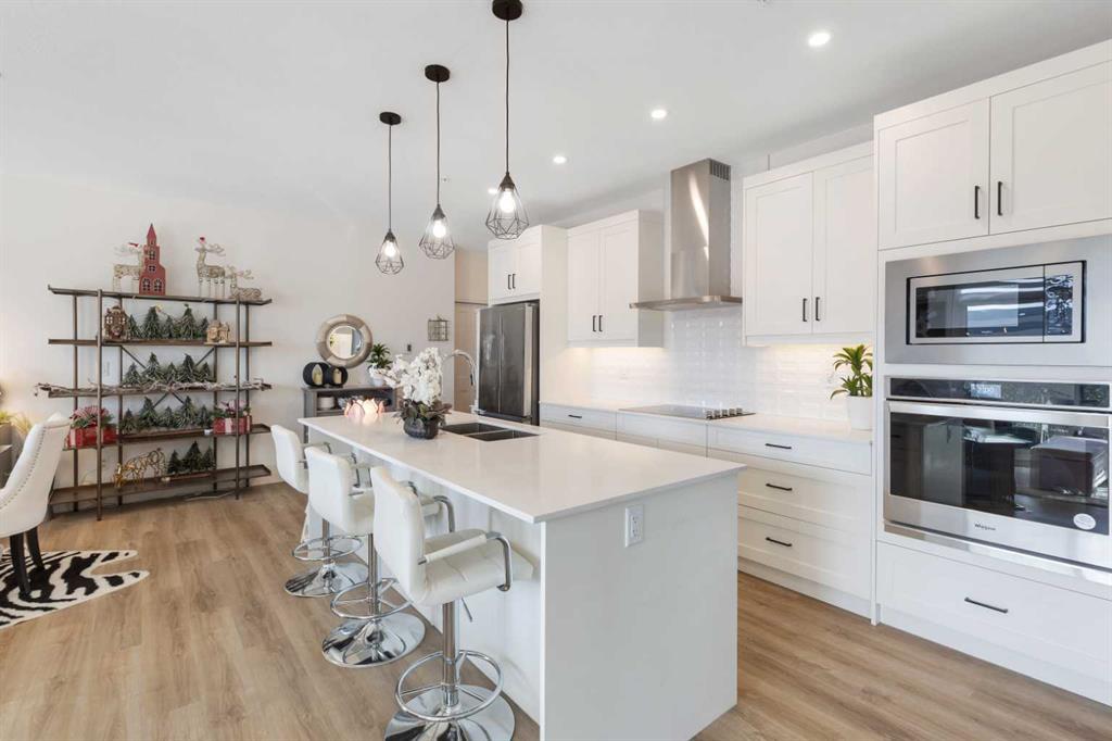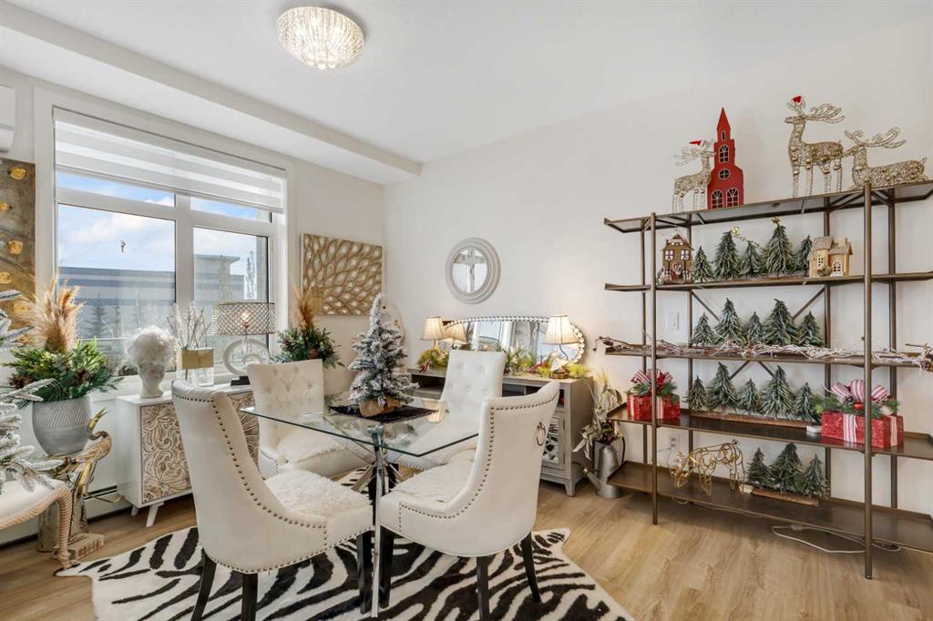 Welcome to this well maintained 2021 built 2 bedroom, 2 bathroom luxury ground level, corner unit condo in the amazing community of Sage Hill. From the front door, you are welcomed with a spacious private foyer with a closet, this condo features everything you will need with 1061 square feet of living space, luxury vinyl plank flooring throughout, a full eat in kitchen with gorgeous white contemporary quartz counter tops, a huge upgraded island, built-in microwave, built-in oven, a counter top stove, all stainless steel appliances with upgraded fridge, as well all the cupboards. It also features a large living area to comfortably fit a dining table, a full living room. The large Primary bedroom has a full walk-in closet, en-suite with double vanity, and a fully tiled shower with an 8mm glass sliding door. The spacious second bedroom offers direct access to the second full bathroom with large vanity, tile and a tub/shower combo. The laundry room offers extra storage space, full size front load stacked washer and dryer. Enjoy the morning sun on the large wrap around patio which has a natural gas line. This unit has full air conditioning to keep you cool during the hot summer months, and upgraded blinds on all the windows. Stay warm in the winter months with secure heated underground parking and a storage unit at your parking stall. This professionally managed building is well taken care. Just walking distance from your patio to the Township shopping complex in Sage Hill across the street for all your necessities.