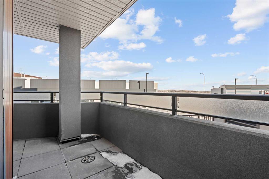 Welcome to this stylish CORNER, AIR CONDITIONED unit in Q Condos at Sage Hill NW, offering the perfect blend of privacy, upgrades, and unbeatable walkability. Although the unit is located on the ground level, it sits elevated and set back from the street, creating a private and secure outdoor space that feels more like a raised terrace than a typical ground floor patio. This bright, modern and clean 2-bedroom, 2-bathroom home features over 800 square feet of open concept living, enhanced by extra windows that fill the space with natural light throughout the day. This unit feels brand new! The thoughtful layout creates great separation between the bedrooms while the 9 ft ceilings add to the spacious, airy feel. The upgraded kitchen is both functional and elegant, showcasing quartz countertops, kitchen cabinets to the ceiling, stainless steel appliances, a slide-in electric range, and pot lights for a clean modern finish. Luxury vinyl plank flooring runs through the main living areas and the home also includes professionally installed window coverings throughout. One of the standout features of this home is the oversized L-shaped balcony with unobstructed views, offering a fantastic space for relaxing or entertaining. Comfort is further enhanced by an air conditioning unit, helping keep the home cool during Calgary’s warmer months. There is also a TITLED heated UNDERGROUND parking spot + TITLED heated underground STORAGE. The location is a major highlight. You are just a one minute walk to Sage Hill Crossing, where you will find everyday conveniences including Co-op grocery store, Shoppers Drug Mart, Canada Post, Tim Hortons, Anytime Fitness, childcare services, Golf Sweet indoor golf, and numerous restaurants and shops. The home also offers quick access to Stoney Trail and Deerfoot Trail, making commuting easy, while downtown Calgary is approximately 20 minutes away. Scenic walking paths, parks, and playgrounds are also close by. Whether you are a first-time buyer, downsizer, or investor, this well-designed condo offers modern comfort, privacy, and a location that is hard to beat in one of NW Calgary’s most convenient and growing communities. Book your showing today and experience everything Sage Hill living has to offer! NOTE: for pets – max 1 pet unit allowed. View our 3D iGuide Virtual Tour!!