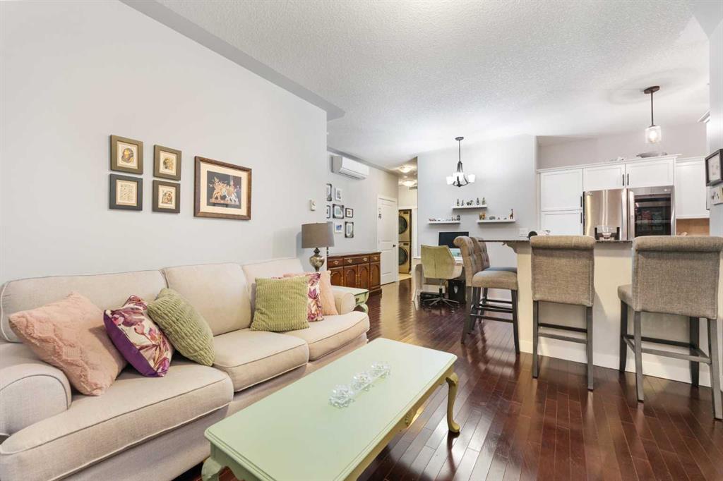 Welcome to SoBow in the heart of Inglewood—one of Calgary’s most vibrant and beloved communities, once voted Best Neighbourhood in Canada. This beautifully updated 2 bedroom, 2 bathroom main floor unit offers an unbeatable lifestyle just steps from unique shops, acclaimed restaurants, art galleries, and the Bow River pathway system. Whether you’re biking, walking, or hopping on an e-scooter, downtown is effortlessly accessible, making everyday living as convenient as it is exciting. Inside, the open-concept floor plan is bright and welcoming, framed by large windows that flood the space with natural light. Engineered hardwood floors flow throughout the main living areas, while a cozy gas fireplace anchors the living room—perfect for relaxing evenings at home. The modern kitchen is both stylish and functional, featuring granite countertops, stainless steel appliances, garburator, updated cabinetry, and plenty of workspace for cooking and entertaining. The thoughtful layout includes two well-sized bedrooms and two beautifully finished bathrooms. The primary suite offers a spa-like ensuite with dual sinks, quartz countertops, and a built-in linen closet, while the second bathroom is equally polished with matching quartz finishes. In-suite laundry adds everyday convenience, and a titled storage unit provides extra space for seasonal or recreational items. Step outside to your large main floor patio—ideal for morning coffee, evening wine, or summer BBQs thanks to the gas hookup. Pet lovers will appreciate that this building is extremely pet-friendly, with nearby pathways, parks, and even dog-welcoming local favorites like Cold Garden just around the corner. SoBow residents also enjoy outstanding building amenities, including an enormous fitness facility with steam shower and sauna, a large media room, bistro area, and a stylish lounge complete with foosball and pool tables—perfect for entertaining or unwinding without ever leaving home. With quick access to Deerfoot Trail, Blackfoot Trail, downtown, and Pearce Estate Park’s playgrounds, picnic areas, and river pathways, this location truly offers the best of urban living with a community feel. Don’t miss your opportunity to live in one of Calgary’s most sought-after neighborhoods—this is Inglewood living at its finest.