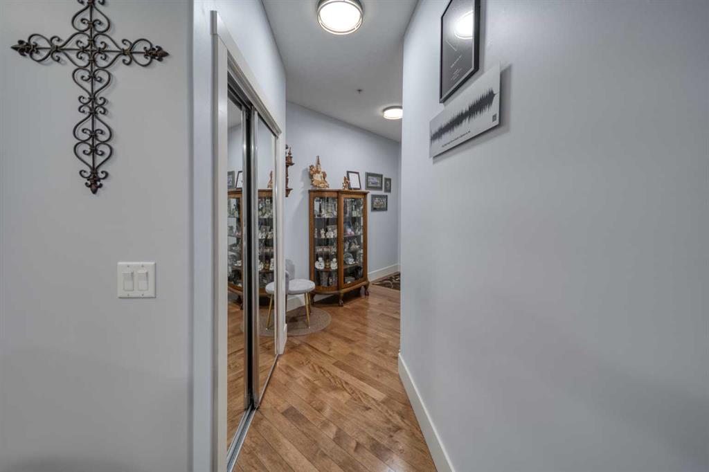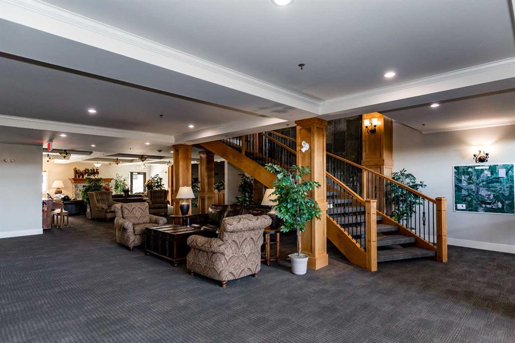 Welcome to Cochrane’s most prestigious condo complex. Situated along George Fox Trail, Lofts on the Bow overlooks soccer fields, a playground area, the Bow River and the Big Hill. This two bedroom, two bathroom condo plus a Den is an end unit and features a private patio adjoining the 7,000 square foot Courtyard. The patio comes with a gas hookup for your BBQ and also has a storage room included. Inside, this unit features Hardwood floors throughout except in the bathrooms and Laundry room. They have linoleum flooring. The Kitchen has granite counter tops and lots of cabinets. The lower cabinets have pullout shelving. The ceilings are 9 feet tall and makes the area look larger. New lighting throughout and unit has all new paint. All appliances are included and are just 1 year old. This condo is secluded and sheltered and great for bird watching. This complex is a 55+ building and has many amenities including a pool table for those who like that, a workout room with various machines, a meeting room/ quilting room, a full kitchen and banquet facilities. There are also two guest suites that can be rented for your guests comfort. One Titled and heated underground parking space is included and there is a car wash in the Parkade. There are also lots of outside parking spaces on either side of the condo building and extra ones at the back of the building for those oversized vehicles. Come and check out this unit soon as it won’t last long.