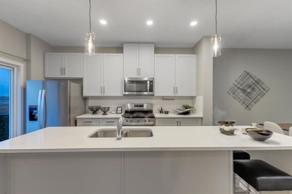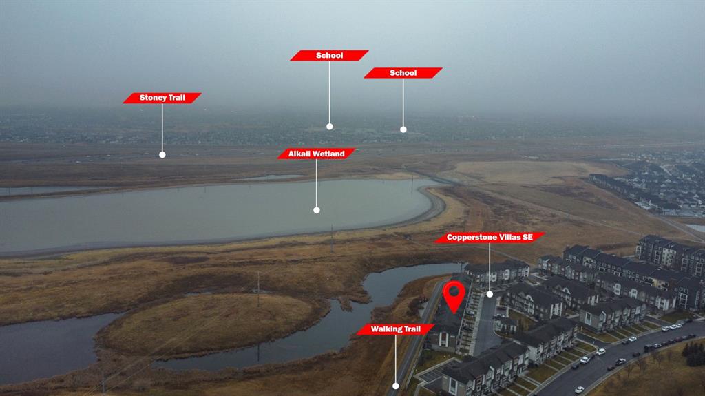 Welcome to this beautiful 2-bedroom, 2.5-bathroom townhome in the quiet and private Copperfield Chalet community at 116 Copperstone Villas SE. With modern finishes, a functional layout, and rare natural wetland views, this home offers the perfect blend of comfort, convenience, and lifestyle. Step inside to a bright, open-concept main level where large windows and thoughtful design make the space feel warm, inviting, and spacious. The heart of the home is the stunning chef-inspired kitchen, complete with white cabinetry, quartz countertops, stainless steel appliances, a large centre island, and seamless access to your private deck—ideal for morning coffee, evening BBQs, or simply taking in the serene surroundings. The main floor also features generous living and dining areas, creating an effortless flow for both everyday living and entertaining. A convenient 2-piece powder room completes this level. Upstairs, you’ll find two spacious primary-style bedrooms, each with its own walk-in closet and private ensuite, offering outstanding comfort and privacy—perfect for roommates, guests, or a growing family. The lower level adds even more versatility with a dedicated tech/flex room, ideal for a home office, workout area, or creative space. An attached garage provides both convenience and additional storage. What truly sets this home apart is its setting: backing onto Copperfield’s beautiful walking trails and protected Alkali wetlands, offering a peaceful buffer from traffic and a natural, retreat-like atmosphere right outside your door. Playgrounds, green spaces, schools, and everyday amenities are all just steps away, making this location as practical as it is picturesque. This move-in-ready townhome is an excellent match for first-time buyers, young professionals, investors, or anyone seeking low-maintenance living without compromising on style or surroundings. Don’t miss your chance to experience Copperfield Challet living—book your private showing today!