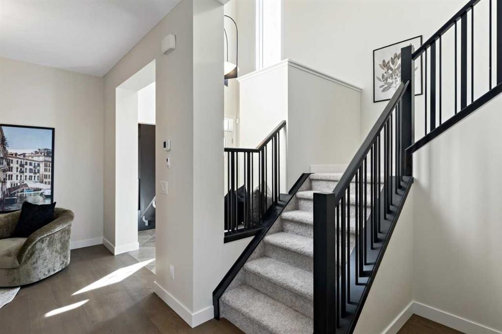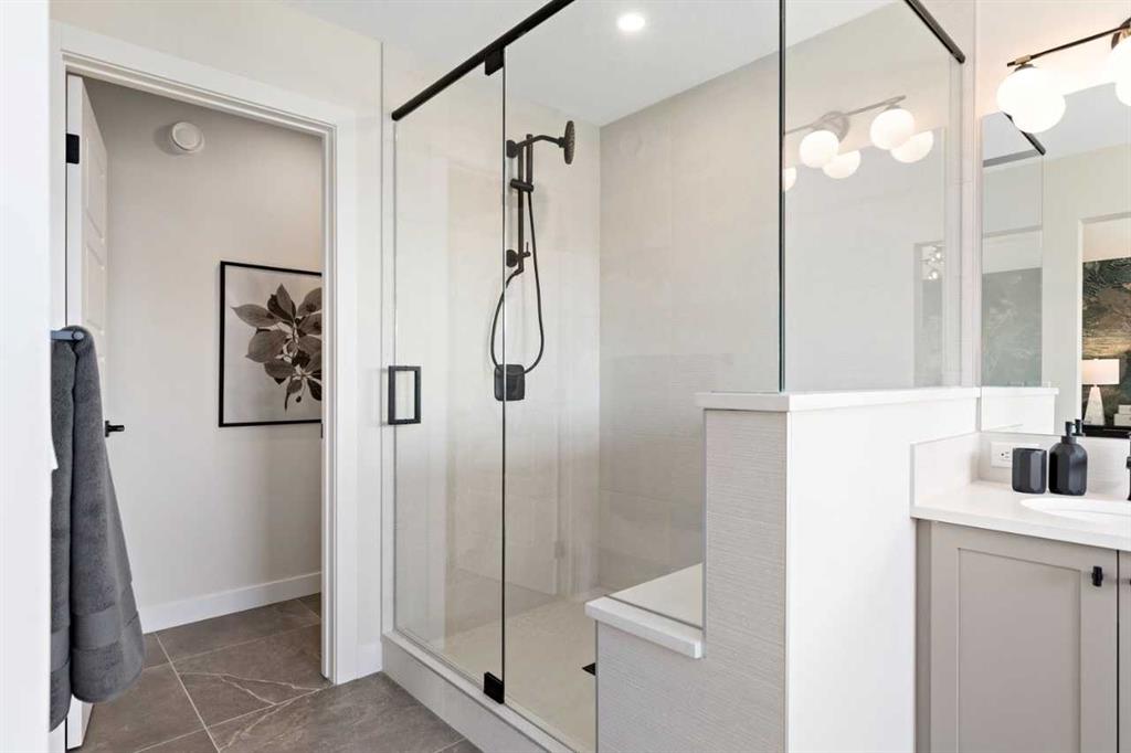 Located in East Calgary, the vibrant community of Huxley offers the perfect blend of amenity-rich city living and small-town comfort. Surrounded by natural grasslands, preserved greenspaces, and a scenic wetland park, Huxley provides a peaceful setting just minutes from East Hills Shopping Centre and major routes. The Oakridge model by Trico Homes showcases superior craftsmanship and thoughtful design. This spacious 2,158 sq. ft. home features 9′ ceilings, an open-to-below foyer, engineered hardwood flooring, quartz countertops, and high-efficiency appliances. The main floor includes a large kitchen with abundant cabinet and counter space, soft-close drawers, a walk-in pantry, and a convenient flex room. Additional highlights include a side entrance for future basement development, with an option for a main-floor bedroom, full bath, and spice kitchen. Photos shown are from the Oakridge showhome. Upstairs, you’ll find a large bonus room plus three bedrooms, including a primary bedroom designed for two, with an expansive walk-in closet and a spa-inspired ensuite. Photos are representative