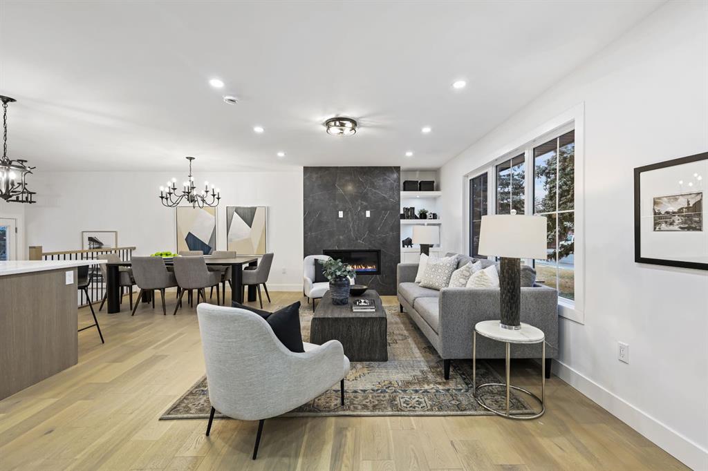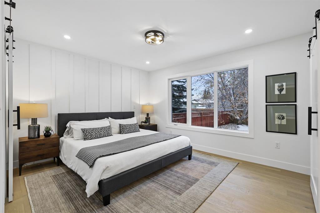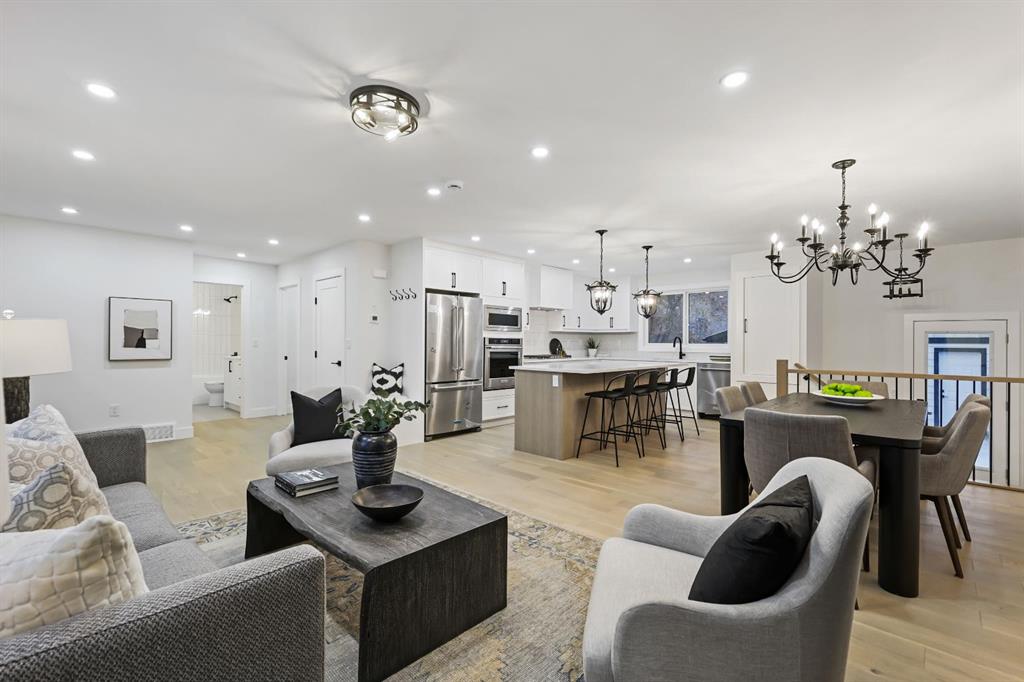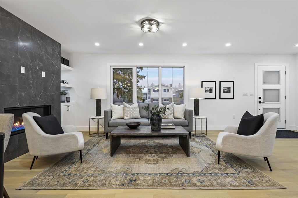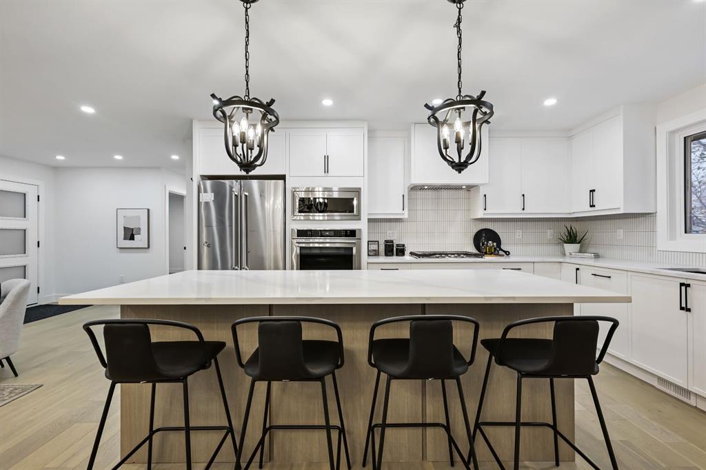 Welcome to this stunning, fully renovated bungalow on a large lot in the desirable, family-friendly community of Silver Springs —a quiet, tree-lined neighborhood steps from schools, public transportation, shopping, and countless amenities. This beautifully renovated 4-bedroom, 3-bathroom home offers over 2,300 sq ft of finished living space, thoughtfully designed with clean lines, neutral colors and warm, natural materials throughout. Exceptional curb appeal provides pride of ownership which continues onto the picturesque entry. The main floor showcases engineered hardwood flooring, decorative lit niches and a stylish gas fireplace. The gourmet kitchen is a chef’s dream with quartz countertops, custom cabinetry, an oversized sit-up island, loads of cupboard space, a full suite of premium appliances including a 5-burner gas cook top with a built-in oven and a formal dinning room. The primary bedroom provides a tranquil retreat with designer lighting, spacious walk-in closet, and a spa-like ensuite featuring a double vanity, custom glass shower with rain head, and heated floors. A second bedroom and full bathroom complete the main level. Downstairs, the fully finished lower level is perfect for extended family or entertainment. It features two large bedrooms, a wet bar, a media feature wall, a full 4pc bathroom, and a separate play/gaming/office space. A brand new Electrolux washer/dryer adds to the convenience in your own laundry room. The fully fenced, landscaped yard offers mature trees, perfect for pets, kids, and entertaining. The oversized double detached garage is a true standout. Additional upgrades include: • Hardy board siding • New high-efficiency furnace & Hot water tank • All-new electrical and plumbing • All new windows throughout. Located less than 5 minutes to Stoney Trail, Crowchild Trail, and surrounded by scenic walking/biking paths, and Edworthy Park—this home truly blends style, comfort, and convenience. Perfect for families, or anyone seeking a turnkey property with premium finishes and functional flexibility. Don’t miss out on this exceptional Buy !