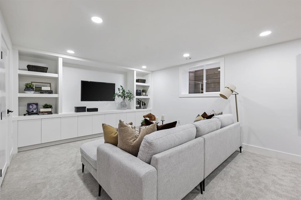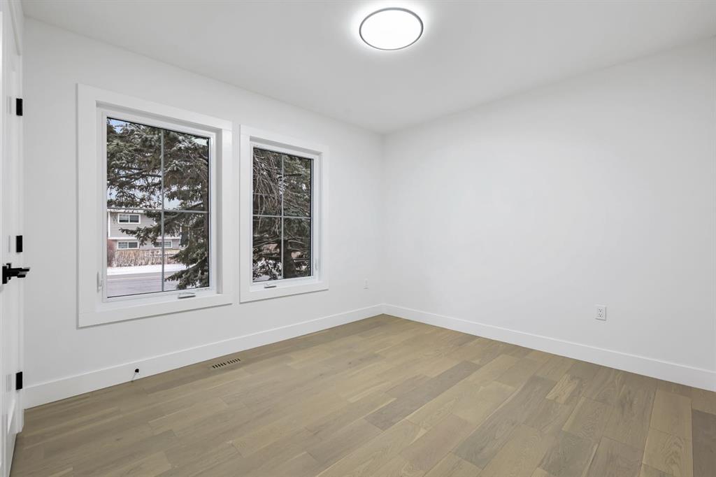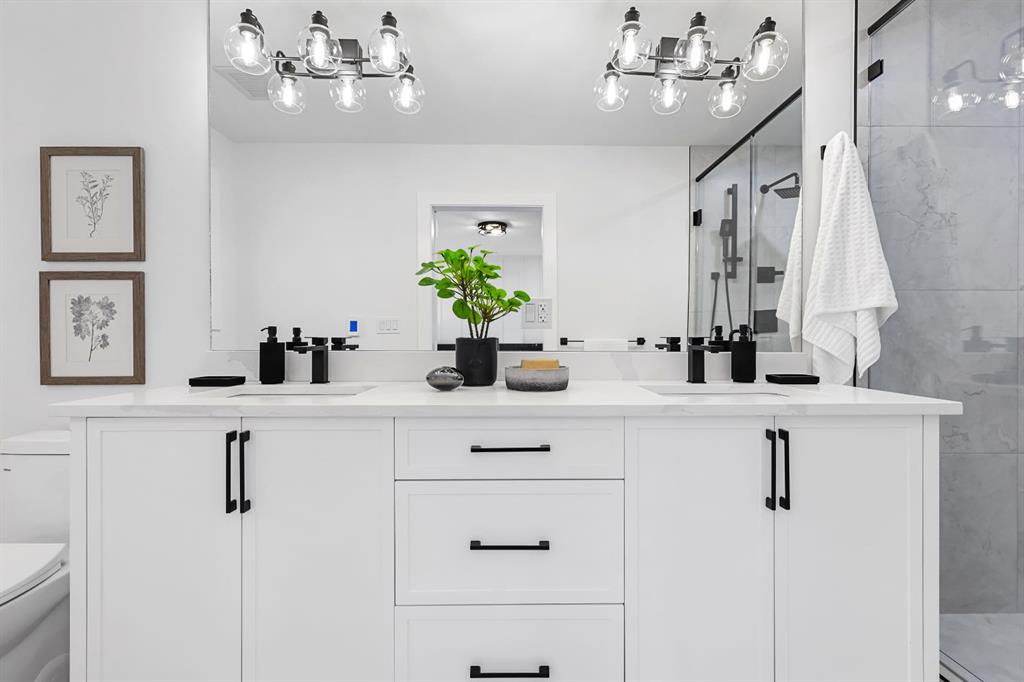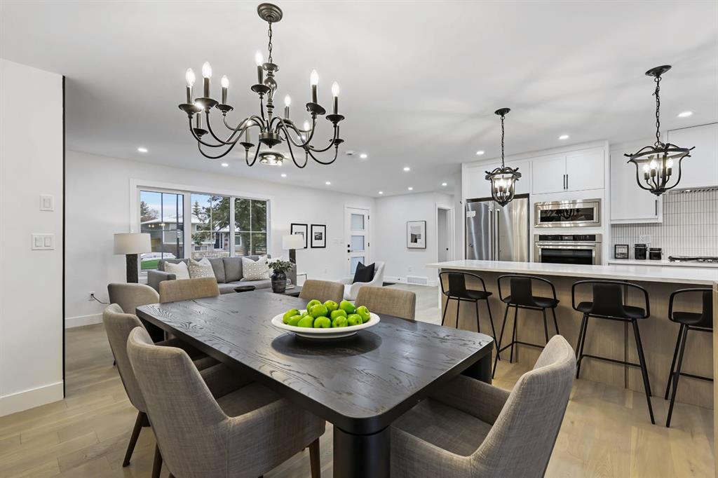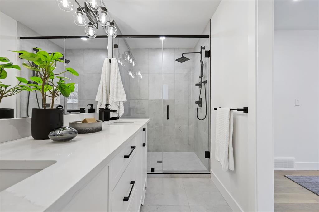 Welcome to this stunning, fully renovated bungalow on a large lot in the desirable, family-friendly community of Silver Springs —a quiet, tree-lined neighborhood steps from schools, public transportation, shopping, and countless amenities. This beautifully renovated 4-bedroom, 3-bathroom home offers over 2,300 sq ft of finished living space, thoughtfully designed with clean lines, neutral colors and warm, natural materials throughout. Exceptional curb appeal provides pride of ownership which continues onto the picturesque entry. The main floor showcases engineered hardwood flooring, decorative lit niches and a stylish gas fireplace. The gourmet kitchen is a chef’s dream with quartz countertops, custom cabinetry, an oversized sit-up island, loads of cupboard space, a full suite of premium appliances including a 5-burner gas cook top with a built-in oven and a formal dinning room. The primary bedroom provides a tranquil retreat with designer lighting, spacious walk-in closet, and a spa-like ensuite featuring a double vanity, custom glass shower with rain head, and heated floors. A second bedroom and full bathroom complete the main level. Downstairs, the fully finished lower level is perfect for extended family or entertainment. It features two large bedrooms, a wet bar, a media feature wall, a full 4pc bathroom, and a separate play/gaming/office space. A brand new Electrolux washer/dryer adds to the convenience in your own laundry room. The fully fenced, landscaped yard offers mature trees, perfect for pets, kids, and entertaining. The oversized double detached garage is a true standout. Additional upgrades include: • Hardy board siding • New high-efficiency furnace & Hot water tank • All-new electrical and plumbing • All new windows throughout. Located less than 5 minutes to Stoney Trail, Crowchild Trail, and surrounded by scenic walking/biking paths, and Edworthy Park—this home truly blends style, comfort, and convenience. Perfect for families, or anyone seeking a turnkey property with premium finishes and functional flexibility. Don’t miss out on this exceptional Buy !