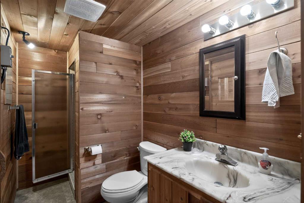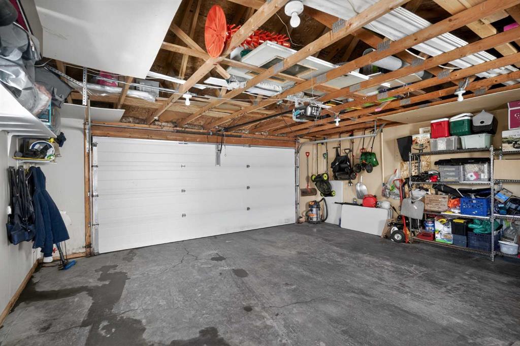 Three and a half bathrooms in total means the morning rush runs smoothly. Updates have been done where they count: new furnace, central A/C, updated appliances, newer roof, fence, and water heater. Outside, a beautiful concrete patio and landscaped yard make the outdoors genuinely worth stepping into. The detached double garage — a proper 22×22 — is wired with an electric car charger and sits off the paved lane alongside rare RV parking. And there is a sauna, because some homes still believe in looking after the people inside them.