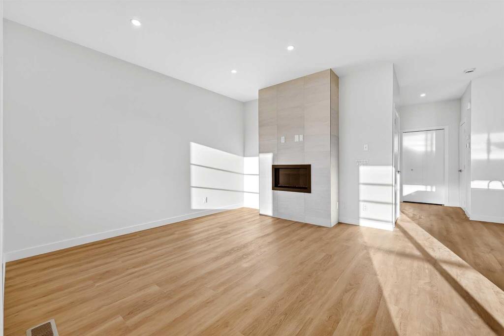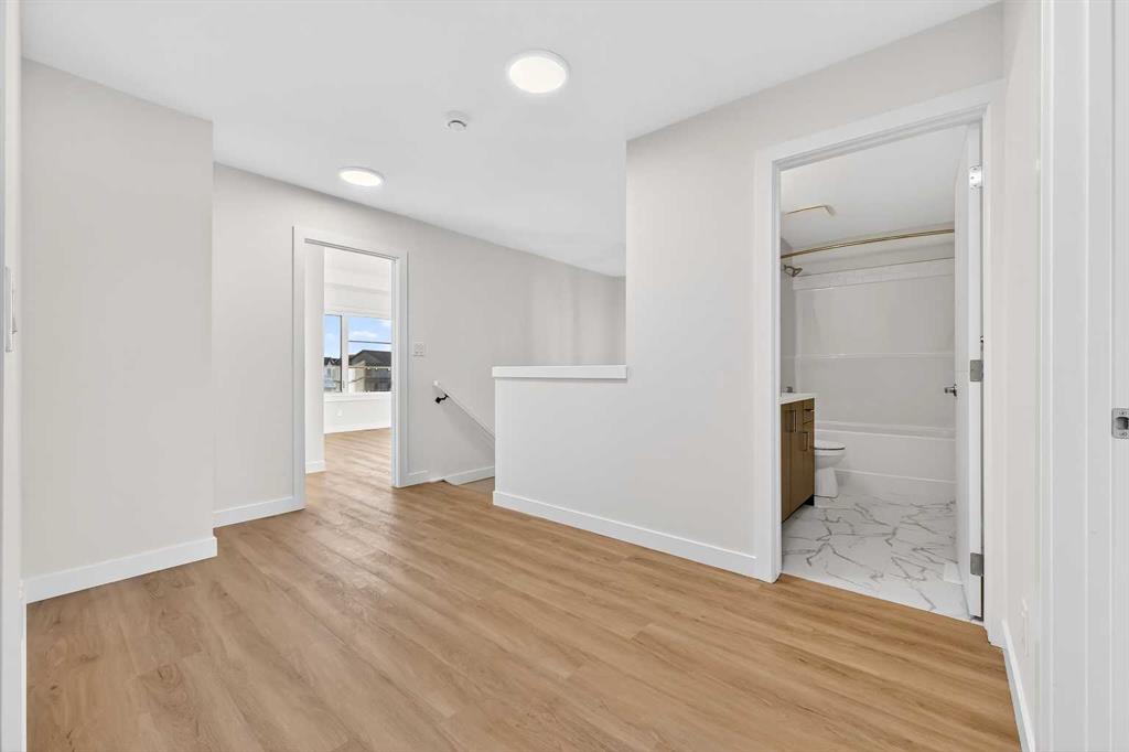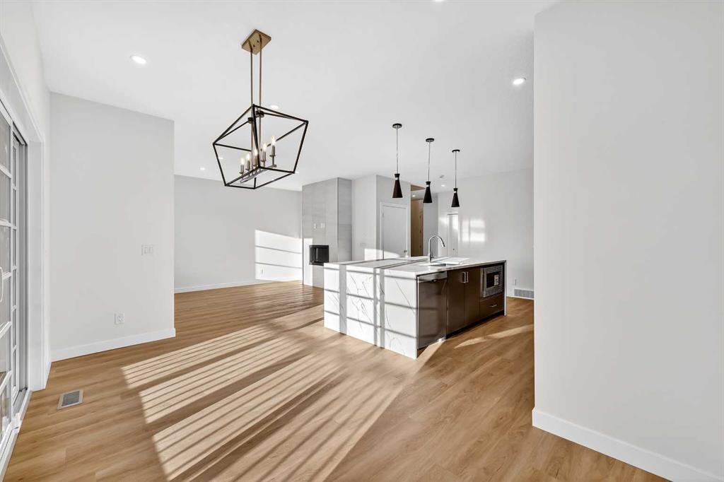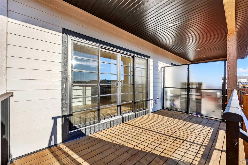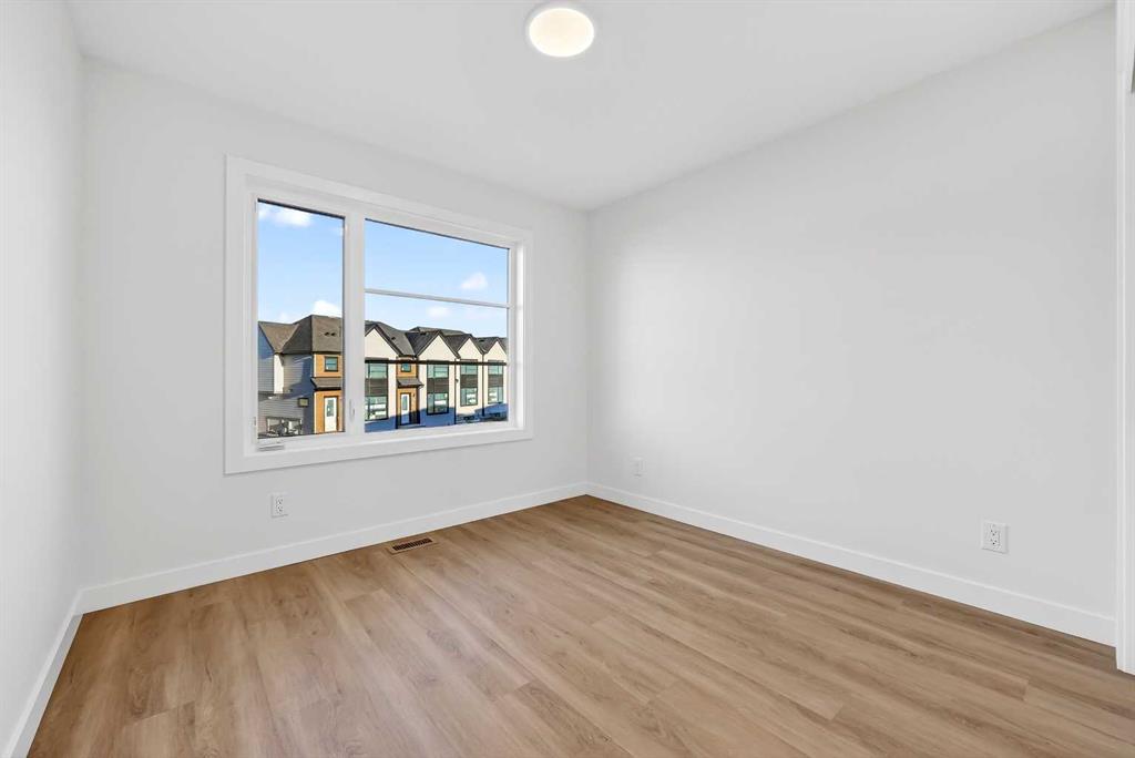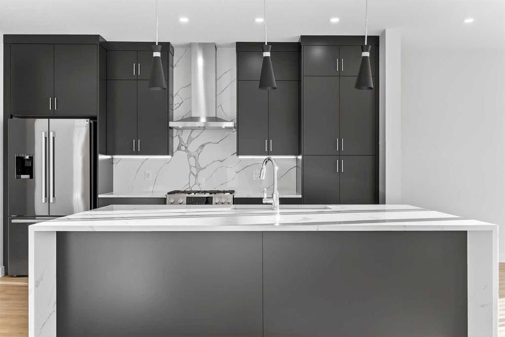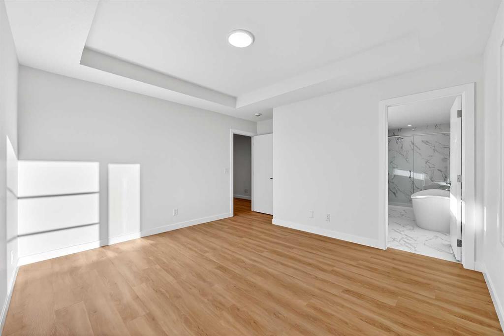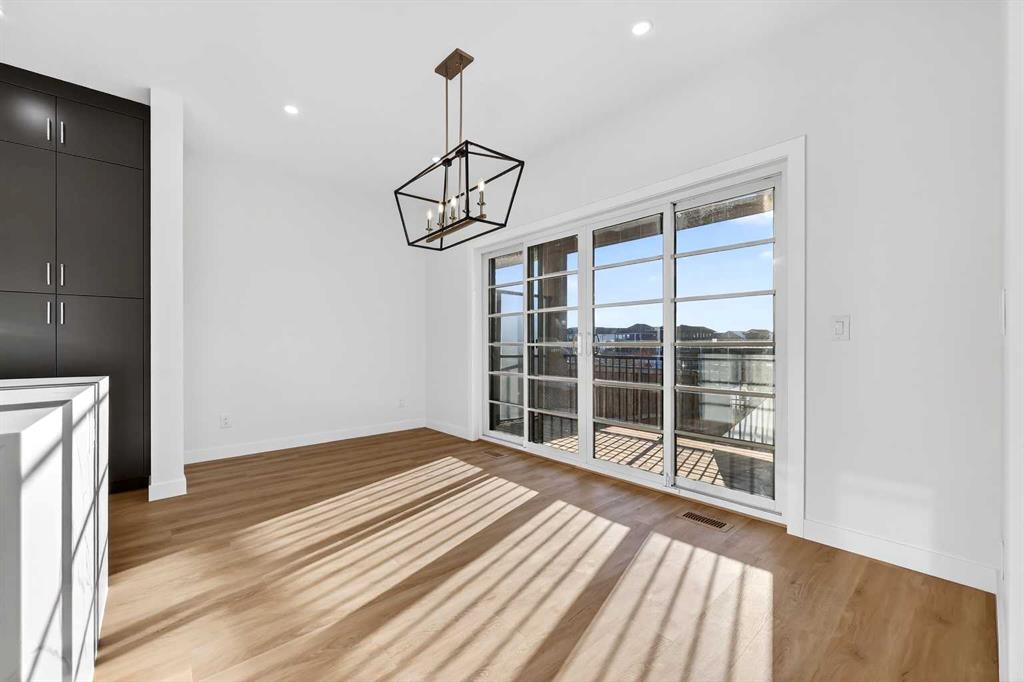 Experience the height of sophisticated living in this highly coveted luxury townhome, where a generous floor plan meets modern comfort and refined finishes. Proudly presented by StreetSide – this thoughtfully designed unit features 3 bedrooms, 2.5 bathrooms, and a front attached double car garage. The heart of the home is a spacious kitchen with a large central island, polished white quartz countertops, upgraded stainless steel appliances including a gas range, and elegant sliding French patio doors that opens to your covered deck area – ideal for both everyday living and entertaining. A cozy fireplace anchors the living room, while luxury vinyl plank flooring flows throughout the main living areas, complemented by gorgeous tile in the entry and bathrooms. The primary ensuite is a private sanctuary, complete with heated tile flooring, double sinks, a freestanding soaker tub, and an oversized tile-and-glass shower delivering spa-inspired comfort at home. The unfinished basement with roughed-in plumbing provides future potential for additional living space tailored to your needs. Professional landscaping and fencing complete your new home. Ideally located in the award-winning community of Harmony, residents enjoy Mickelson National Golf Course, private lake amenities, scenic walking and biking trails, and a wellness-focused lifestyle—just a shorty drive from Calgary city minutes and 45 minutes from the Rocky Mountains, where nature and convenience come together effortlessly