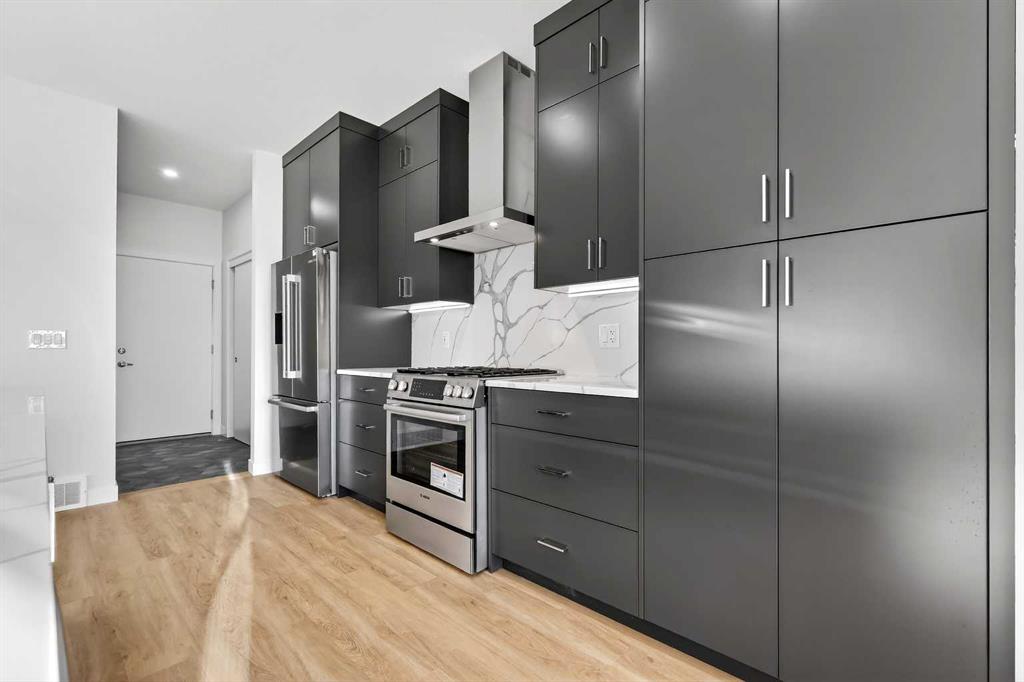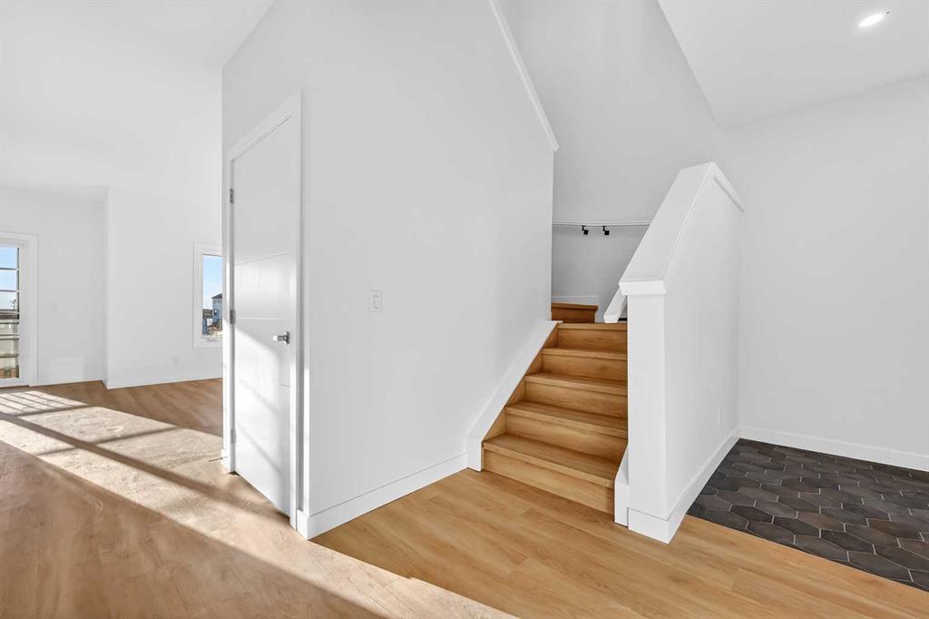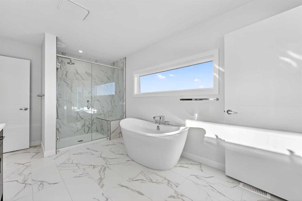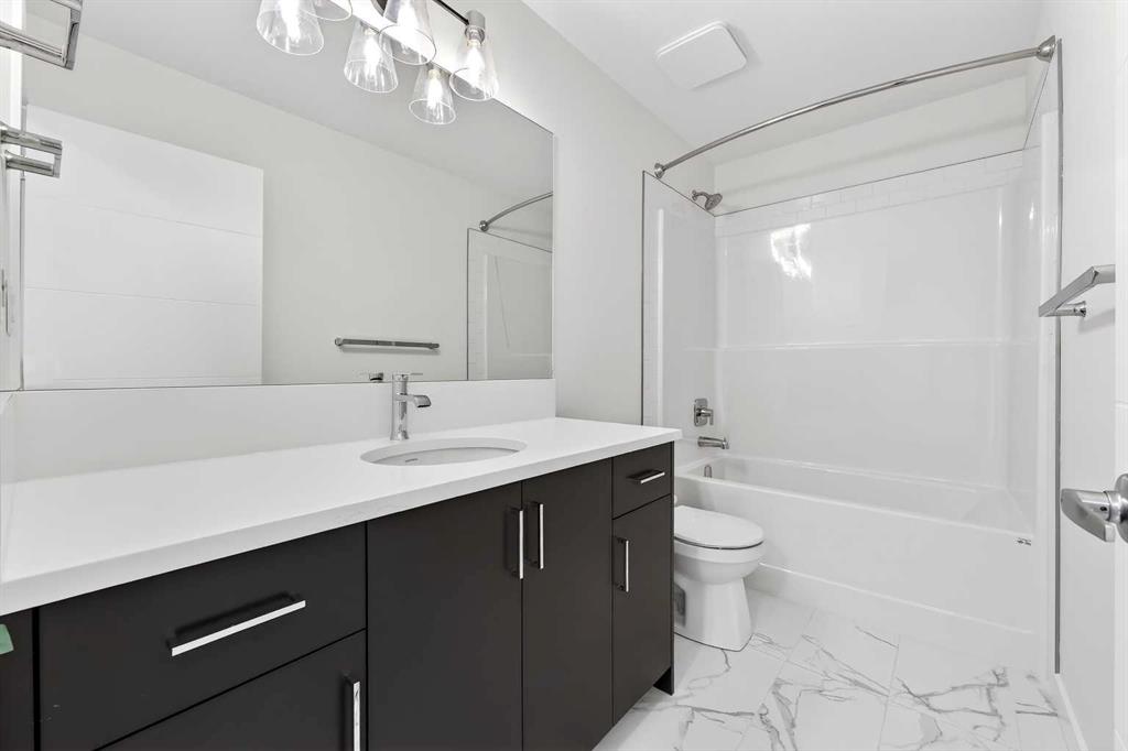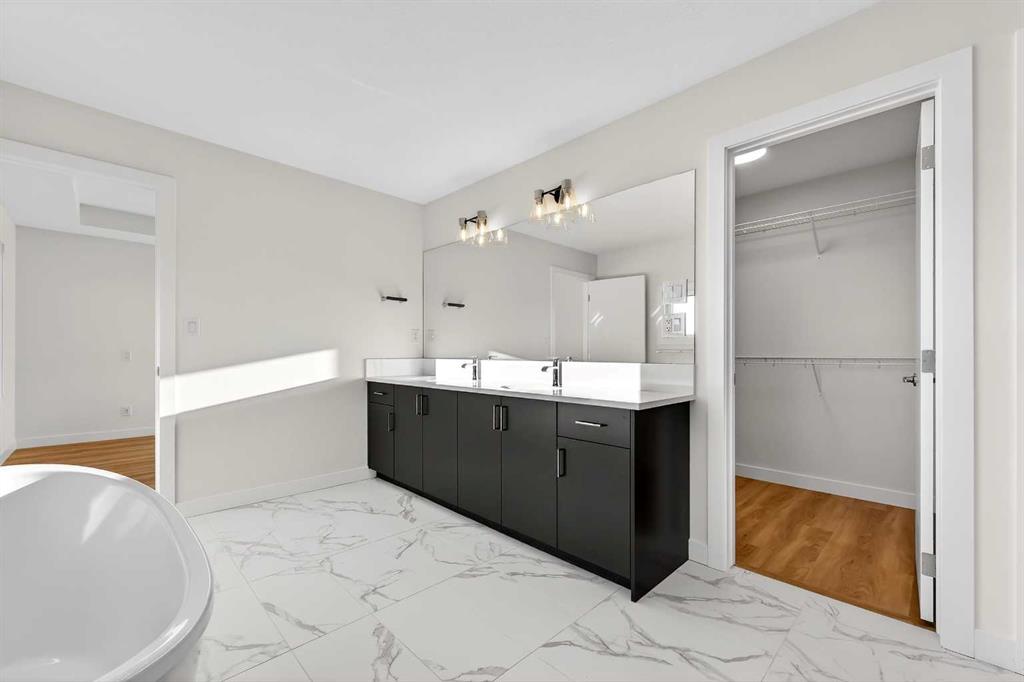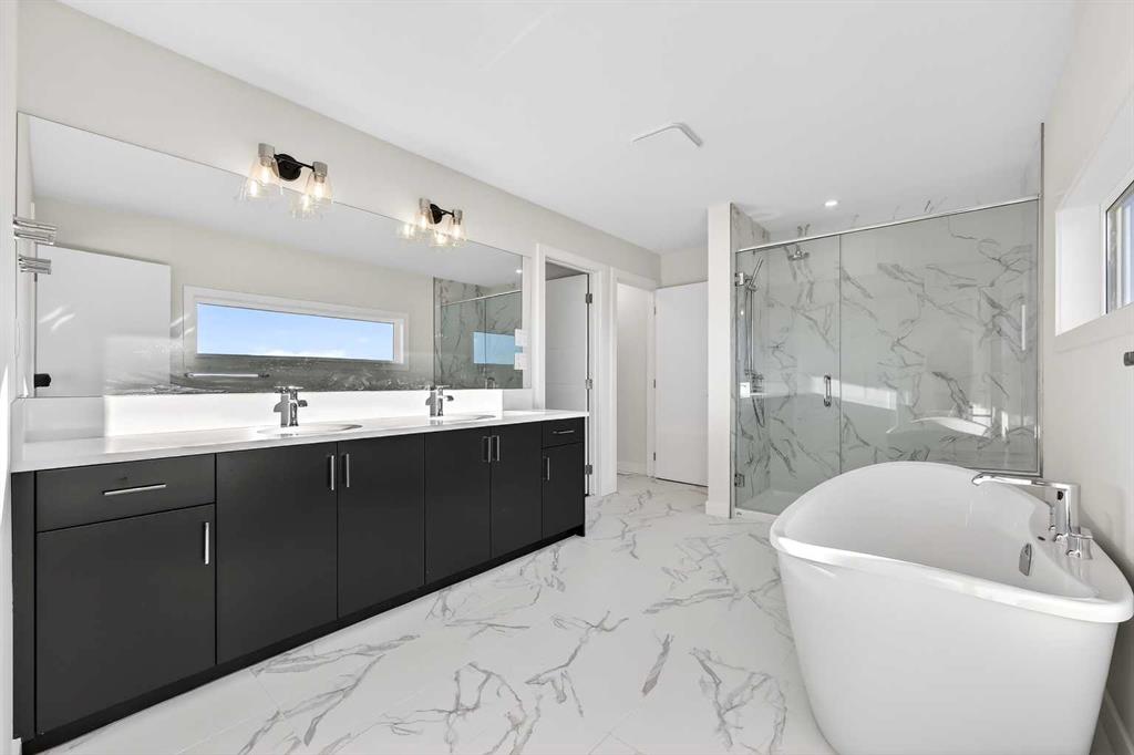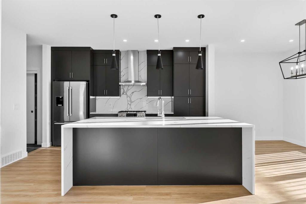 Experience the height of sophisticated living in this highly coveted luxury townhome, where a generous floor plan meets modern comfort and refined finishes. Proudly presented by StreetSide – this thoughtfully designed unit features 3 bedrooms, 2.5 bathrooms, and a front attached double car garage. The heart of the home is a spacious kitchen with a large central island, polished white quartz countertops, upgraded stainless steel appliances including a gas range, and elegant sliding French patio doors that opens to your covered deck area – ideal for both everyday living and entertaining. A cozy fireplace anchors the living room, while luxury vinyl plank flooring flows throughout the main living areas, complemented by gorgeous tile in the entry and bathrooms. The primary ensuite is a private sanctuary, complete with heated tile flooring, double sinks, a freestanding soaker tub, and an oversized tile-and-glass shower delivering spa-inspired comfort at home. The unfinished basement with roughed-in plumbing provides future potential for additional living space tailored to your needs. Professional landscaping and fencing complete your new home. Ideally located in the award-winning community of Harmony, residents enjoy Mickelson National Golf Course, private lake amenities, scenic walking and biking trails, and a wellness-focused lifestyle—just a shorty drive from Calgary city minutes and 45 minutes from the Rocky Mountains, where nature and convenience come together effortlessly