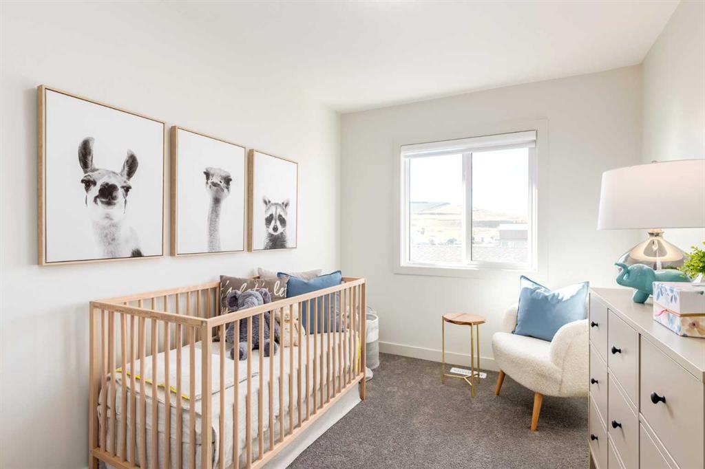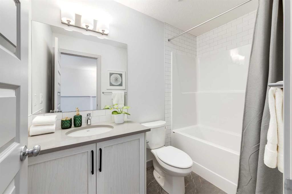 Immediate Possession! Built by Calgary and area builder Alliston at Home, this standout 3- bedroom, 2.5-bath beauty sits in the heart of Crossfield’s sought-after Iron Landing community—just steps from Veterans Peace Park and within walking distance to Crossfield Elementary and W.G. Murdoch Schools. Welcome to your next home—a beautifully designed space where comfort meets style! Step inside and be wowed by the bright, open layout. The living room is full of natural light thanks to large windows and a stunning open-to-above feature. Sleek upgraded railings and durable vinyl plank flooring give the space a fresh, modern vibe that’s easy to maintain. The kitchen is a showstopper—complete with stainless steel Whirlpool appliances, quartz countertops, an integrated kitchen island, and plenty of modern charcoal cabinetry. Whether you’re cooking for the family or entertaining friends, this space is as functional as it is beautiful. The connected dining area flows right out to a large backyard—perfect for summer BBQs and outdoor hangs. Upstairs, you’ll find three bedrooms and a versatile bonus room—ideal for a playroom, office, or chill zone. The spacious primary suite features a walk-in closet and a luxe ensuite with dual sinks, quartz counters, and a three-wall tiled walk-in shower. Two additional bedrooms share a stylish 3-piece bathroom—great for growing families or hosting guests. The unfinished basement is full of potential, with a side entrance, rough-ins for a bathroom, wet bar, and secondary laundry—ideal for a future legal suite (pending town approval). Enjoy sunny days in your south-facing backyard or get your hands dirty in the garden. The front yard landscaping comes with a tree from the developer—just one more thoughtful detail that makes this house special and ready to call home. With a double attached garage for all your parking and storage needs, this home truly has it all. It’s the perfect blend of space, style, and suburban serenity—just ten minutes outside the city. Photos are representative.