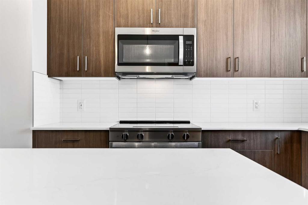 StreetSide proudly presents this highly desired interior-unit townhome that offers a sophisticated blend of expansive living space and elegant modern finishes. Designed with versatility in mind, the residence features four spacious bedrooms—including a convenient lower level bedroom ideal for guests or a home office—and two and a half well appointed bathrooms. The heart of the home is an open-concept main floor that flows seamlessly onto a private balcony, perfect for indoor-outdoor entertaining. Culinary enthusiasts will appreciate the chef-inspired kitchen, which comes standard with modern dark slab-style cabinetry, a full bank of storage drawers, polished white quartz countertops, and premium stainless steel appliances. The interior aesthetic is defined by contemporary durability, featuring luxury vinyl flooring throughout the primary areas and premium 8lb underlay carpet for added comfort on the stairs and upper level. Practicality meets luxury with a dedicated upper-level laundry room and an attached double car garage. Situated in the community of Rangeview, Calgary’s premier garden-to-table neighborhood, residents enjoy a unique village-like serenity paired with urban vibrancy. The development is centered around a lush courtyard garden and provides unparalleled connectivity to community greenhouses, pathways, and local markets. With immediate proximity to major transportation routes, schools, and parks, this home offers the perfect balance of comfort and convenience.