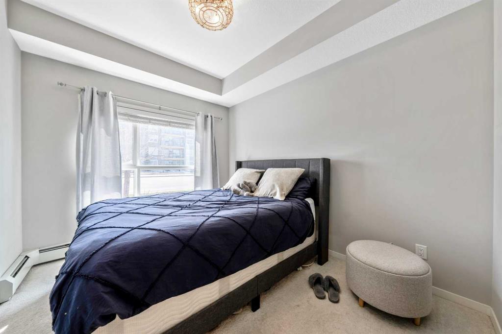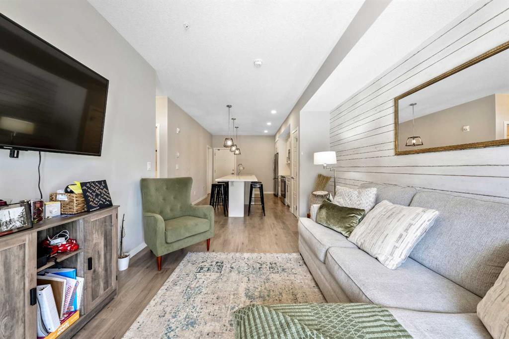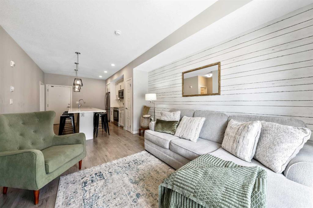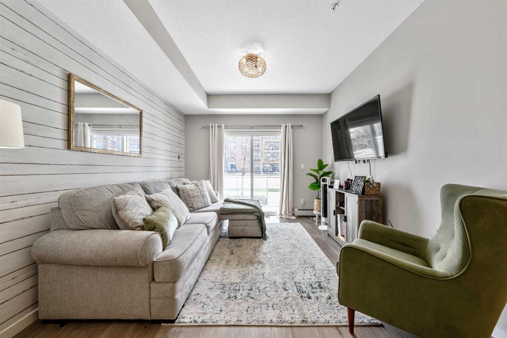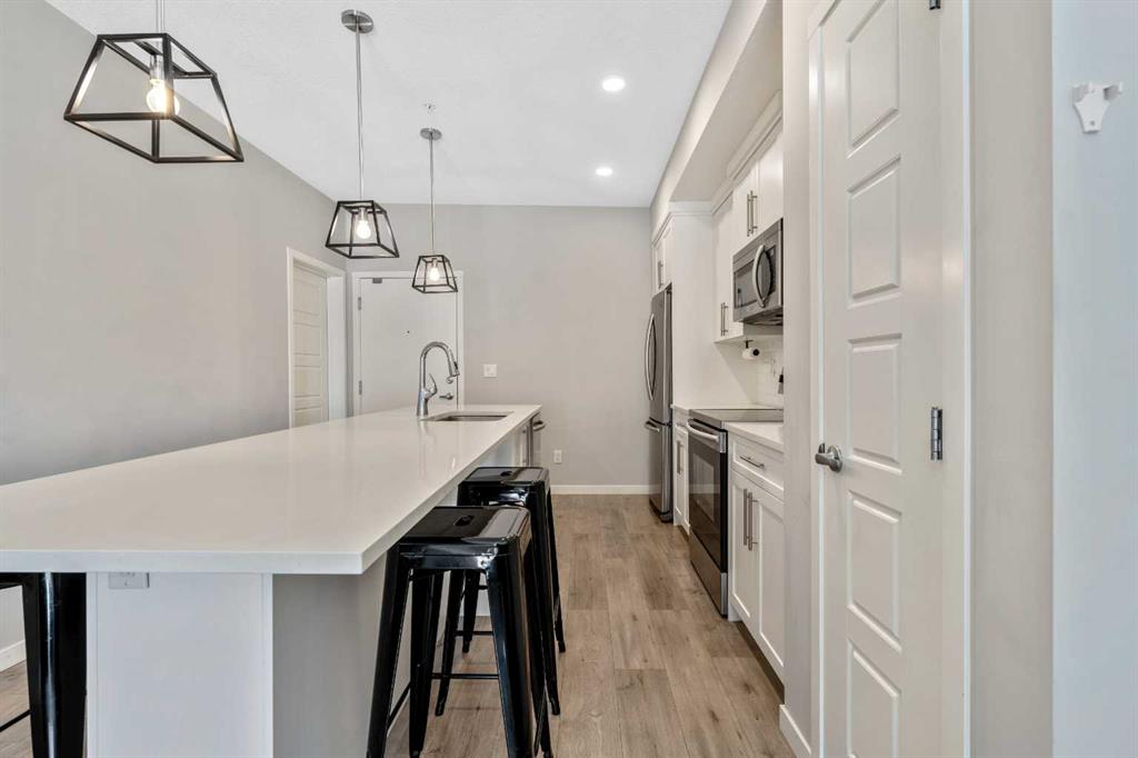 Welcome to this beautifully maintained GROUND-FLOOR apartment in the vibrant and highly walkable community of SETON. Offering a bright and functional 1 BEDROOM, 1 BATHROOM layout, this home is a fantastic option for first-time buyers, downsizers, investors, or anyone looking for low-maintenance living in one of Calgary’s most exciting southeast communities. Inside, you’ll appreciate the modern open-concept design featuring VINYL PLANK FLOORING, stylish lighting, QUARTZ COUNTERTOPS, stainless steel appliances, a subway tile backsplash, and a large kitchen island with seating, creating an inviting space for everyday living and entertaining. The living room is comfortable and well laid out, with sliding patio doors that bring in natural light and provide direct access to your private ground-floor patio.
