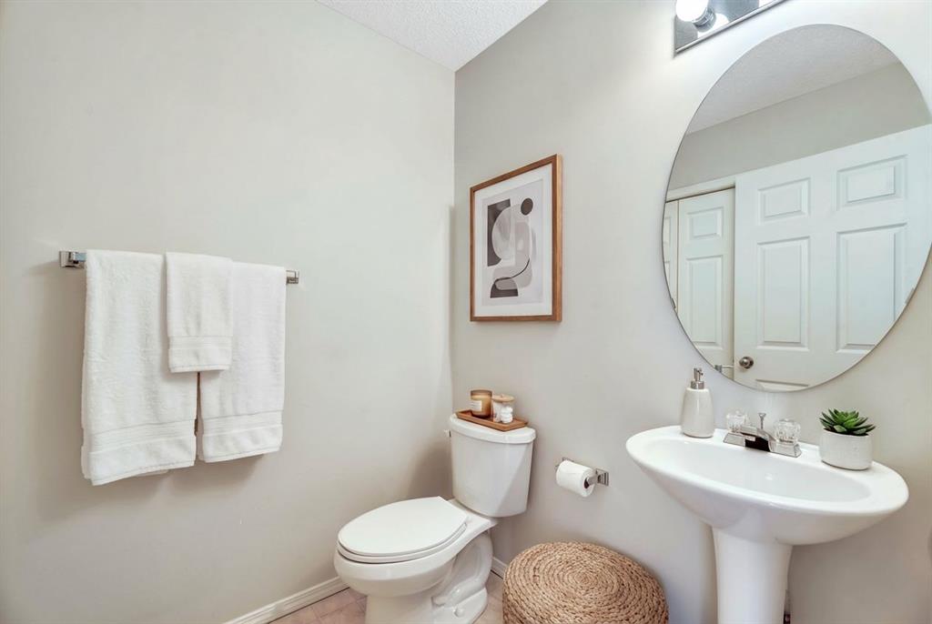 Here’s your chance to live in the highly sought after Northwest lake community of Arbour Lake. This terrific 3 bedroom townhome is located in Arbour Lake Landing and is walking distance to schools, parks, playgrounds and of course the lake where you can enjoy swimming, fishing and boating in the summer and ice skating, curling and ice fishing in the winter. The spacious covered front porch gives a welcoming first impression. There’s plenty of room to add some seating to create a cozy space where you’ll love to hang out. Inside you’ll notice an abundance of natural light from the large bay window in the spacious living area. A nice private dining area is conveniently located between the living room and the kitchen. The bright and sunny kitchen has lots of room to add seating or maybe a portable kitchen island for extra storage and work space. A 2 pc powder room and laundry round out this main level. Upstairs you’ll find 3 bedrooms and a full bath with tub. The primary has double closets and private access to the bathroom. The unspoiled lower level provides opportunity to expand your living space as needed. Recent updates include a new back door and new flooring on the main floor. You’ll also enjoy a small deck off of the kitchen that is perfect for your grill and a bit of seating. This unit backs onto green space where your kids can play plus there are 2 playgrounds in the complex for residents to use. Common area maintenance, landscaping and snow removal are included in this well maintained complex and you’ll love the convenience of assigned parking directly in front of the unit as well as plenty of visitor parking. This desirable location offers easy access to Crowfoot shopping centre, The YMCA, restaurants, public transit and more. Whether this is your first home or just a step in your home ownership journey you’re going to live living in Arbour Lake.
