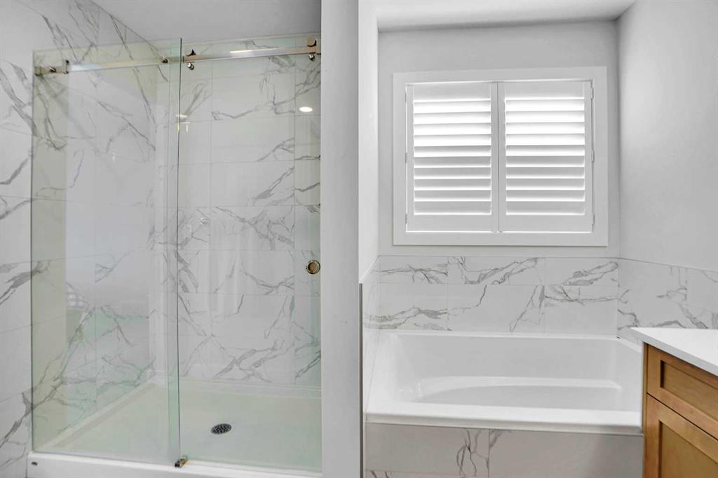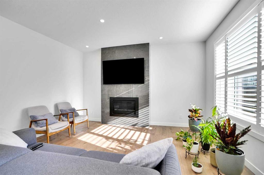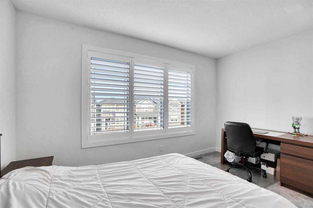 The main floor features a bright Open-concept layout designed for both everyday living and entertaining. The upgraded kitchen showcases premium appliances, ample cabinetry, and seamless flow into the dining and living areas. Large windows fill the space with natural light, while luxury vinyl plank flooring throughout the main level enhances durability and complements the modern aesthetic. A convenient half bathroom is positioned for guests and daily use, and elegant wooden shutter blinds add both sophistication and privacy. Upstairs, you’ll find three spacious bedrooms centered around a versatile bonus room ideal as a family lounge, media area, or home office. The primary bedroom serves as a private retreat, complete with a walk-in closet and a beautifully appointed ensuite featuring a walk-in shower, soaker tub, elegant vanity, and contemporary finishes. Two additional bedrooms are serviced by a full bathroom, and the upper-level laundry adds everyday practicality.