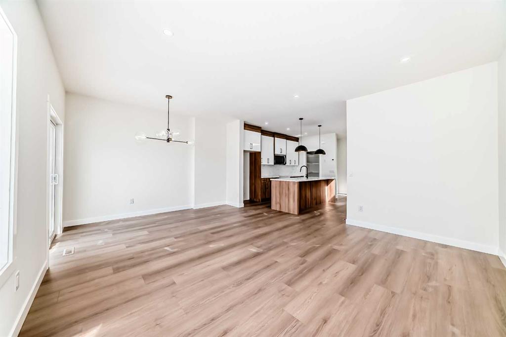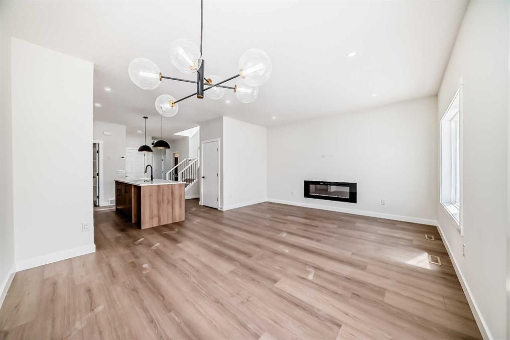 Step inside to a bright and open-concept main floor featuring large windows that fill the space with natural light. The contemporary kitchen is beautifully appointed with quartz countertops, a built-in microwave, and a spacious island — perfect for everyday living and entertaining. The kitchen flows seamlessly into the dining and living areas, creating a warm and inviting atmosphere.