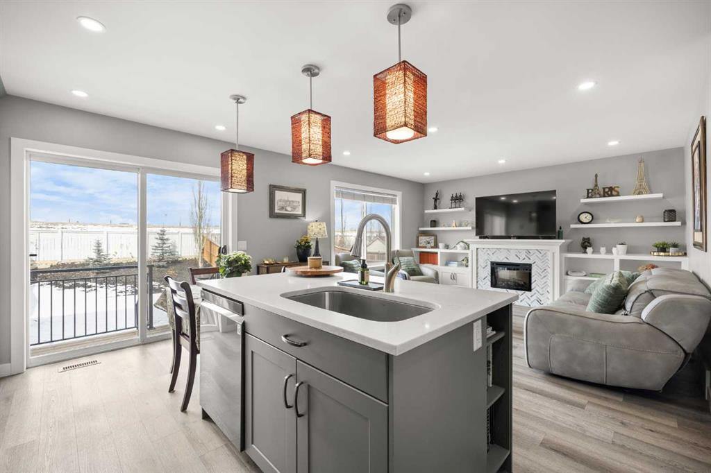Step inside and be greeted by a soaring 2-storey foyer with durable vinyl plank flooring throughout the entire home, creating a fresh, contemporary feel. Walk into the heart of the home, where you’ll discover a stunning open-concept living space flooded with natural light from expansive windows. The bright and spacious Living room is beautifully anchored by a stylish tiled gas fireplace with elegant built-in shelving, creating the perfect backdrop for relaxation and entertaining. The completely remodeled Kitchen showcases sleek cabinetry with a centre island featuring stunning quartz countertops and built in table for your day to day dining, designer pendant lighting, stainless steel appliances (professional series Fridge just 2 years old), and backsplash tile—a harmonious blend of form and function. Patio door to a full-width two-tiered cedar wood deck with aluminum railing, a good sized back yard that was nicely landsacped with trees —perfect for outdoor entertaining and summer meals. A Laundry room with storage space and powder room complete the main level.