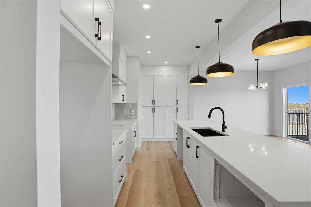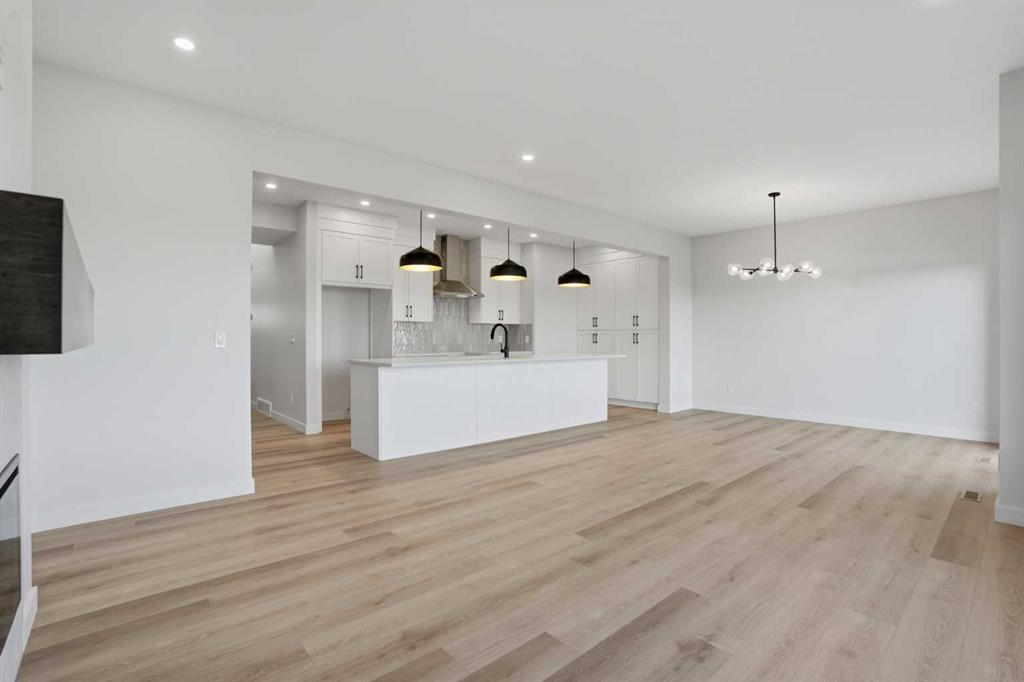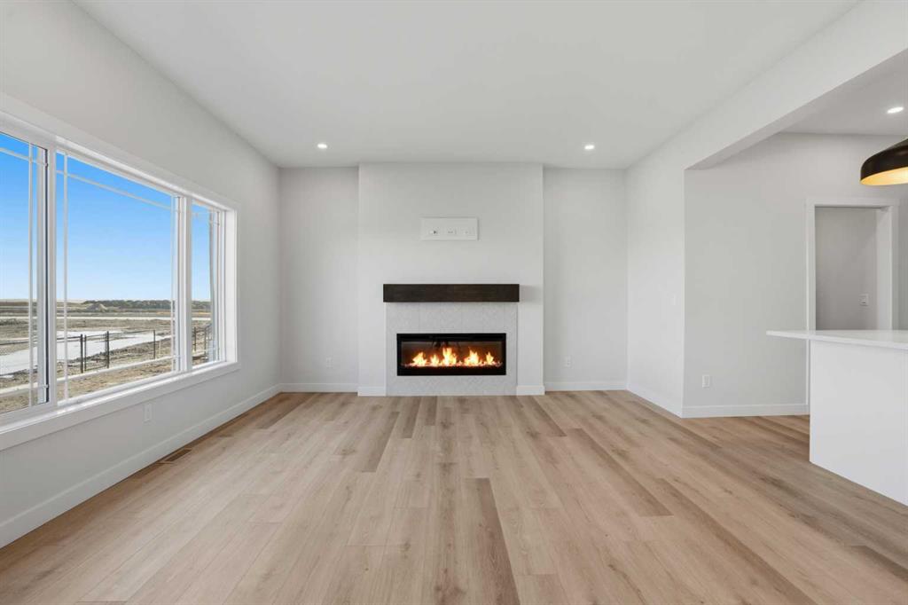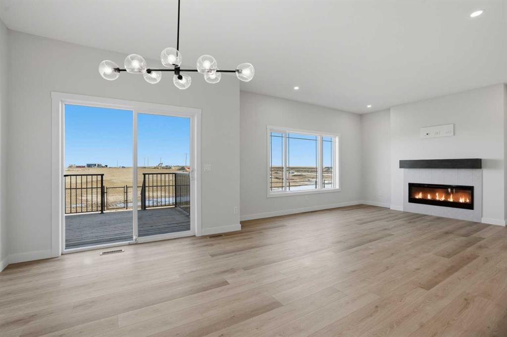 Brand New Home Built by Genesis Builders Group | Backing onto Greenspace | No Neighbours Behind | Stunning Finishes | 2,185 SqFt | Main Level Bed & 4pc Bath | Chef’s Kitchen | Spice Kitchen | Stainless Steel Appliances | Full Height Upper Cabinets | Quartz Countertops | Trendy Backsplash | Kitchen Island | Barstool Seating Area | Open Floor Plan | Recessed Lighting | Large Windows | High Ceilings | Electric Fireplace | 4 Upper Level Bedrooms (2 Primary) | 3 Upper Level Bathrooms | Walk-in Laundry Room | Unfinished Basement | East Facing Backyard | Deck | Front Attached Double Garage | Driveway | Incredible Location. Welcome home to your stunning brand new home built by Genesis Builders Group. This spacious 2-storey family home boasts 2,185 SqFt throughout the main and upper levels with an additional 871 SqFt in the unfinished basement. Full of top of the line finishes, this home is head to toe of sleek & modern design. Open the front door to a foyer with high ceilings and closet storage. Step into the home to your main level bedroom and 4pc bath which is ideal for a multi-generational family or for overnight guests! The open floor plan and high ceilings emphasize the vast size of the home. The kitchen is outfitted with sparkling quartz countertops, stainless steel appliances, full height cabinets, a trendy backsplash and a centre island with barstool seating. Keep this kitchen sparkling and use the spice kitchen which has a second stove & range hood and plenty of cabinet storage! The dining room is spacious and bright with morning light. The sliding glass doors lead to the rear deck with a BBQ gas line making outdoor cooking and dining easy! The living room is centred with an electric fireplace and TV ready wall above. Head up the staircase with a beautiful Iron and Spindle railing. The upper level has 4 additional bedrooms- TWO primary! The first primary overlooks the greenspace at the rear of the home. This bedroom has a 5pc ensuite and deep walk-in closet. The ensuite has dual vanities, a deep soaking tub, walk-in shower and private washing closet. The 2nd primary has a 4pc ensuite bath with a tub/shower combo. Bedrooms 4 & 5 are both a great size and share the main 4pc bath. The upper level laundry room is every home owner’s dream as its located near majority of the bedrooms. Downstairs, the unfinished basement is a blank canvas giving you the opportunity for a custom space that fits your family’s needs. The backyard is something to enjoy all summer long. With no neighbours behind, the greenspace is practically an extension of your yard for the kids to play. The Smart Home package provided to you is an added bonus to your convenience. The front attached double garage and driveway provide you with parking for 4 vehicles at any time. Located just 20 minutes from the heart of Calgary – the Clearwater community resides in the beautiful city of Chestermere. Hurry and book your showing today!