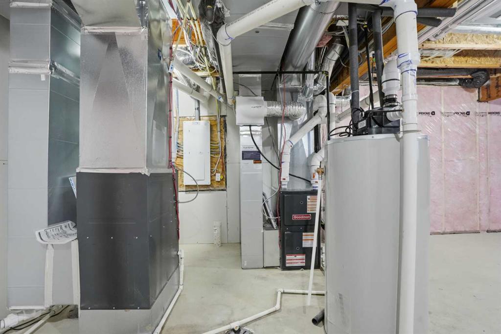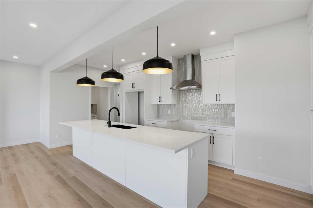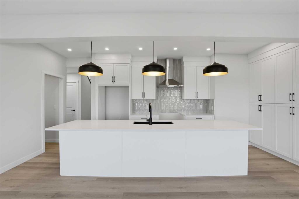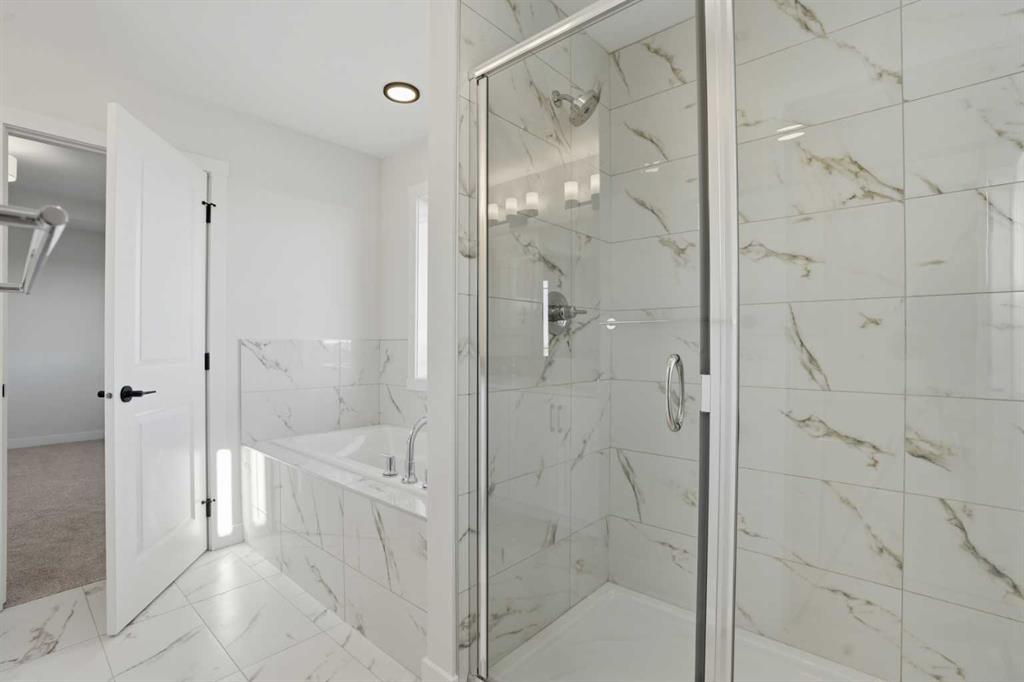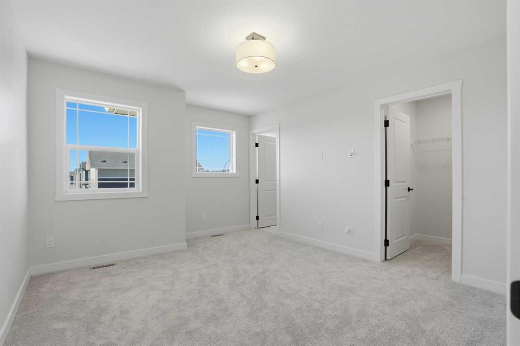 Brand New Home Built by Genesis Builders Group | Backing onto Greenspace | No Neighbours Behind | Stunning Finishes | 2,185 SqFt | Main Level Bed & 4pc Bath | Chef’s Kitchen | Spice Kitchen | Stainless Steel Appliances | Full Height Upper Cabinets | Quartz Countertops | Trendy Backsplash | Kitchen Island | Barstool Seating Area | Open Floor Plan | Recessed Lighting | Large Windows | High Ceilings | Electric Fireplace | 4 Upper Level Bedrooms (2 Primary) | 3 Upper Level Bathrooms | Walk-in Laundry Room | Unfinished Basement | East Facing Backyard | Deck | Front Attached Double Garage | Driveway | Incredible Location. Welcome home to your stunning brand new home built by Genesis Builders Group. This spacious 2-storey family home boasts 2,185 SqFt throughout the main and upper levels with an additional 871 SqFt in the unfinished basement. Full of top of the line finishes, this home is head to toe of sleek & modern design. Open the front door to a foyer with high ceilings and closet storage. Step into the home to your main level bedroom and 4pc bath which is ideal for a multi-generational family or for overnight guests! The open floor plan and high ceilings emphasize the vast size of the home. The kitchen is outfitted with sparkling quartz countertops, stainless steel appliances, full height cabinets, a trendy backsplash and a centre island with barstool seating. Keep this kitchen sparkling and use the spice kitchen which has a second stove & range hood and plenty of cabinet storage! The dining room is spacious and bright with morning light. The sliding glass doors lead to the rear deck with a BBQ gas line making outdoor cooking and dining easy! The living room is centred with an electric fireplace and TV ready wall above. Head up the staircase with a beautiful Iron and Spindle railing. The upper level has 4 additional bedrooms- TWO primary! The first primary overlooks the greenspace at the rear of the home. This bedroom has a 5pc ensuite and deep walk-in closet. The ensuite has dual vanities, a deep soaking tub, walk-in shower and private washing closet. The 2nd primary has a 4pc ensuite bath with a tub/shower combo. Bedrooms 4 & 5 are both a great size and share the main 4pc bath. The upper level laundry room is every home owner’s dream as its located near majority of the bedrooms. Downstairs, the unfinished basement is a blank canvas giving you the opportunity for a custom space that fits your family’s needs. The backyard is something to enjoy all summer long. With no neighbours behind, the greenspace is practically an extension of your yard for the kids to play. The Smart Home package provided to you is an added bonus to your convenience. The front attached double garage and driveway provide you with parking for 4 vehicles at any time. Located just 20 minutes from the heart of Calgary – the Clearwater community resides in the beautiful city of Chestermere. Hurry and book your showing today!
