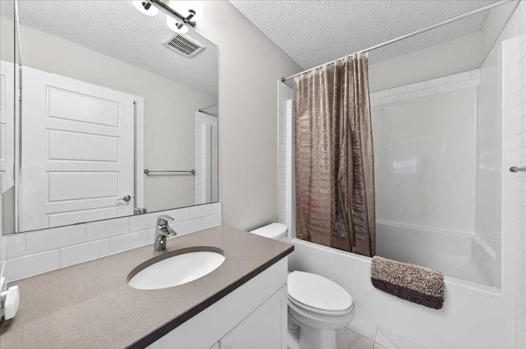 Upstairs, a large and spacious PRIMARY BEDROOM WITH A DEDICATED, OVERSIZED ENSUITE, two secondary bedrooms, and laundry placed where it actually gets used. The ensuite itself is finished with QUARTZ COUNTERTOPS, a GLASS SHOWER, and a DUAL VANITY — UPGRADED, practical, and done right.