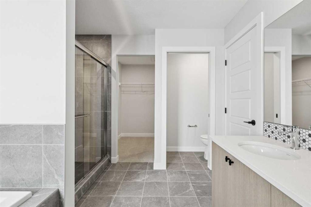 Trico Homes, the heart of home building. Find your ideal home in your favourite community in Calgary & Surrounding Area. The Concord offers 2,305 sq ft of open-concept living, featuring a main-floor bedroom with full bath and a 2-bedroom legal suite for extended family. Upstairs, three secondary bedrooms each include a walk-in closet, along with a shared bath, laundry, and a luxurious primary bedroom with a walk-in closet and 5-piece ensuite. A central bonus room provides space for entertainment and family time. Upgrades include engineered hardwood, 9-ft ceilings, 42-inch upper cabinets, LED pot lights, knockdown ceilings, and modern fixtures. Located in Heartwood, a vibrant southeast Calgary community with tree-lined streets, walking paths, and future parks and amenities. Photos are representative.