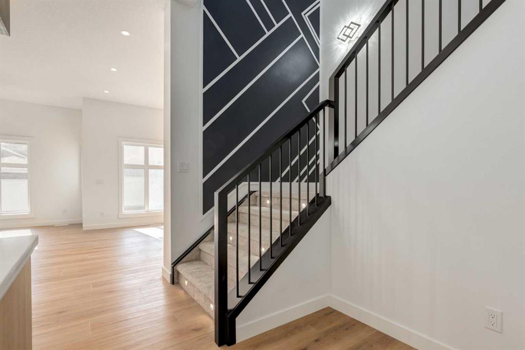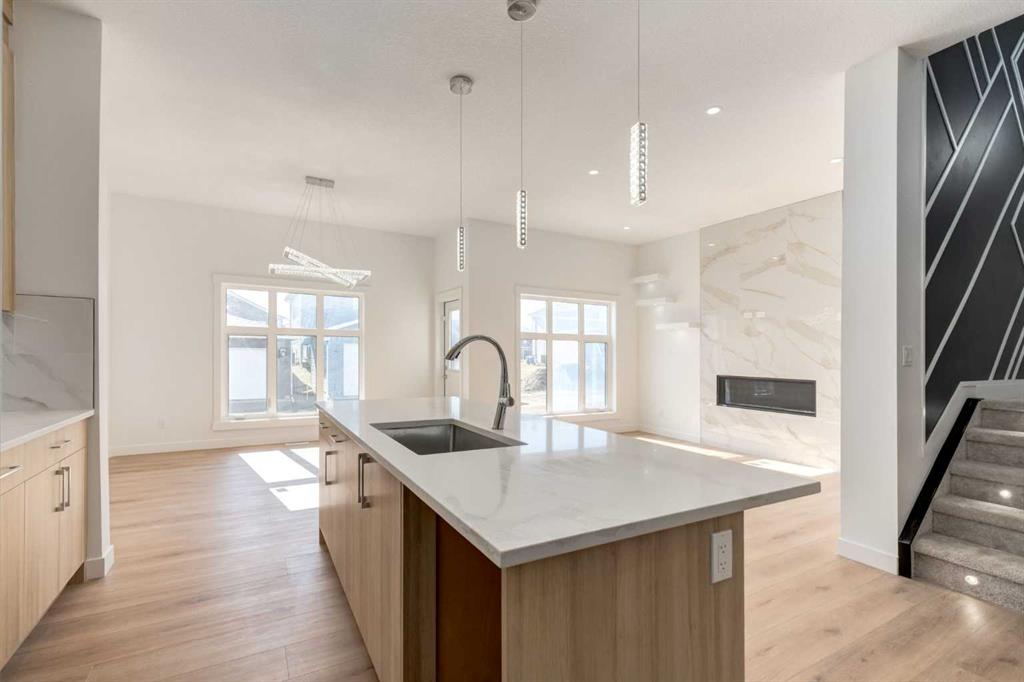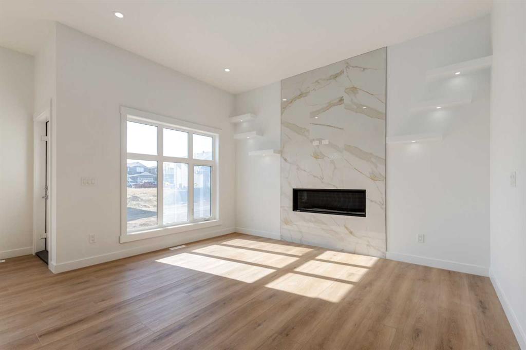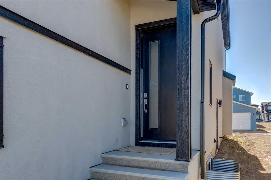 Welcome to our custom Exquisite Home in the tranquil city of Crossfield. Just 9 minutes north of Airdrie, 25 minutes from Calgary and 3 minutes off highway 2. This almost 2000sqft UPGRADED home consists of 3 bedrooms, 2.5 bathrooms with bespoke finishings such as refined maple accents, upgraded plywood cabinet boxes, black exterior dual pane windows, high end lighting, natural montigo gas fireplace feature, quartz countertops and wide plank Lvp flooring. Full finishes can be provided upon request. Additional features include a 10FT ceiling on the main, stucco and stone exterior, separate entrance, completed landscaping, basement roughed in, insulated/drywalled attached garage. Spend sunny afternoons in the towns parks and playgrounds such as Veterans peace park or checkout the Crossfield Farmers market, the annual demolition Derby, the Rodeo grounds. This rapidly growing town also has amenities such K-12 schools such as Crossfield elementary school and W.G. Murdoch School, which are just short walk away! Find your forever home in this beautiful serene town with connectivity and affordable prices. You will wonder why you didn’t move sooner! Home is estimated for completion in Summer 2025.