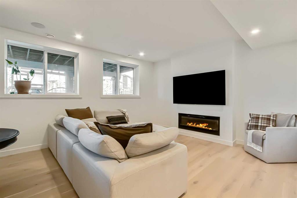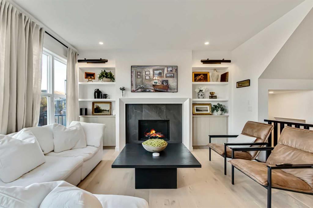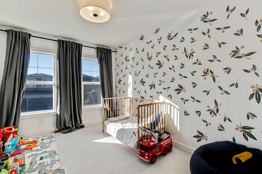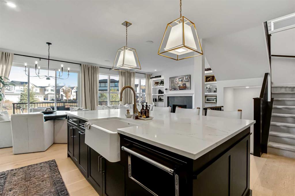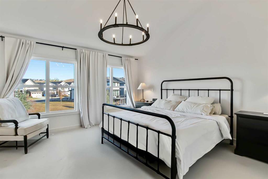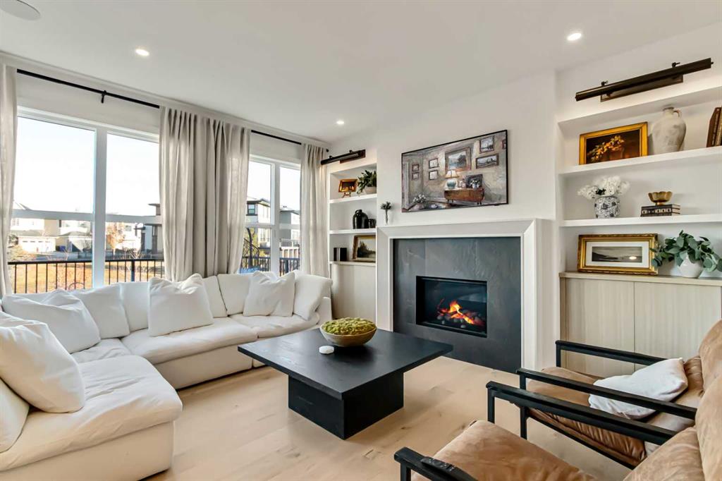 Welcome to this stunning, fully upgraded 4 bedroom, 3.5 bath home in the highly sought after community of Cranston’s Riverstone. Perfectly positioned backing onto green space and just steps from the river, walking paths and the pond, this 2,402 sq.ft home blends luxury finishes with thoughtful design. The main floor offers an elongated entryway leading to an open concept living area flooded with natural light, a beautiful gas fireplace surrounded by custom built ins, a gourmet kitchen with quartz counters and backsplash, upgraded KitchenAid black stainless steel appliances, gas range with pot filler, custom hood fan, farmhouse sink, dining room, large walk in pantry and designer lighting. A custom mudroom with built in lockers adds everyday convenience. Upstairs features three bedrooms and two full baths, including a secondary bath with double vanities – perfect for sharing. The primary bedroom impresses with vaulted ceilings, a spa like ensuite, complete with a freestanding tub, rain shower with marble and zellige style tile, separate vanities and a large walk in closet connected to a convenient laundry room. A spacious vaulted bonus room completes the upper level. Downstairs, the fully finished basement includes a fourth bedroom, office space, full bath, wet bar with quartz counters/sconces and a cozy living area with an electric fireplace – ideal for entertaining. With over 100k in premium upgrades, including heated floors, custom cabinetry, built in speakers, smart lighting and rough ins for A/C and central vac, this home offers modern comfort and timeless style in a beautiful natural setting.