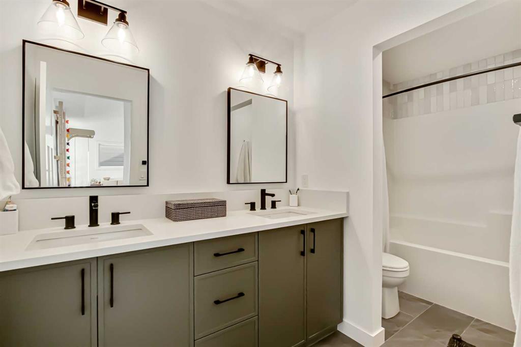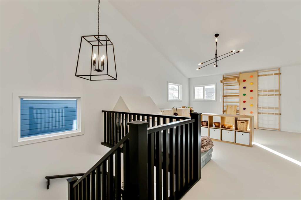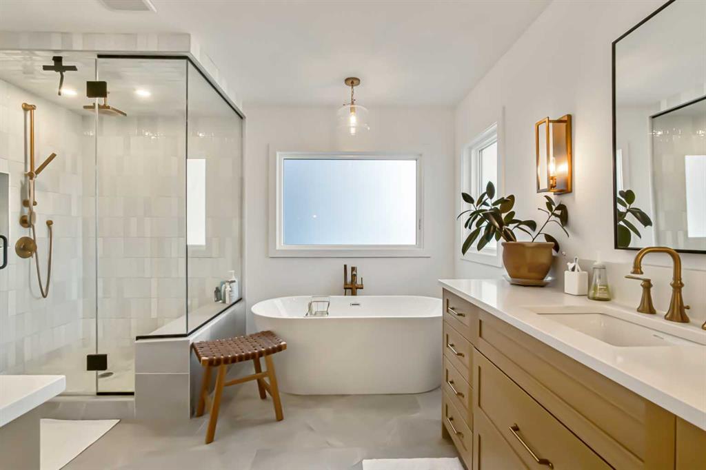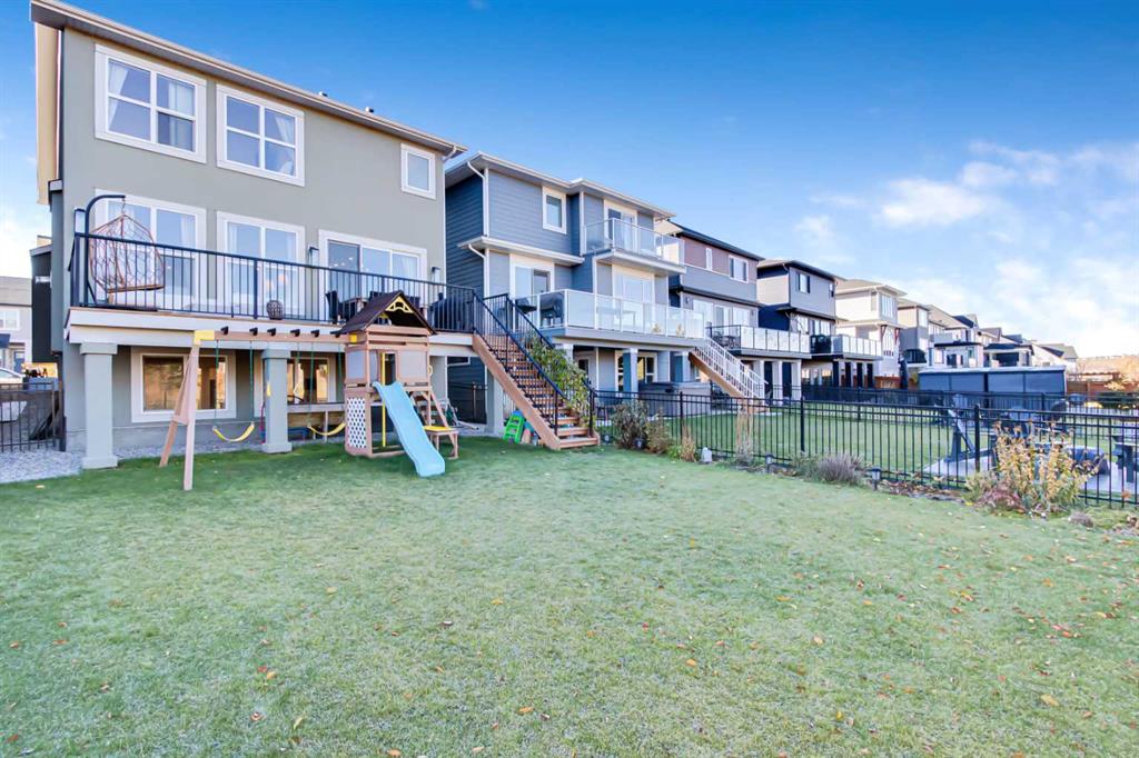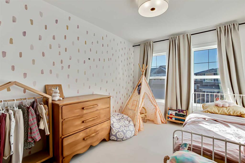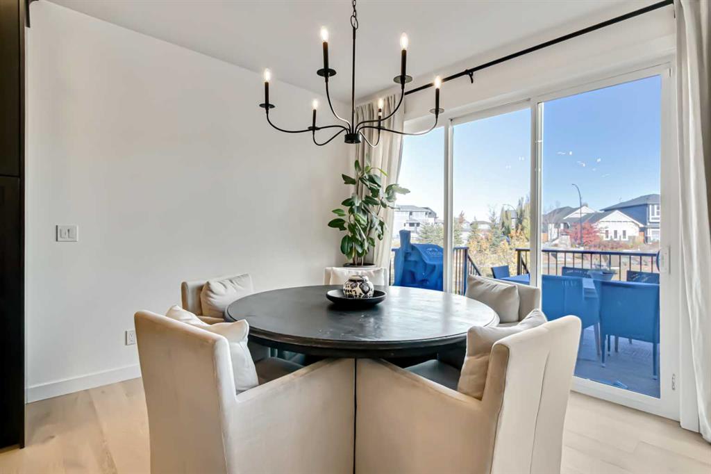 Welcome to this stunning, fully upgraded 4 bedroom, 3.5 bath home in the highly sought after community of Cranston’s Riverstone. Perfectly positioned backing onto green space and just steps from the river, walking paths and the pond, this 2,402 sq.ft home blends luxury finishes with thoughtful design. The main floor offers an elongated entryway leading to an open concept living area flooded with natural light, a beautiful gas fireplace surrounded by custom built ins, a gourmet kitchen with quartz counters and backsplash, upgraded KitchenAid black stainless steel appliances, gas range with pot filler, custom hood fan, farmhouse sink, dining room, large walk in pantry and designer lighting. A custom mudroom with built in lockers adds everyday convenience. Upstairs features three bedrooms and two full baths, including a secondary bath with double vanities – perfect for sharing. The primary bedroom impresses with vaulted ceilings, a spa like ensuite, complete with a freestanding tub, rain shower with marble and zellige style tile, separate vanities and a large walk in closet connected to a convenient laundry room. A spacious vaulted bonus room completes the upper level. Downstairs, the fully finished basement includes a fourth bedroom, office space, full bath, wet bar with quartz counters/sconces and a cozy living area with an electric fireplace – ideal for entertaining. With over 100k in premium upgrades, including heated floors, custom cabinetry, built in speakers, smart lighting and rough ins for A/C and central vac, this home offers modern comfort and timeless style in a beautiful natural setting.