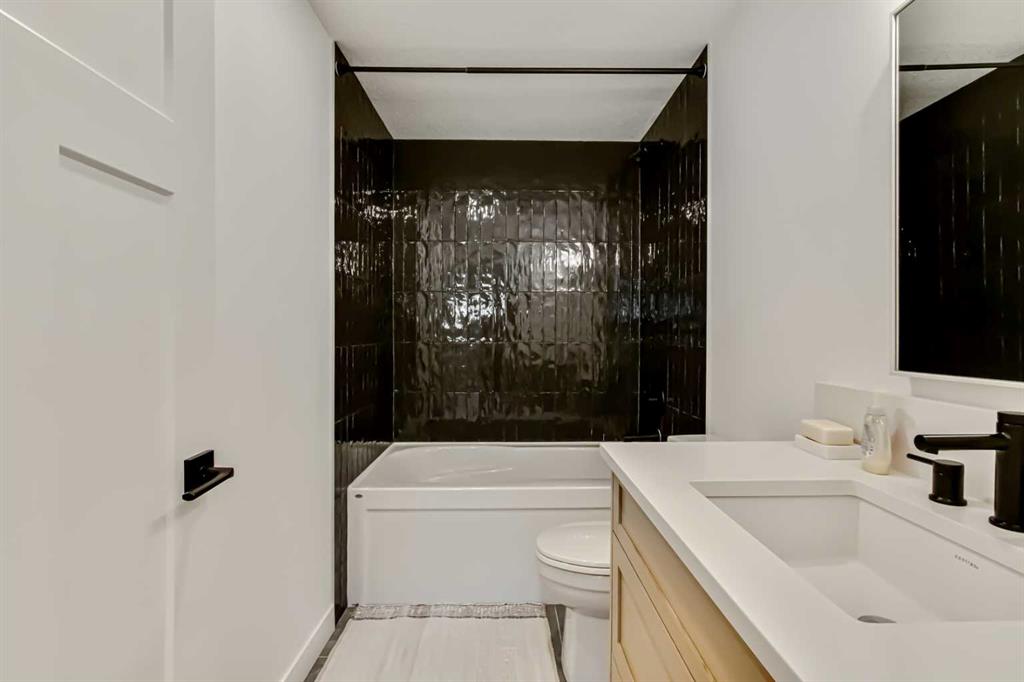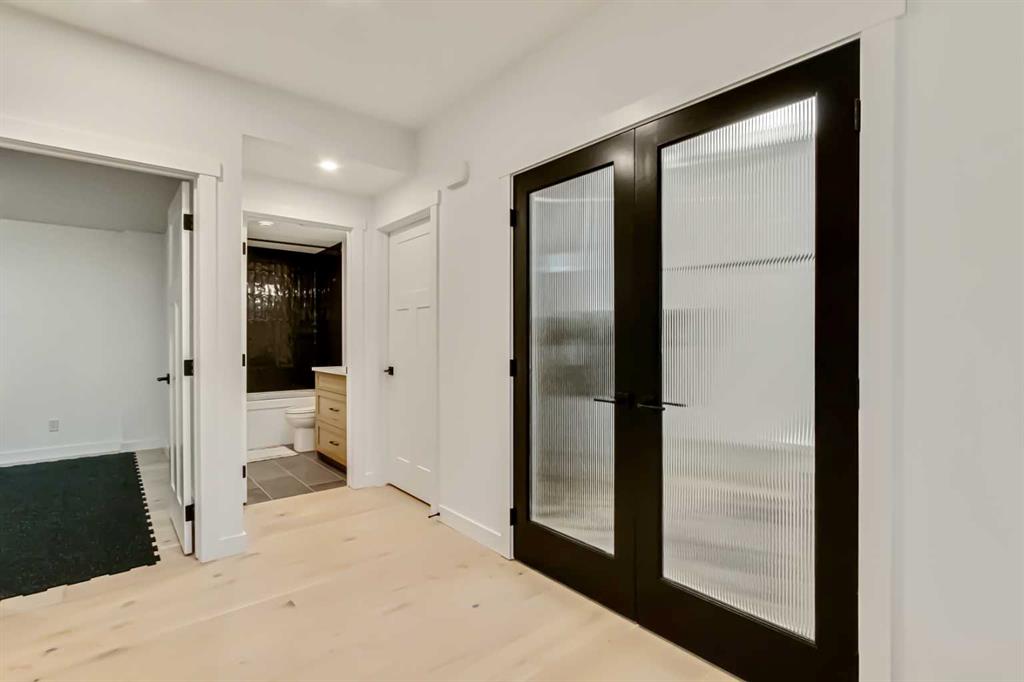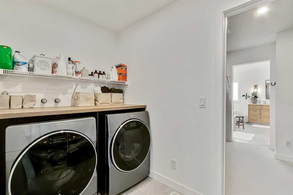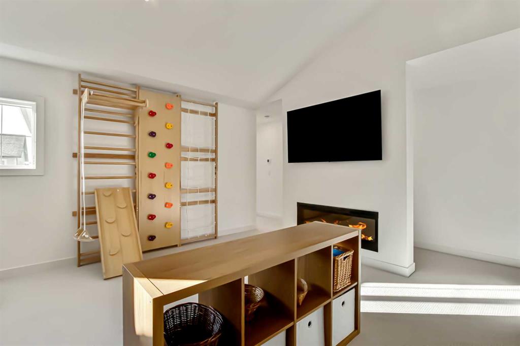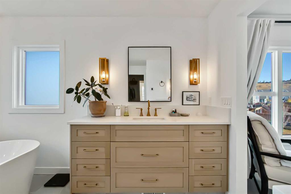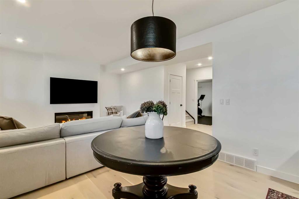 Welcome to this stunning, fully upgraded 4 bedroom, 3.5 bath home in the highly sought after community of Cranston’s Riverstone. Perfectly positioned backing onto green space and just steps from the river, walking paths and the pond, this 2,402 sq.ft home blends luxury finishes with thoughtful design. The main floor offers an elongated entryway leading to an open concept living area flooded with natural light, a beautiful gas fireplace surrounded by custom built ins, a gourmet kitchen with quartz counters and backsplash, upgraded KitchenAid black stainless steel appliances, gas range with pot filler, custom hood fan, farmhouse sink, dining room, large walk in pantry and designer lighting. A custom mudroom with built in lockers adds everyday convenience. Upstairs features three bedrooms and two full baths, including a secondary bath with double vanities – perfect for sharing. The primary bedroom impresses with vaulted ceilings, a spa like ensuite, complete with a freestanding tub, rain shower with marble and zellige style tile, separate vanities and a large walk in closet connected to a convenient laundry room. A spacious vaulted bonus room completes the upper level. Downstairs, the fully finished basement includes a fourth bedroom, office space, full bath, wet bar with quartz counters/sconces and a cozy living area with an electric fireplace – ideal for entertaining. With over 100k in premium upgrades, including heated floors, custom cabinetry, built in speakers, smart lighting and rough ins for A/C and central vac, this home offers modern comfort and timeless style in a beautiful natural setting.