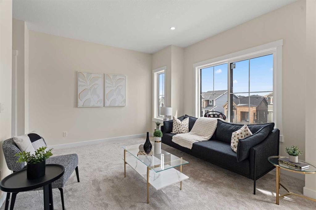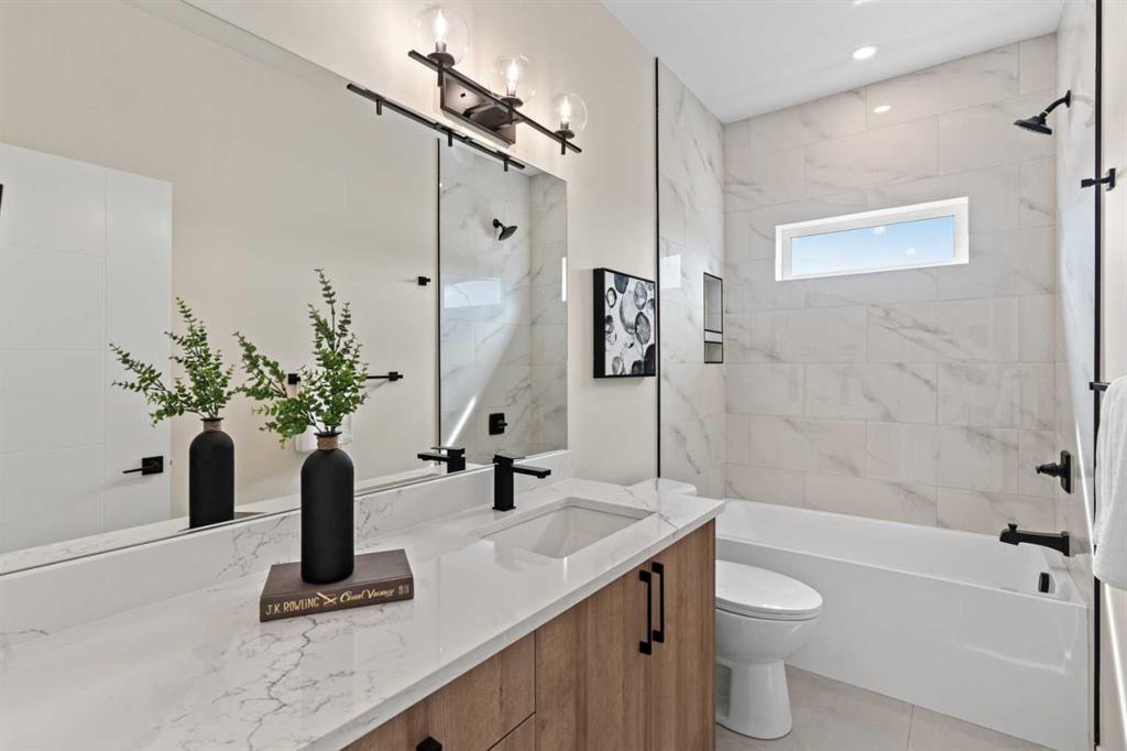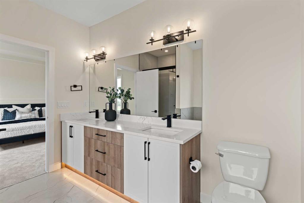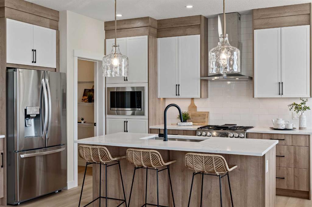 Welcome to our latest Exquisite SHOWHOME in the town of Crossfield. Just 10 minutes north of Airdrie, 25 minutes from Calgary and 3 minutes off highway 2. This 2050sqft heavily upgraded home consists of 3 bedrooms, 2.5 bathrooms with bespoke finishings such as maple wood detail, shaker with plywood cabinet boxes, black exterior dual pane windows, high end lighting, montigo natural gas fireplace feature, quartz countertops, upgraded black plumbing fixtures with freestanding tub, upgraded black hardware, wide plank Lvp flooring with a drywalled/insulated garage. Exterior also includes beautiful stucco/stone finishes. Full finishes can be provided upon request. Additional features include a large WALKOUT lot, 9FT CEILINGS on all floors, Open concept design, separate entrance, completed landscaping, basement roughed in with plans included. Exterior landscaping to be completed concrete wrapped around to rear patio is included. Spend sunny afternoons in the towns parks and playgrounds such as Veterans peace park or checkout the Crossfield Farmers market, the annual demolition Derby, the Rodeo grounds. This rapidly growing town also has amenities such K-12 schools such as Crossfield elementary school and W.G. Murdoch School, which are just short walk away! Find your forever home in this beautiful serene town with connectivity and affordable prices, you’ll wonder why you didn’t move sooner! Home is almost complete with final finishes/touchups and exterior landscaping remaining.