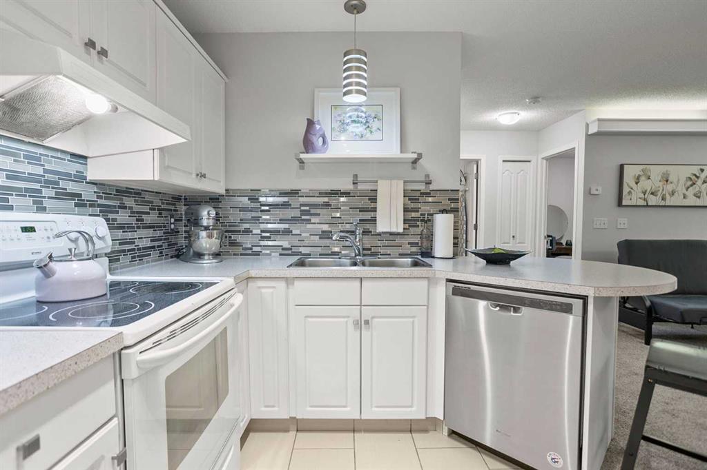 This inviting 2-bedroom, 2-bathroom main floor condo offers the perfect blend of comfort, functionality, and style. The thoughtful layout provides ideal separation between bedrooms, making it an excellent setup for roommates or guests. The spacious primary suite includes a walk-in closet and private ensuite, while the second bedroom is just steps from a full 3-piece bath. The bright white kitchen features a breakfast bar and plenty of storage, opening to a cozy living area with a corner gas fireplace that creates a warm and welcoming atmosphere. Step outside to your partially covered patio, which offers exceptional privacy, and an additional storage area. You’ll appreciate the convenience of in-suite laundry, a BBQ gas line, and a titled underground parking stall with visitor parking close by. Safety and ease are at the heart of this home, with a secure building, clean common areas, and quick access to the elevator. Beyond your door, you’ll find everything you need for an active and connected lifestyle. Great schools, parks, sports fields, and pathways surround the area. You are within walking distance to Westhills and Signal Hill shopping and dining, and just moments from transit routes, the library, and major roadways for easy commuting. This is condo living at its best, offering comfort, connection, and peace of mind in one beautiful package.