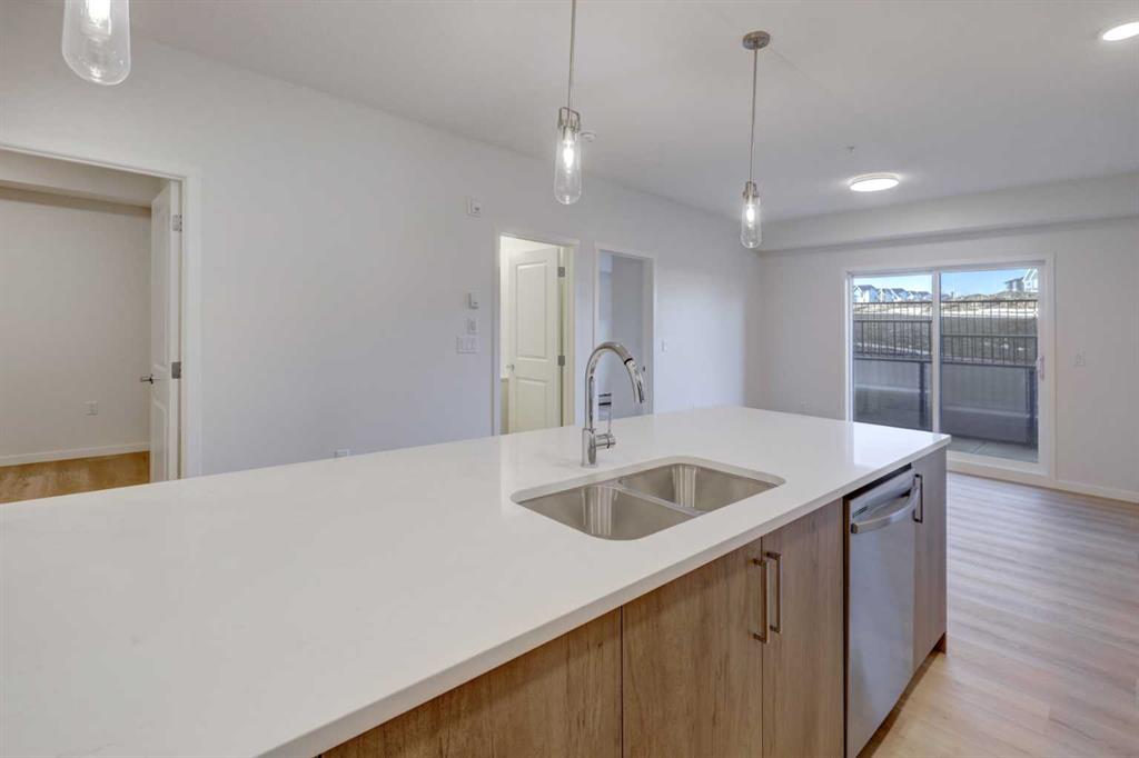 INTRODUCING GLACIER RIDGE, IN BEAUTIFUL NORTHWEST CALGARY. BUILT BY CEDARGLEN LIVING, WINNER OF THE Customer Insight BUILDER OF CHOICE AWARD, 6 YEARS RUNNING! BRAND NEW “GR17” unit with high-spec features. You will feel right at home in this well thought-out, 732.50 RMS sq.ft. 2 bed, 2 bath home with open plan, 9′ ceilings, LVP flooring throughout (NO CARPET), Low E triple glazed windows, BBQ gas line on the patio, Fresh Air System (ERV), A/C rough-in and so much more. The kitchen is spectacular with full height, two tone cabinets, quartz counters, upgraded bank of drawers for pots and pans, undermount sink, rough-in water line to the fridge and S/S appliances. The island is extensive with built in flush breakfast bar, which transitions into the spacious living area, perfect for entertaining. The primary bedroom has a large bright window (triple pane windows), 4pc upgraded ensuite and a large double door closet. The second bedroom is located close by and the second 4pc bath with quartz counters, upgraded tiles to the ceiling, and undermount sink is just around the corner. Nearby is the spacious laundry/storage room, this is a must see (washer & dryer included). Highlights include: Hardie board siding, designer lighting package, sound reducing membrane to reduce sound transmission between floors, clear glass railing to patio and 1 titled underground parking stall included. A once in a lifetime community in Northwest Calgary. Framed by views of the Rocky Mountains and distinguished by natural coulees that cross the land, Glacier Ridge offers a rare chance for families to live in a new community. PET FRIENDLY COMPLEX, IMMEDIATE POSSESSION AVAILABLE AND DON’T FORGET TO CHECK OUT THE VIRTUAL TOUR.