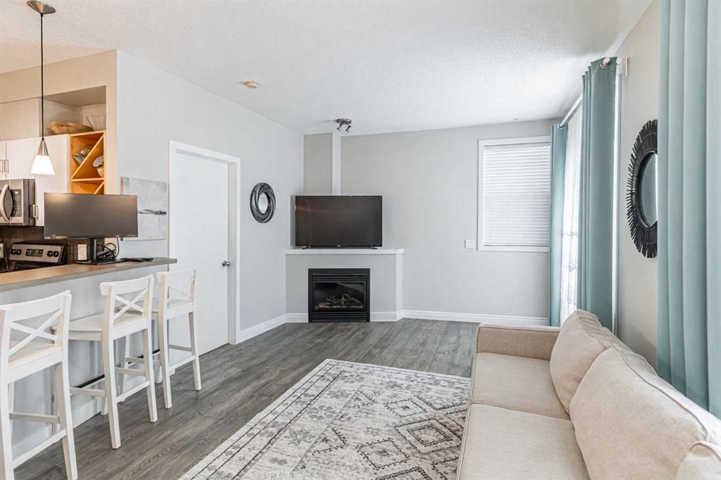 With the Altadore river park and Marda Loop just minutes away, this 2 bedroom unit with 9′ ceilings in Kabo is a stylish condo in the perfect location! This property has stainless steel appliances in the kitchen, plenty of cabinets and a breakfast bar with an open concept to the living room that is ideal for entertaining. The living room has a corner gas fireplace and brand new hardwood floors that extend into the two bedrooms. The master bedroom is a nice size and has a walk-in closet that connects to a 4 piece bathroom. The second bedroom is also a good size and can alternatively be used as a home office or fitness room. This property also has insuite laundry and plenty of windows that bring in an abundance of natural light to the unit. There is a patio just off the living room that is perfect for summer relaxation and BBQs. This condo has an underground secured parking stall as well as a secured storage locker. Call to view today!