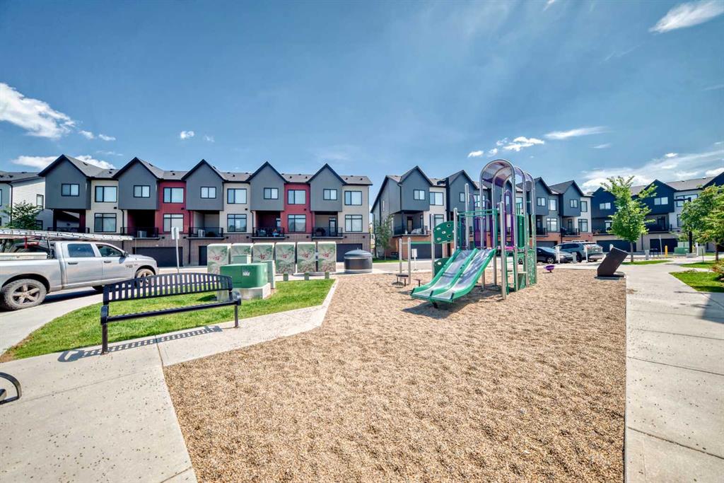 Welcome home to this bright and stylish end unit townhome in the heart of Sage Hill. With low condo fees, a playground just steps from your door. This home offers both comfort and convenience. As an end unit, you will enjoy additional side windows that fill the space with natural light, making it an absolute dream for plant lovers. Offering 1,269 square feet, this 3-bedroom, 2.5-bathroom home showcases a clean Scandinavian aesthetic with contemporary colours, quartz countertops throughout, and stainless steel Whirlpool appliances in a modern kitchen. The kitchen features full-height cabinetry, a spacious island, and a striking 4′ x 16′ subway tile backsplash. The open concept design flows easily to a sunny, partially fenced back patio that is perfect for relaxing or entertaining. Upstairs, the vaulted primary suite boasts beautiful windows, a large closet, and a private ensuite. Two additional bedrooms, a full main bathroom, and convenient second floor laundry complete the upper level. Built with quality and efficiency in mind, this Certified Built Green home includes a Quietwall system to minimize sound transfer, oversized triple-glazed low-E windows, a 96% high efficiency furnace, and tankless hot water. The basement is undeveloped with 571 square feet and two large windows, providing great potential for future development. A new Calgary Transit terminal with a park-and-ride facility is planned for Sage Hill as part of the Symons Valley Centre development. This convenient location will provide quick access to some of NW Calgary’s most popular amenities, including Creekside, as well as nearby retail, shops, and services within the community. If you are looking for a bright, modern, and low maintenance home in a fantastic location, this one is ready to welcome you.
