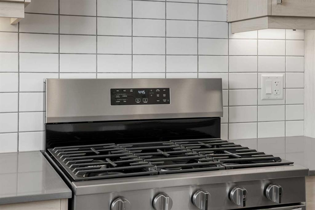 The main level features a bright open-concept floor plan enhanced by high ceilings and large windows that bring in plenty of natural light. At the heart of the home is a spacious kitchen showcasing quartz countertops, a large central island with breakfast bar seating, gas stove, and ample cabinetry, making it perfect for both everyday cooking and entertaining. The dining area flows seamlessly into the living room, creating a welcoming space for gatherings and family time. A standout feature of the main floor is the bedroom and full three-piece bathroom, ideal for guests, extended family, or a private home office.