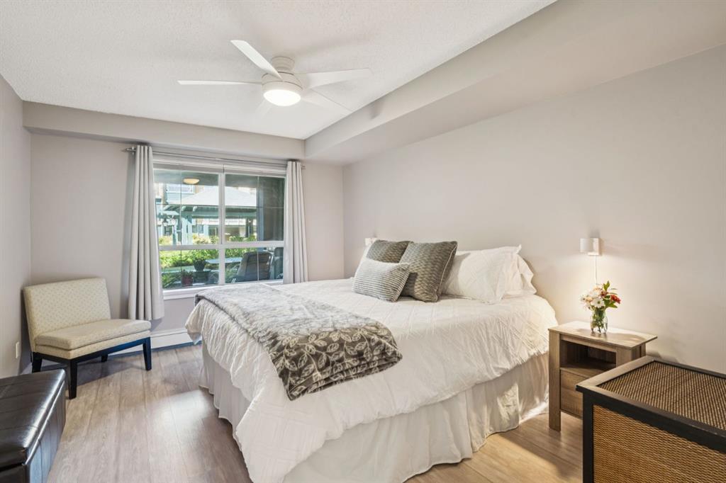 Retreat to the primary suite, which boasts a walk-in closet, a luxurious 4-piece ensuite, and added conveniences including a new ceiling fan and blackout blinds for a restful night’s sleep. The second bedroom is equally accommodating, featuring walk-through his-and-hers closets and a 3-piece bath—ideal for guests, a family member, or a dedicated home office.