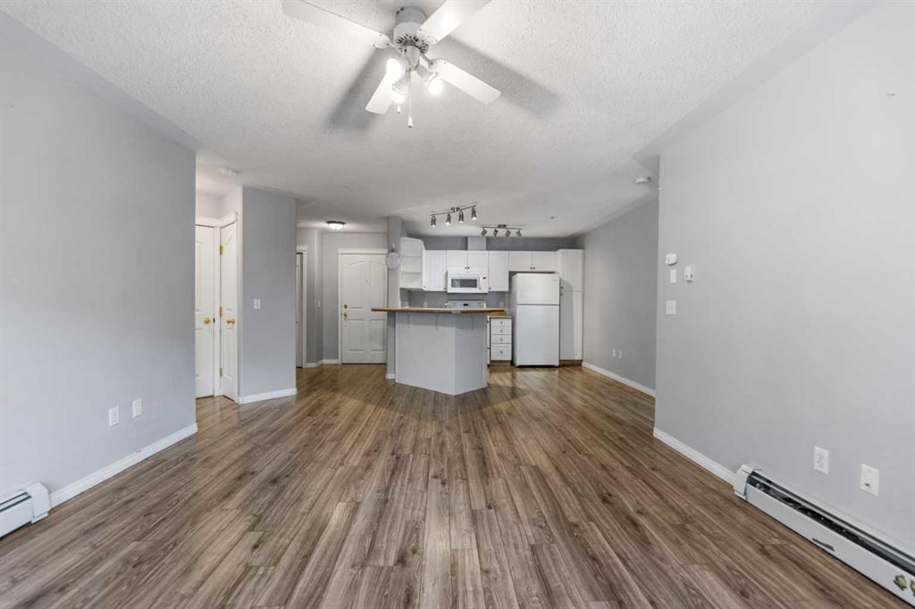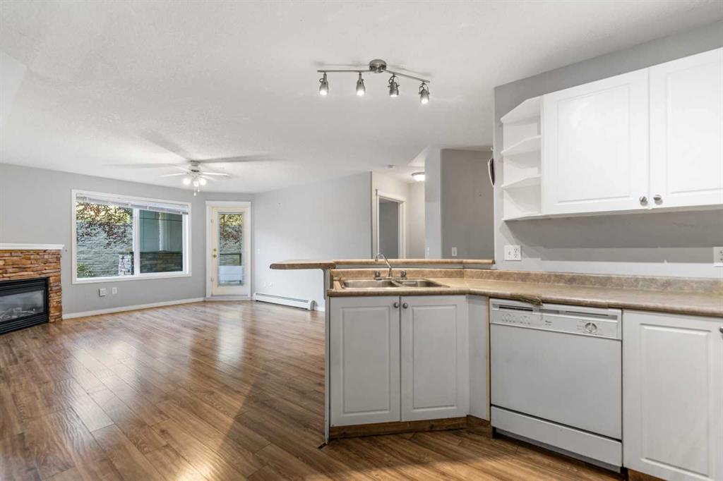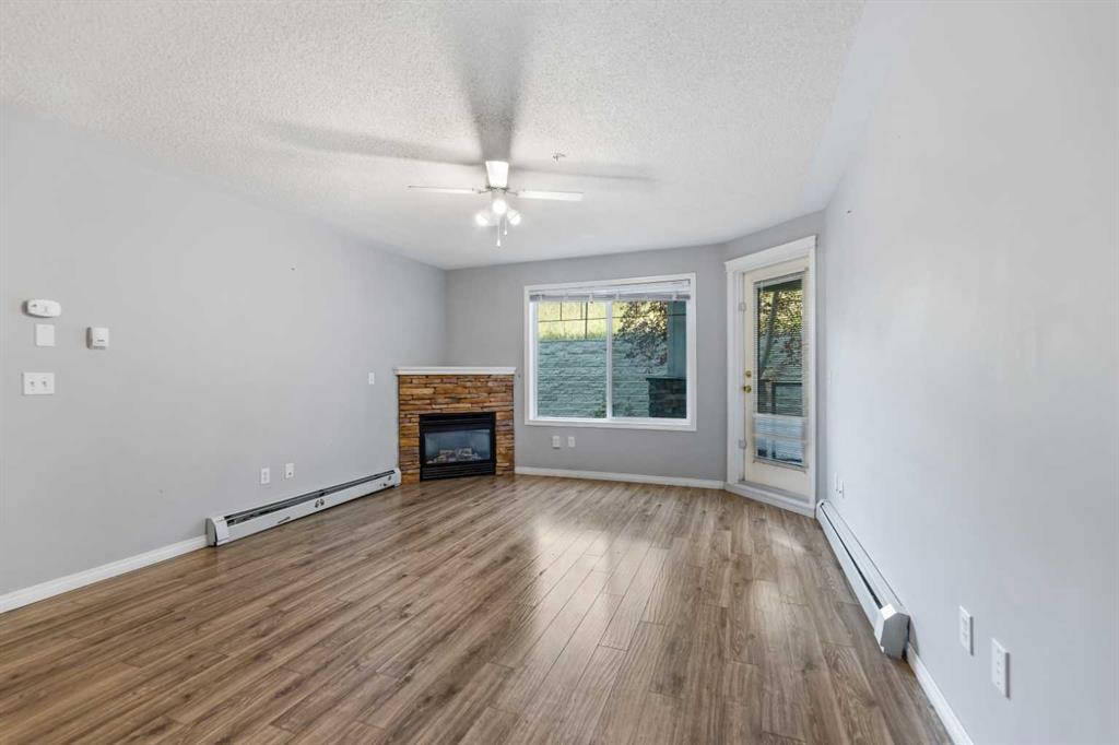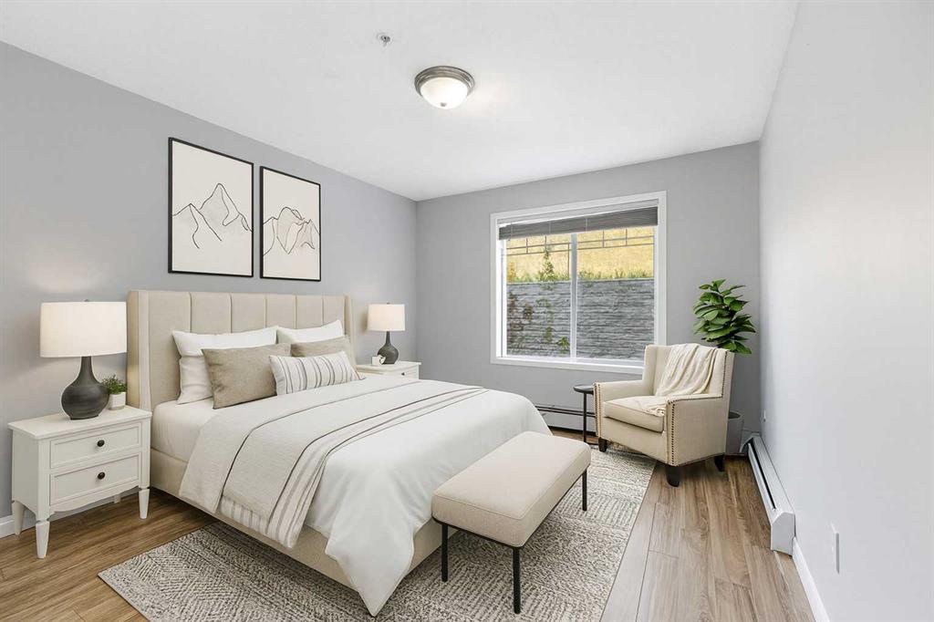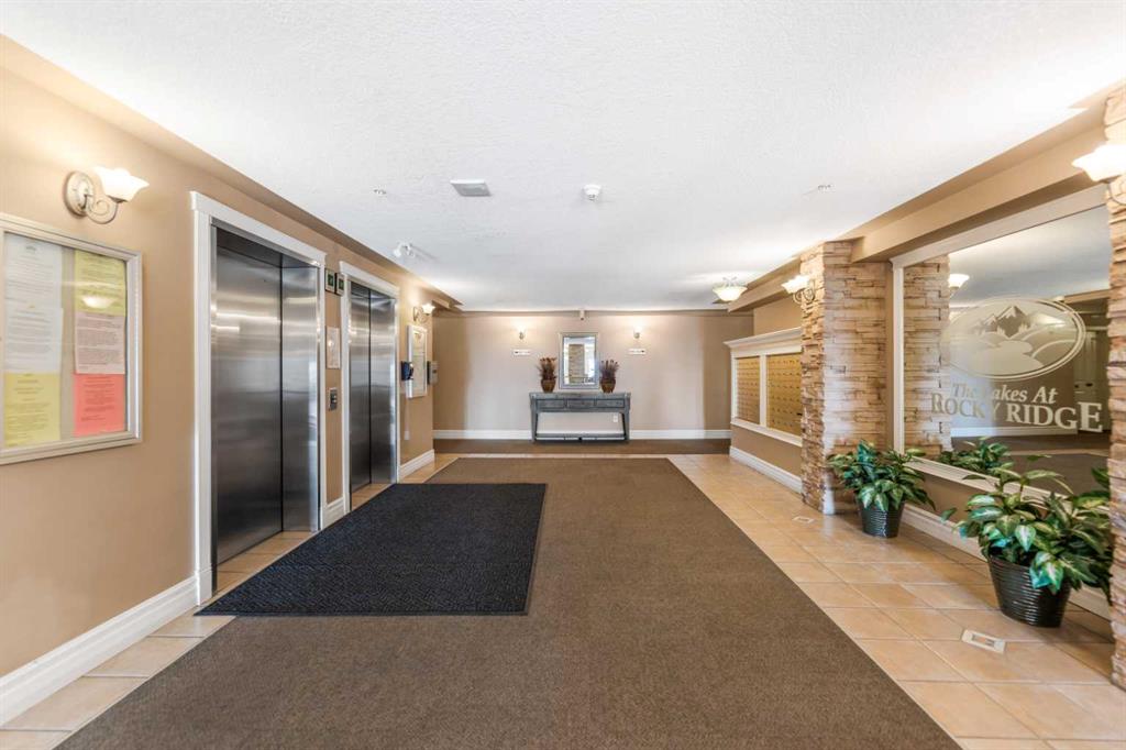Welcome to this spacious 2 bedroom, 2 bathroom ground floor condo offering both comfort and convenience. The thoughtful layout features bedrooms on opposite sides for added privacy, including a primary suite with an ensuite bathroom featuring a large walk-in closet and stand-up shower. The kitchen boasts plenty of cabinetry, generous counter space, and a breakfast bar, opening into the bright living room with a cozy corner gas fireplace. From here, step onto your large private balcony with additional storage—perfect for relaxing or entertaining. Additional perks include in-suite laundry, heated underground titled parking stall and a pet-friendly policy (with board approval). The well-managed building offers incredible lifestyle amenities with secure underground access to a fitness center, games room, theatre, library, large social room, and ample visitor parking. Beyond the building, enjoy walking trails to ponds, treed parks, and breathtaking mountain views. Residents also have access to the Lake Club at Rocky Ridge featuring a pond with kayaks, outdoor tennis courts, and beach volleyball. The location is second to none—just steps from transit (including the Tuscany/Rocky Ridge C-train station), the new YMCA, basketball and tennis courts, shopping, and eateries. Quick access to Crowchild Trail, Stoney Trail, and the mountains makes commuting a breeze. Plus, a brand new $25 million Athletic Park has been approved by the City of Calgary, with completion slated for Fall 2026!