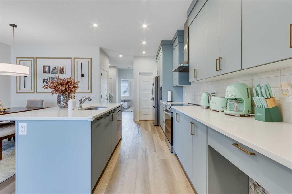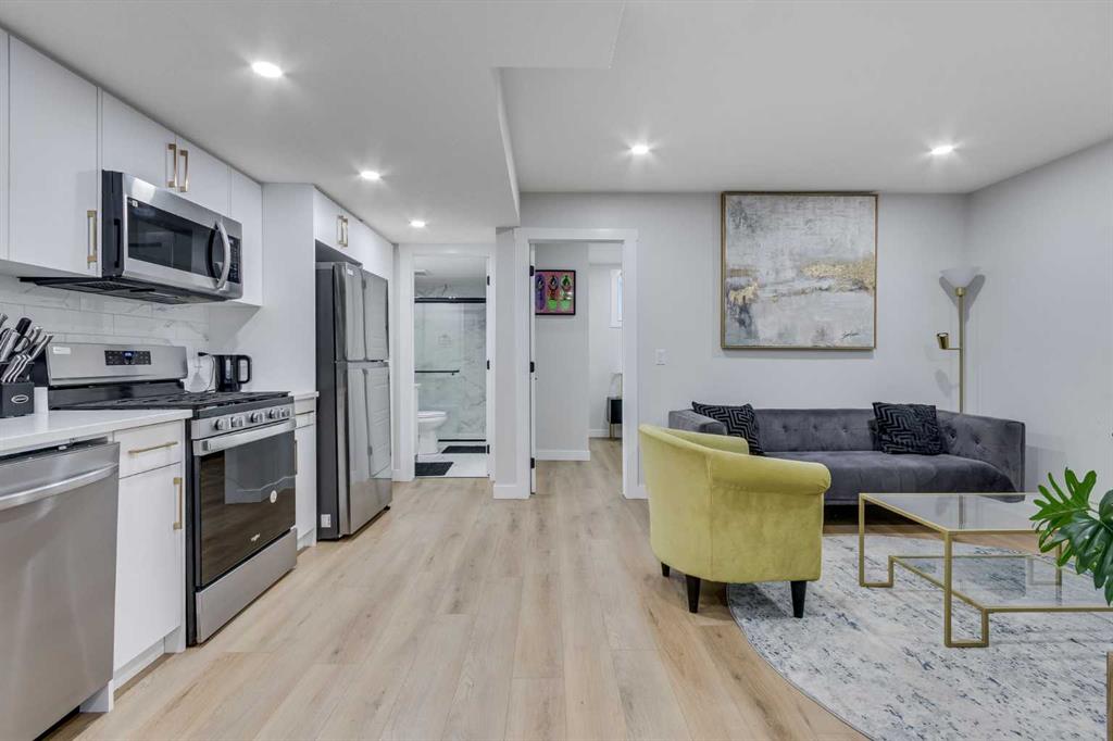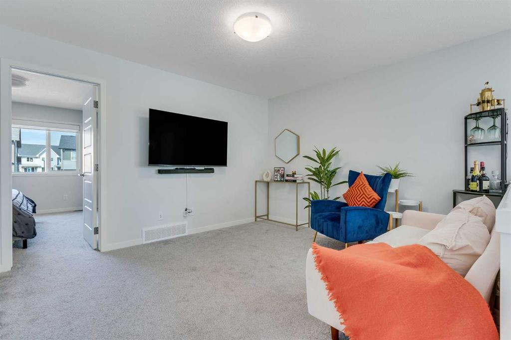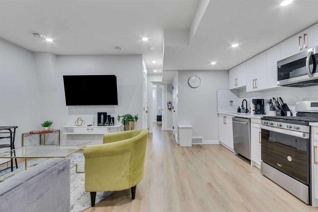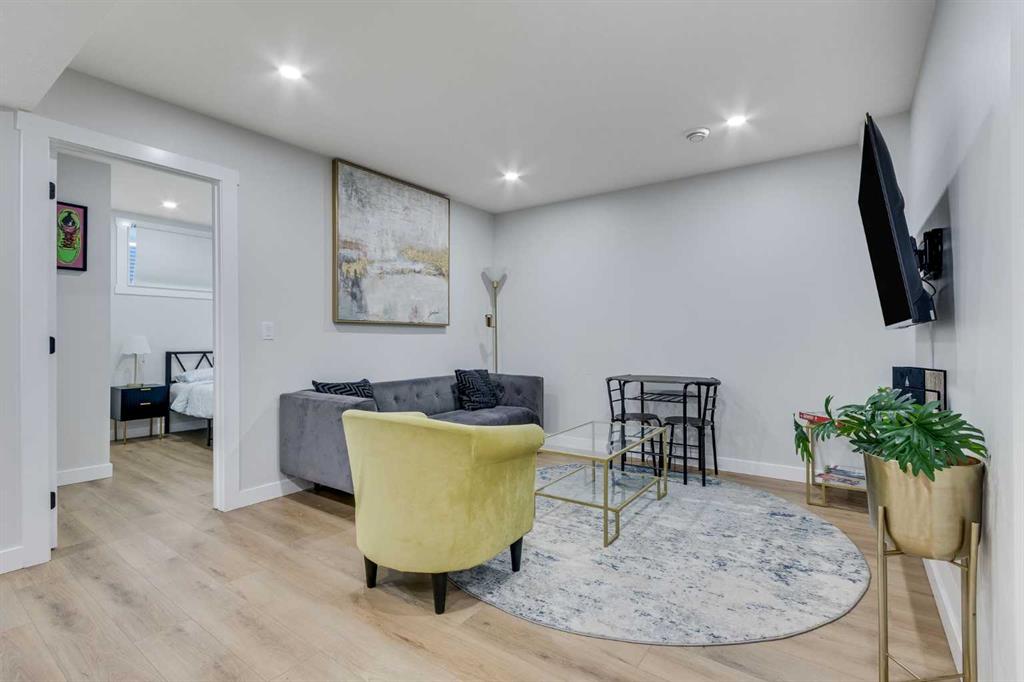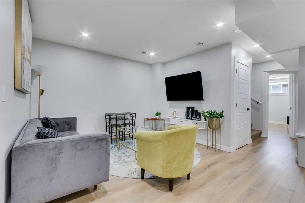 Built by Cedarglen Homes , this stunning detached home offers 1,843 sq. ft. above grade plus a fully finished 810 sq. ft. legal basement suite with separate entrance, providing a total of nearly 2,700 sq. ft. of living space. Perfect for families or investors, this property sits on a total of 2,950 sq. ft. landscaped lot. Step inside and be greeted by a bright, open-concept main floor featuring – A dedicated office space perfect for working from home, convenient mudroom and two closets for easy storage, Spacious living and dining areas designed for family gatherings, a chef-inspired kitchen with full-height textured melamine cabinetry, quartz countertops, large island, walk-in pantry, and premium stainless steel appliances ( Samsung French-door fridge, electric range, wall-mounted hood fan, and microwave). Upstairs, you’ll find a cozy family room, two generous secondary bedrooms, a full bathroom, laundry room, and a luxurious primary suite with a 4-piece ensuite featuring double vanity and a walk-in closet. The fully finished legal basement suite is a standout feature — perfect for multi-generational living or rental income. With its own mechanical system, full kitchen with pantry, living/dining area, two large bedrooms, full bathroom, and in-suite laundry, this suite has been a proven income generator, earning $1,800–$2,400/month on Airbnb and VRBO in the spring and summer months (even higher during Calgary Stampede month!). Additional highlights of the property includes – Central Air-Conditioning for the summer months and heat pump, motorised window blinds, black out shades, curtains for convenience, durable vinyl plank flooring on the main level and basement suite, and cozy carpets upstairs. BONUS: Select furniture and electronics are available for purchase separately from the listing price.