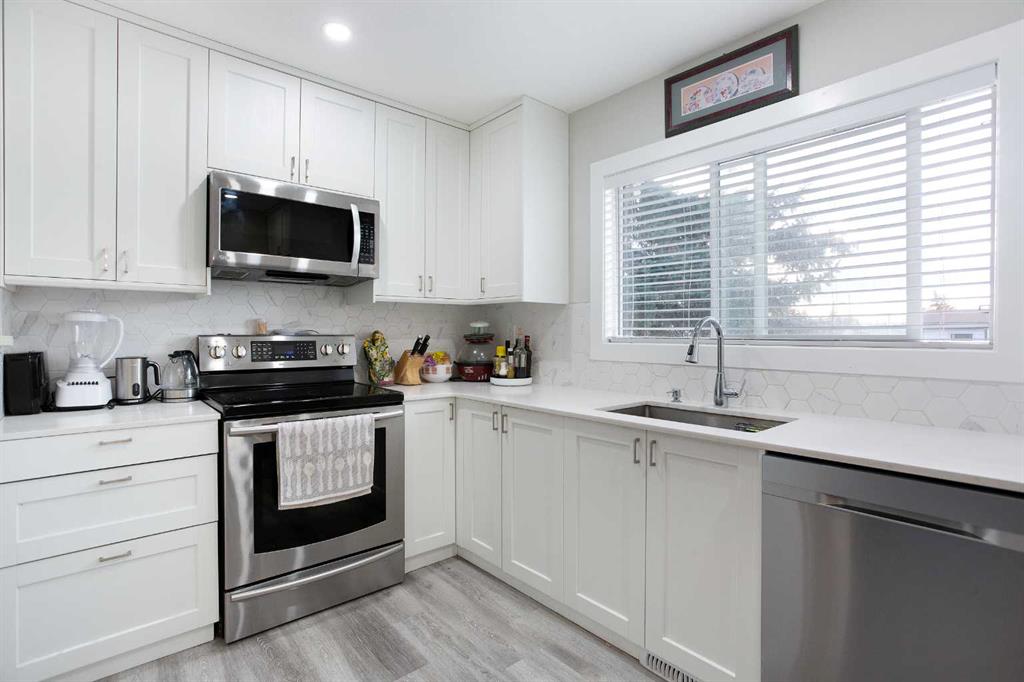 Fully renovated bungalow backing onto Maranda Playground! Meticulously maintained with quality updates throughout including quartz countertops, stainless steel appliances, and a bright open layout. Offers 2 bedrooms and 2 bathrooms including a beautiful ensuite. Unfinished basement with bathroom rough-in and new side entry door— excellent potential for future suite development (subject to approval and permitting by the city/municipality). Fully fenced yard with crushed gravel pad ready for your future garage — steps to parks, schools, shopping & transit.