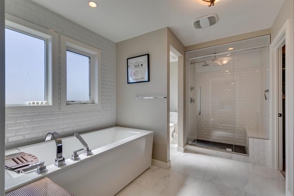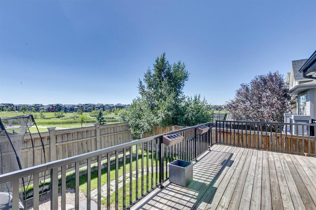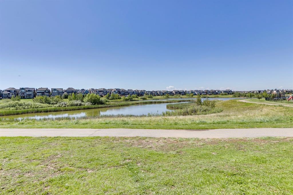 TRANQUIL VIEWS OF THE POND | FULLY DEVELOPED 5 BDRM HOME WITH AN ABUNDANCE OF UPGRADES | NO NEIGHBOURS BEHIND YOU | This gorgeous home is nicely located on a quiet street, featuring a south backyard with no neighbours behind you & has a long list of fabulous upgrades! The main level, bright with an abundance of natural light, welcomes you in to a large foyer with oversized tile flooring & opens to a spacious & inviting floorplan. The gourmet kitchen showcases a ceiling detail bulkhead, full height cabinetry in a rich dark tone that is contrasted with the soft, neutral arabesque custom tile backsplash & elegant granite countertops. The stainless steel appliances include a sleek ceramic cooktop & built-in oven & microwave; there is a central island as well as a peninsula style island making this kitchen not only stunning but also highly functional…plus there is a walk-through pantry! The peninsula island offers an eating bar & overlooks the large dining area that opens to the sunny backyard. Finished with beautiful hand-scraped hardwood flooring throughout the living & dining areas, while the living room features a stylish gas fireplace with raised hearth…this space is warm & inviting, creating a perfect atmosphere for quiet family time or entertaining guests, offering views of green belt & pond! Completing this main level is a private den with sliding pocket doors. Upstairs is sure to please as well…there is a generous sized bonus room with built-in dry bar with beverage fridge; the sliding barn door creates an ideal separation for the “kid’s area” where you will find 3 bedrooms, separated by a 5pc bathroom with dual sinks, as well as a built-in homework station! The Master bedroom, located at the rear of the home, offers fantastic views of the pond & has a lovely spa-like ensuite…freestanding bathtub with a modern full height subway tile feature wall, dual vessel sinks, & custom tiled shower with 10mm glass…plus a walk-in closet with custom built-in organizers! You will enjoy the convenience of the upper laundry room with expansive counter space & lower cabinets! The lower level, professionally finished, is host to a huge open family/rec room, 5th bedroom & full bathroom. This home is also wired with in-ceiling speakers on all 3 levels, central A/C…plus it is pet-free & smoke-free! The south backyard can become your private oasis…fully fenced & landscaped with a full-width skirted deck…and no neighbours behind! Enjoy this amazing home in a desirable 4 season community that offers great access, endless shops, restaurants & services…plus nearby community schools!