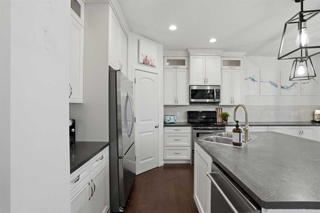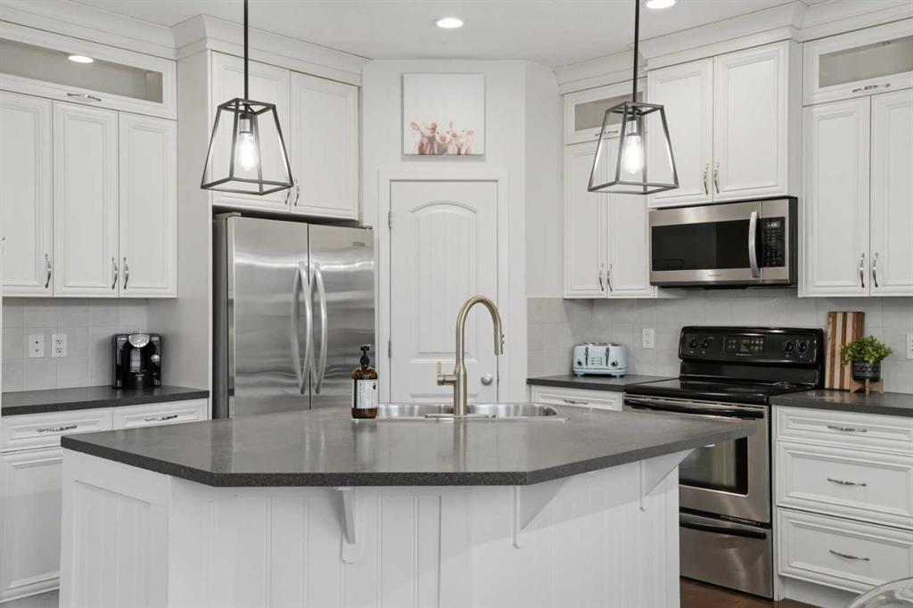 WOW! One-of-a-kind house, one-of-a-kind location! Welcome to this custom-built detached home by Cedarglen Homes, proudly offered for sale for the first time, by its original owner, in the sought-after community of Prestwick, McKenzie Towne! With over 2,800 sq. ft. of fully developed living space, this home boasts 4 bedrooms + den, 2.5 bathrooms, and is ideally situated overlooking the Prestwick ‘Inukshuk’ Park and Playground! Incredible features here include: an upgraded and expanded kitchen (featuring stainless steel appliances, floor-to-ceiling cabinetry, corner pantry, and additional built-in cabinetry that continues across the dining room), a natural gas fireplace, 9-foot high ceilings on the main floor, elegant knockdown ceiling texture, modern light fixtures, and an upstairs laundry room. The spacious northwest-facing backyard is private, fully fenced, and ideal for entertaining or relaxing, complete with a large deck and shed. The property also offers paved back-alley access, providing additional convenience and potential for future garage or parking options. This exceptional home combines generous square footage, an expansive lot, and an unbeatable location facing southeast onto a phenomenal green space/park and playground, making it a rare opportunity! Walking distance to many schools, retail on 130th Ave SE, and local parks, including the popular Prestwick Spray/Splash Park! Don’t miss out, call today!